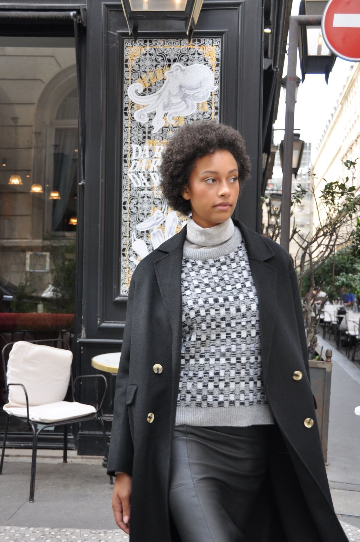 Pièce statement de la collection Automne-Hiver MAX&MOI, le manteau à chevrons MARROT à coupe droite et double boutonnage, auréole l’allure de chic. Versatile et confortable, il se porte avec tout : une tenue élégante pour se rendre au bureau, comme dans un esprit plus casual, avec un legging en cuir et des bottes à plateformes pour déambuler dans les rues de la capitale.