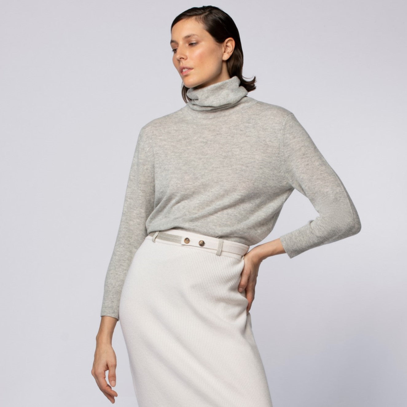 Confectionnée dans une maille côtelée en laine et cachemire, et dotée d'une ceinture mi-maille mi-lurex qui souligne la taille, notre jupe JULIE trouvera sa place dans toutes les garde-robes.