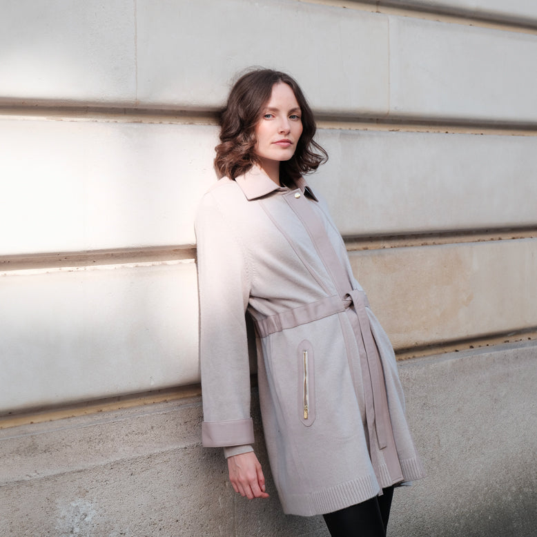 Confectionné dans un doux mélange de laine et de cachemire rehaussé de bandes en cuir contrastées, notre gilet mi-long pour femme VENITA incarne le chic intemporel caractéristique de MAX&MOI. Il souligne le précieux savoir-faire artisanal de la Maison dans la maîtrise des matières nobles comme le cachemire, la soie et le cuir.
