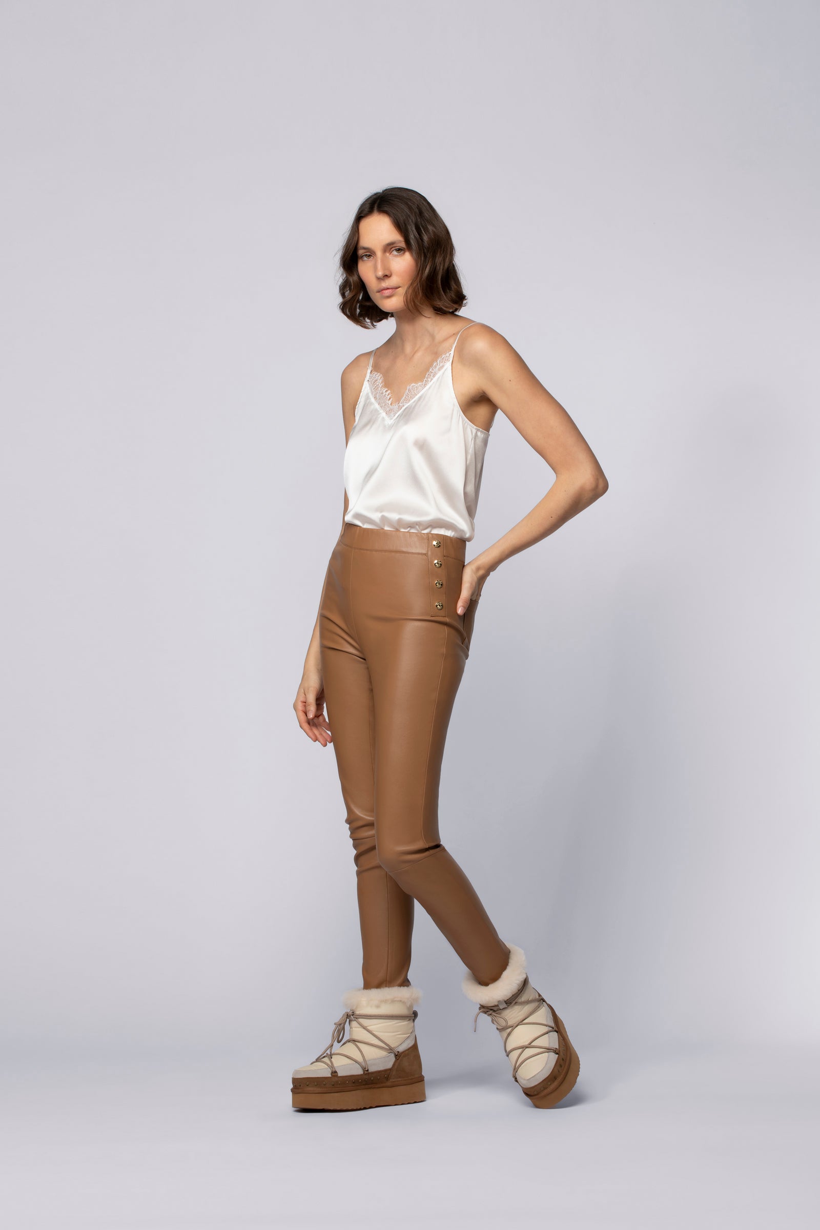 Recognizable for its contemporary aesthetic and relaxed elegance, the BAMBA leather leggings embody all the signature codes of Maison MAX&MOI.