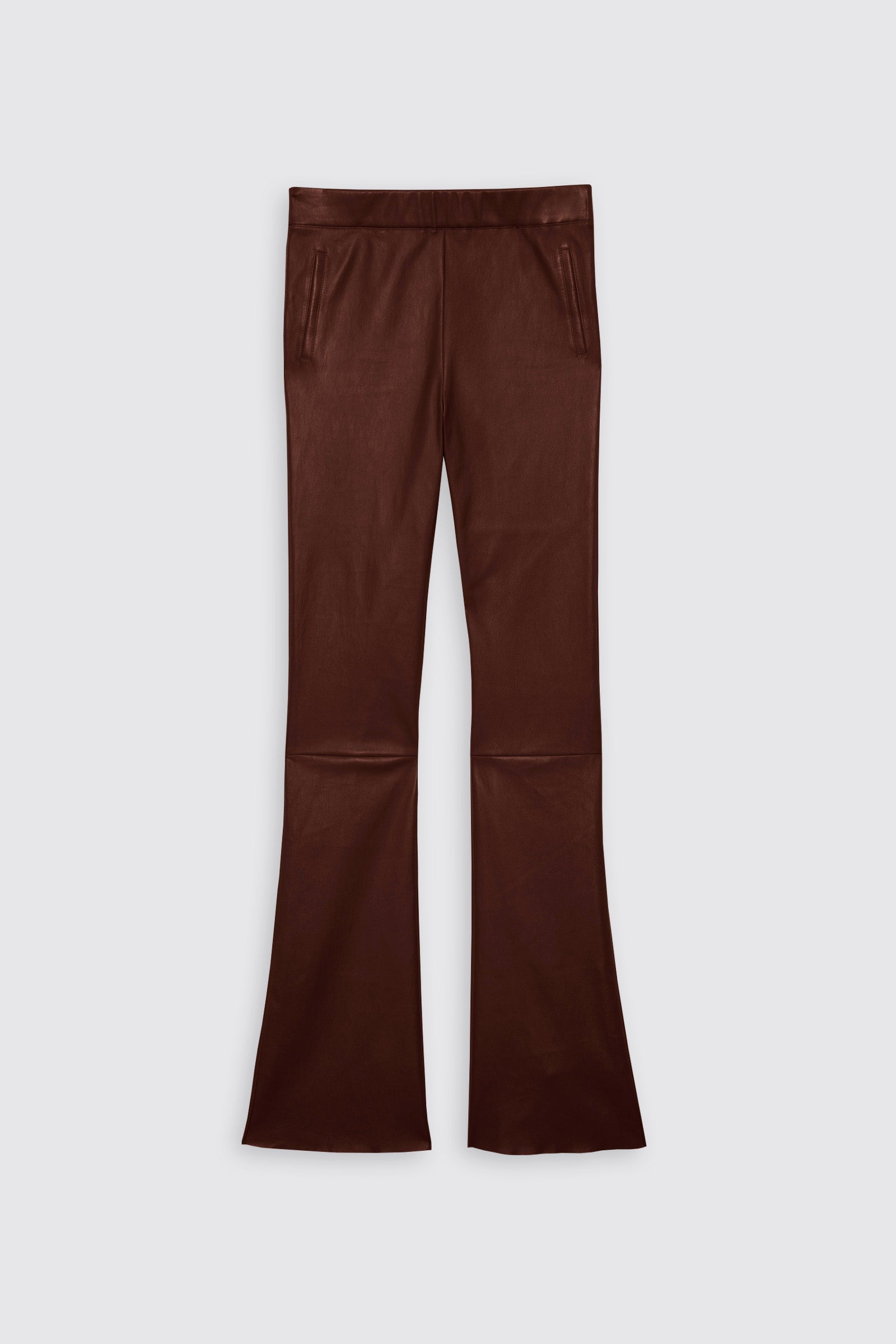 • Or paired with leather trousers, for a modern material mix where the jacket’s leather echoes that of the pants, creating a perfect balance of structure, modernity, and femininity. Opt for tone-on-tone leather pants to fully highlight the character of the jacket