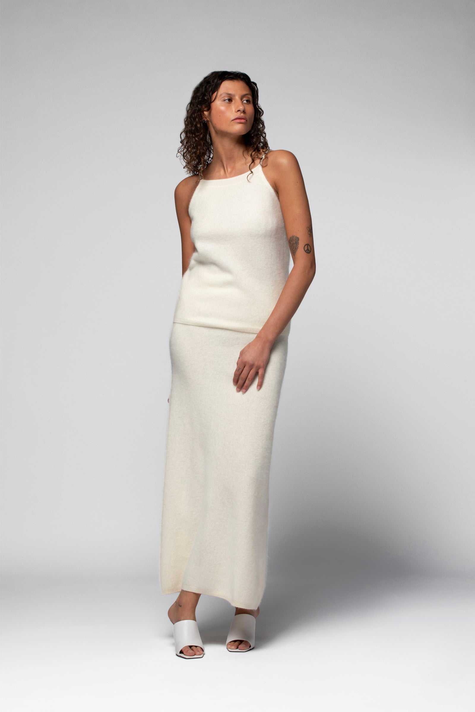 • With a cashmere skirt, for a feminine and structured silhouette, perfect for elegant appointments, office meetings, or winter evenings.