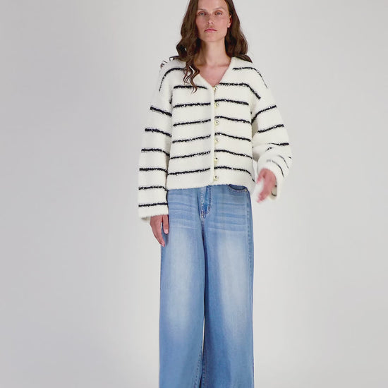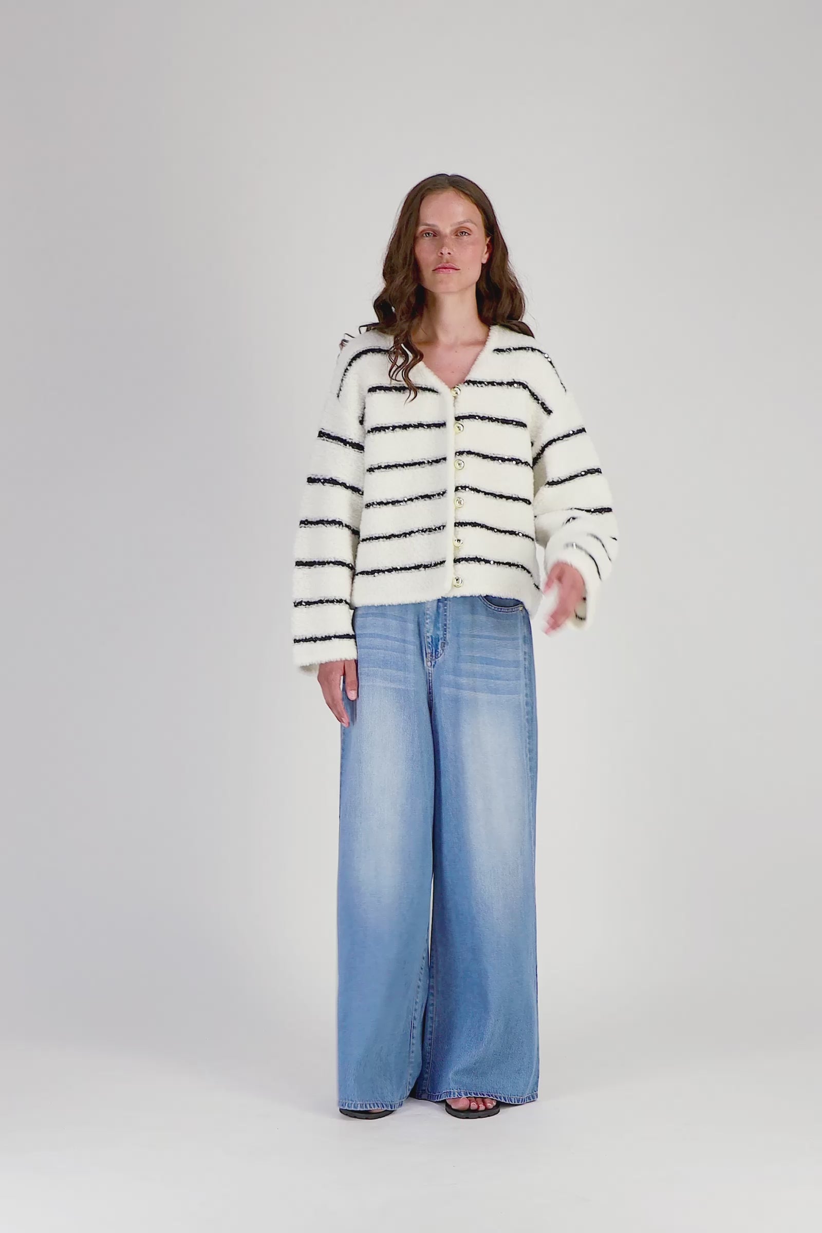 Striped fluffy knit jacket with sequin details