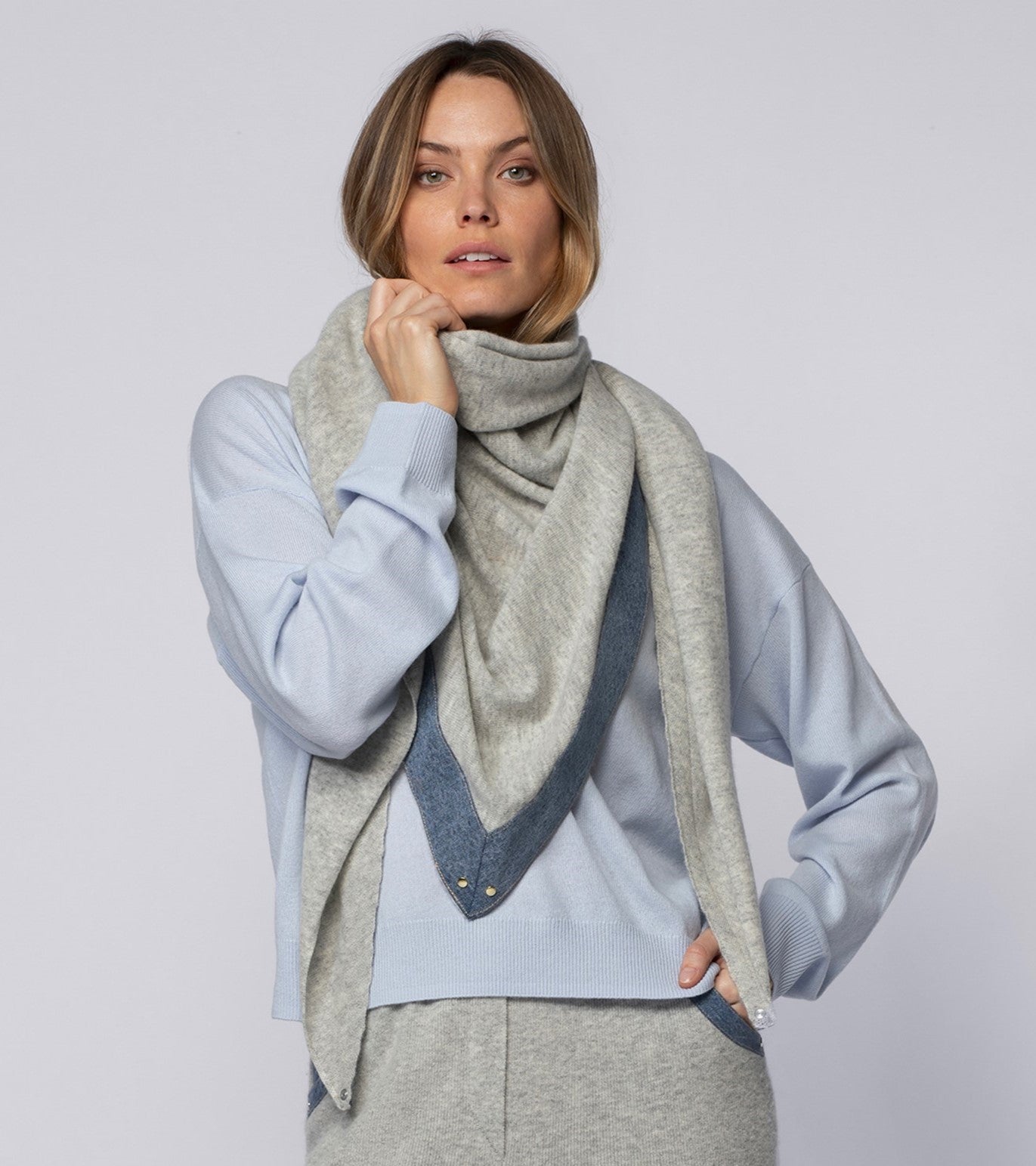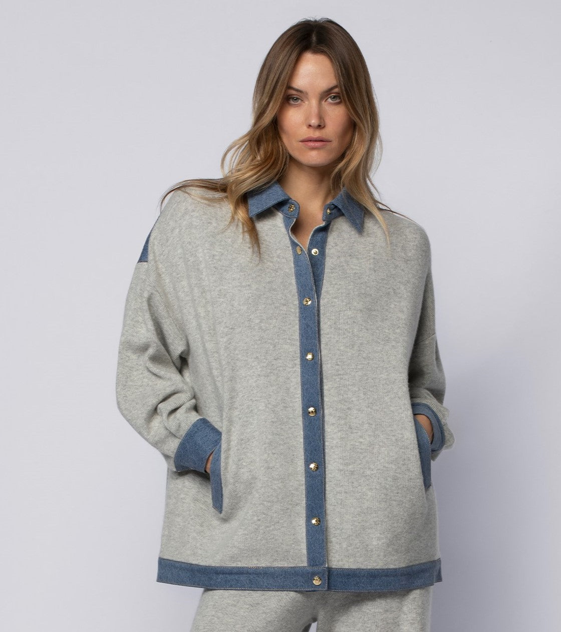 The precision of the topstitching, the details of the pockets, snap buttons, and denim inserts that enhance the cuffs, collar, button placket, and back of our oversized LINA shirt highlight the Maison's exceptional craftsmanship. In a trompe-l'œil effect, the codes of denim overshirts are here transformed into a cashmere version.