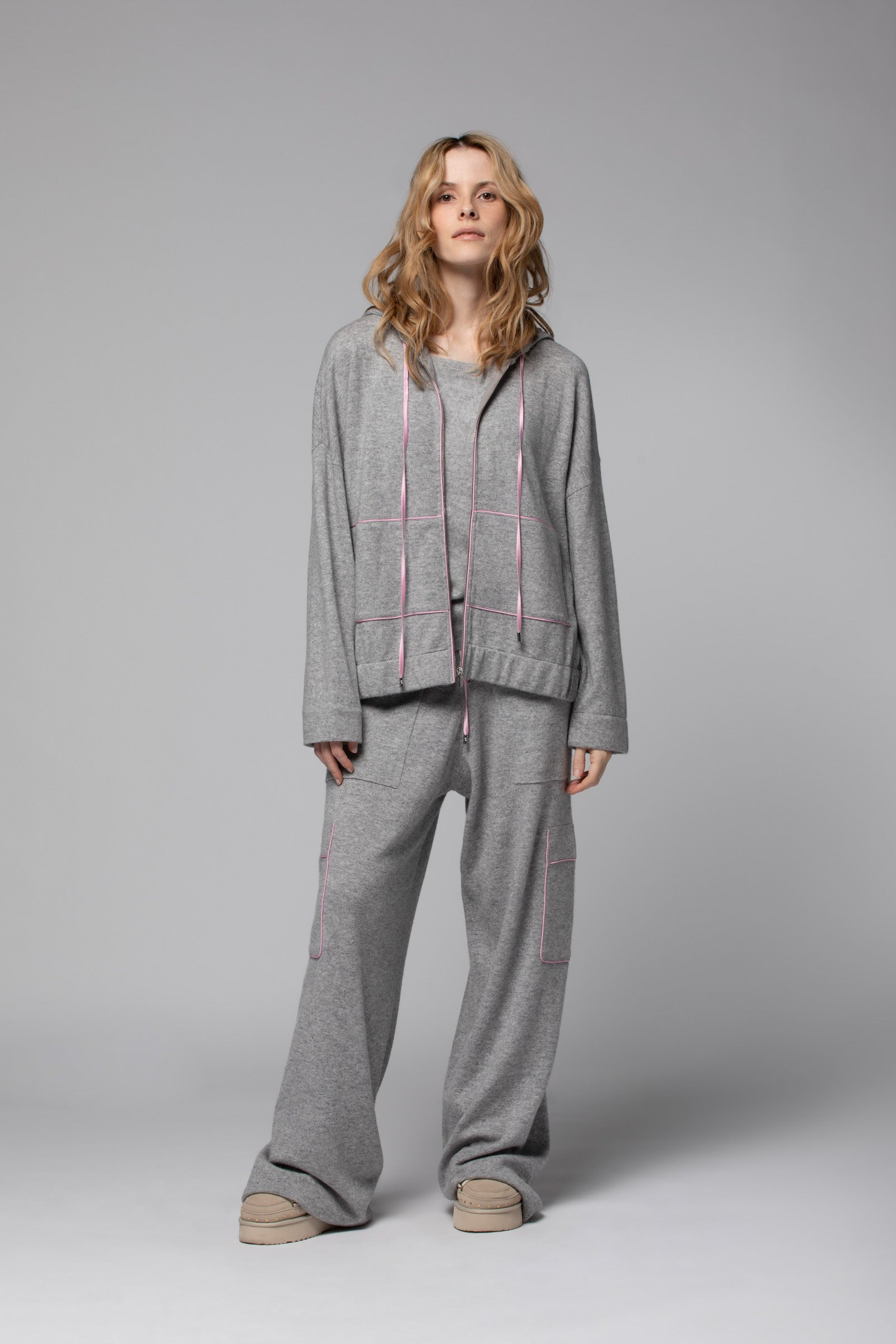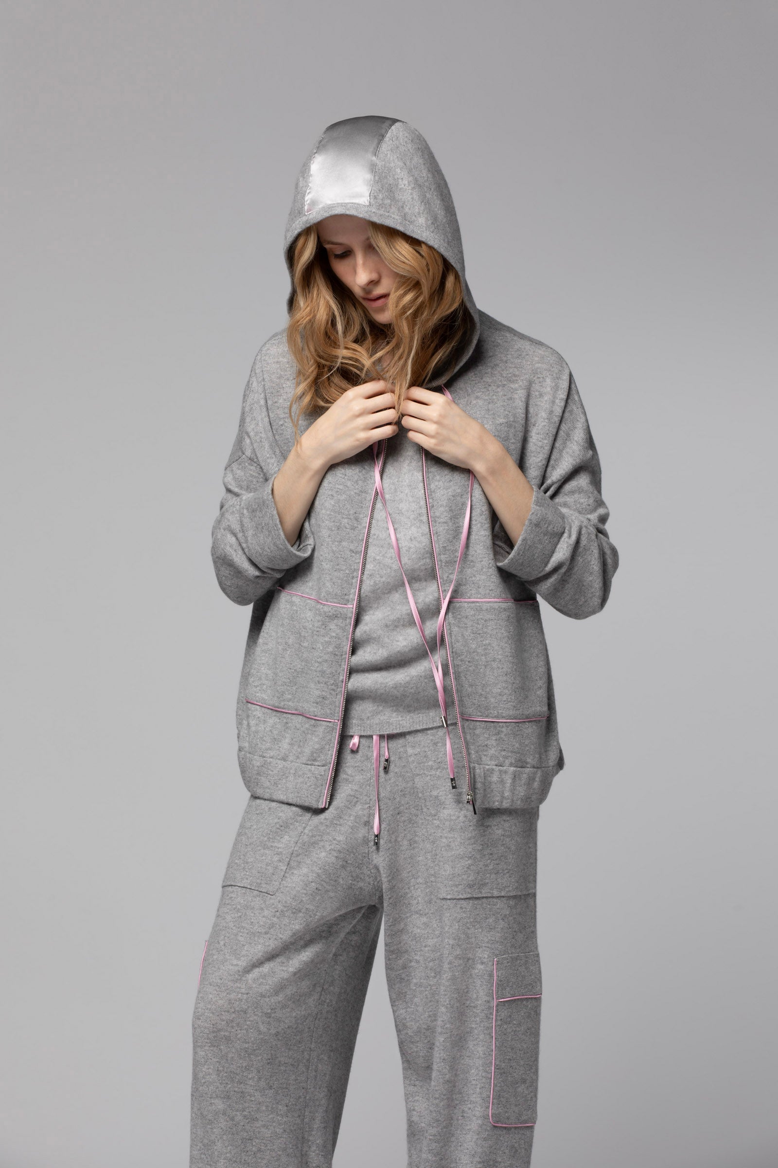 - Hood with drawstring