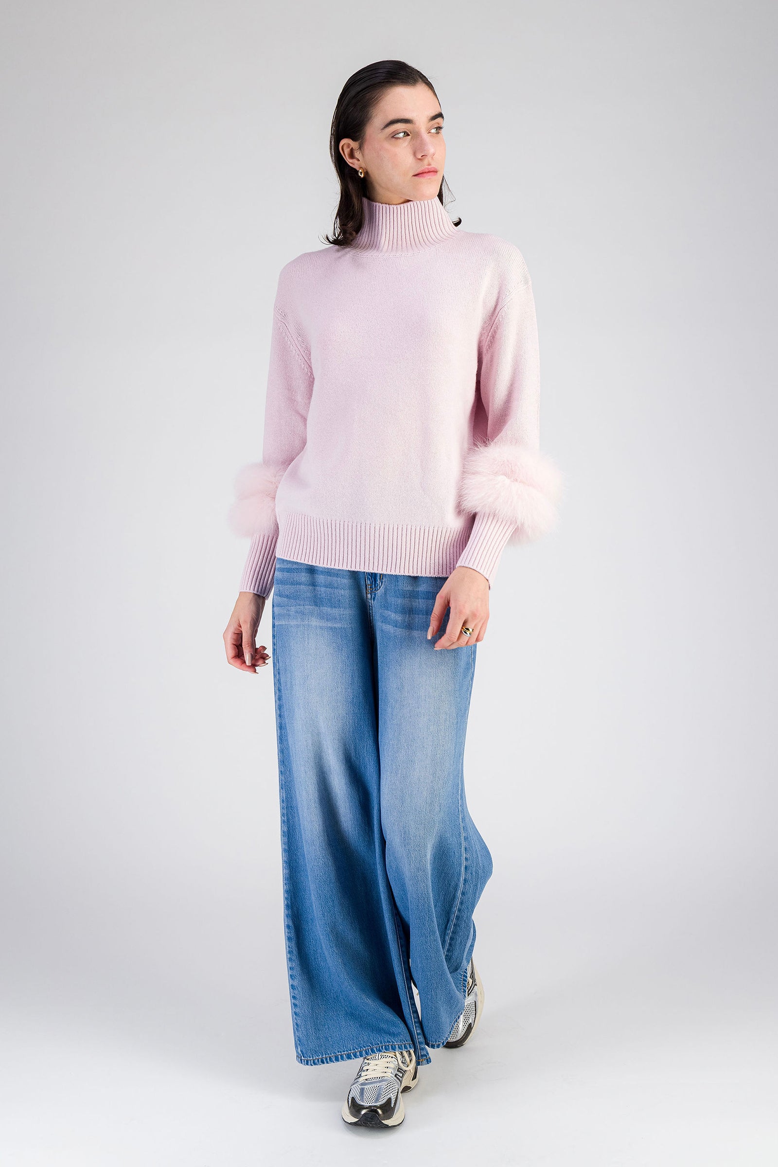 You loved it, and now it’s back. Our GARY cashmere sweater, a creation from "M&M," the second line of Maison MAX&MOI, embodies pure elegance more than ever. This autumn, it is reinvented with a high funnel neck that warms the silhouette with style. Featuring a relaxed fit, ribbed finishes, and long sleeves enhanced with luxurious removable fox fur cuffs, this wardrobe essential delivers an upgraded casual-chic look.