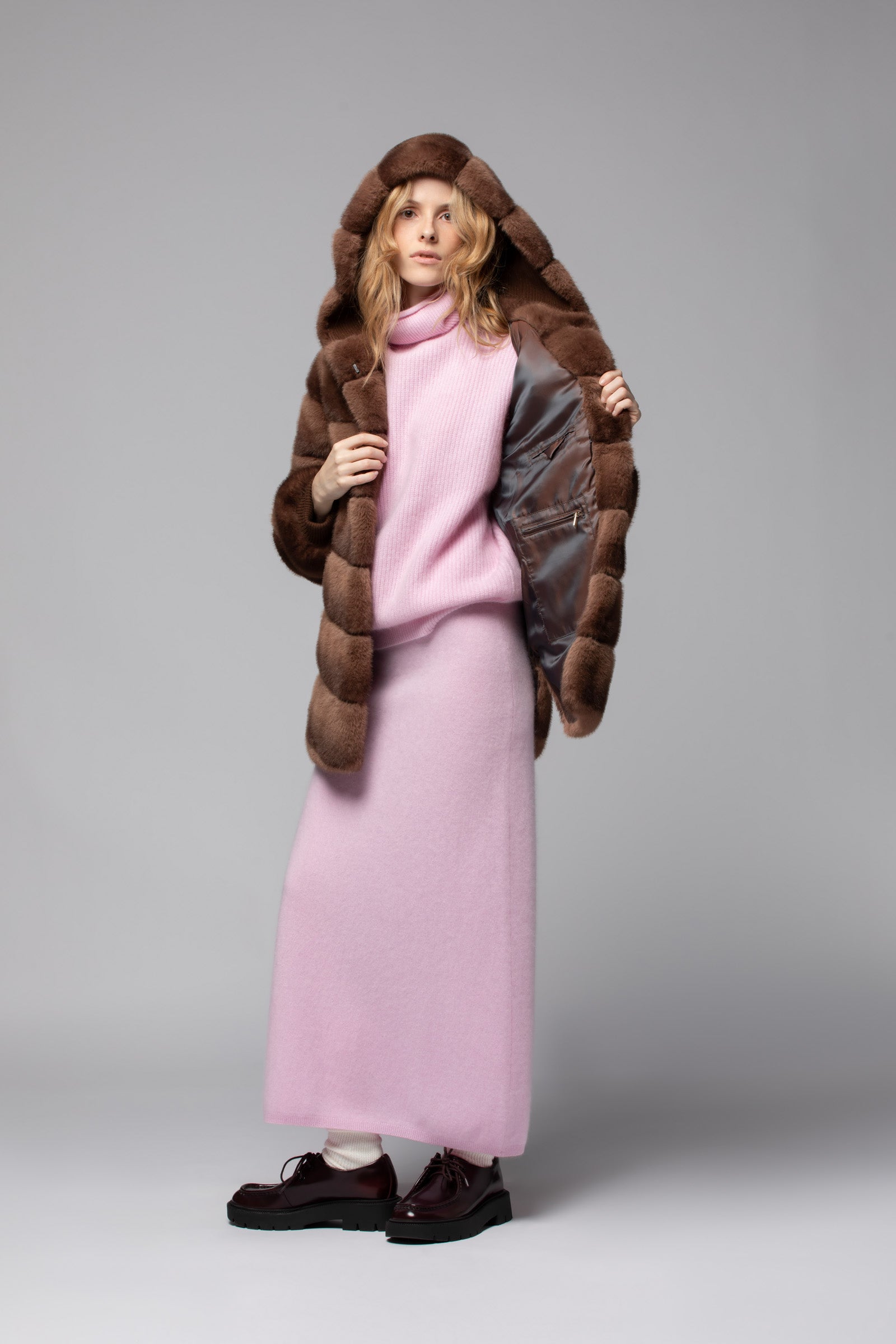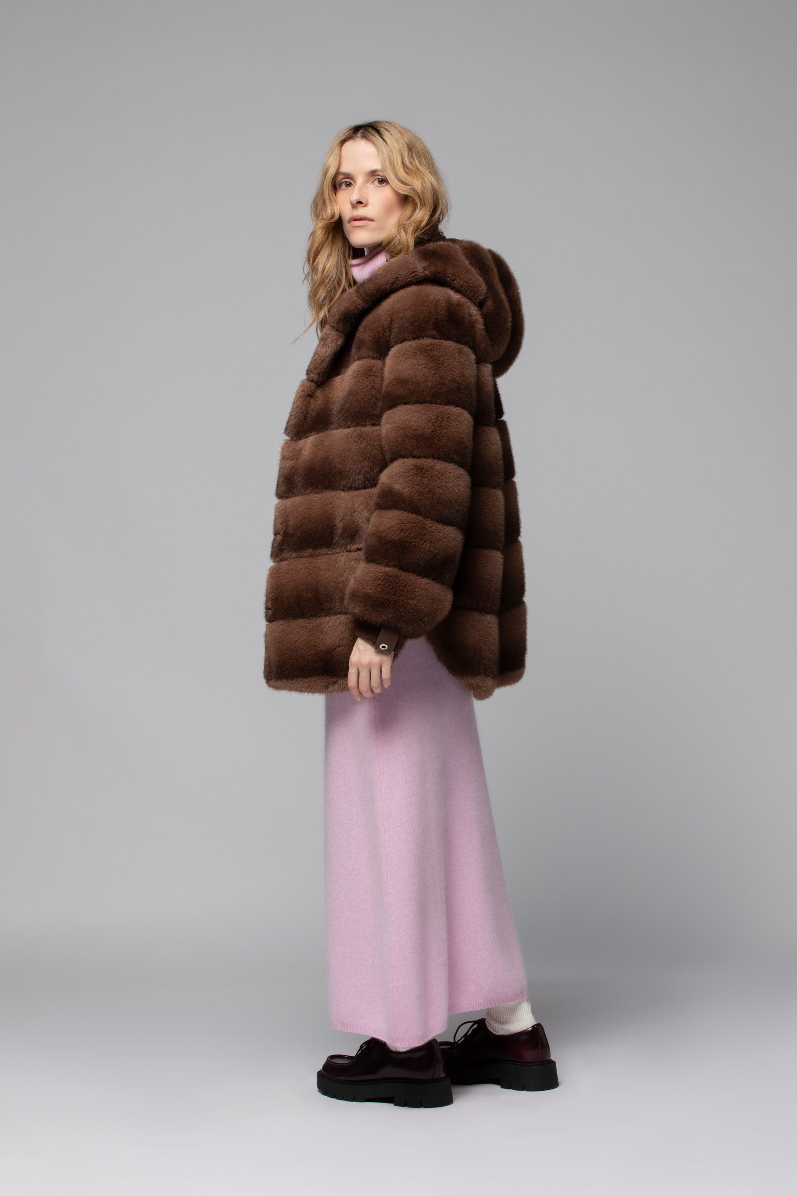 This women’s faux fur coat will easily become a key piece in your wardrobe—it pairs effortlessly with jeans, our iconic lambskin leather leggings, cashmere pants, a long dress, or a knit skirt.