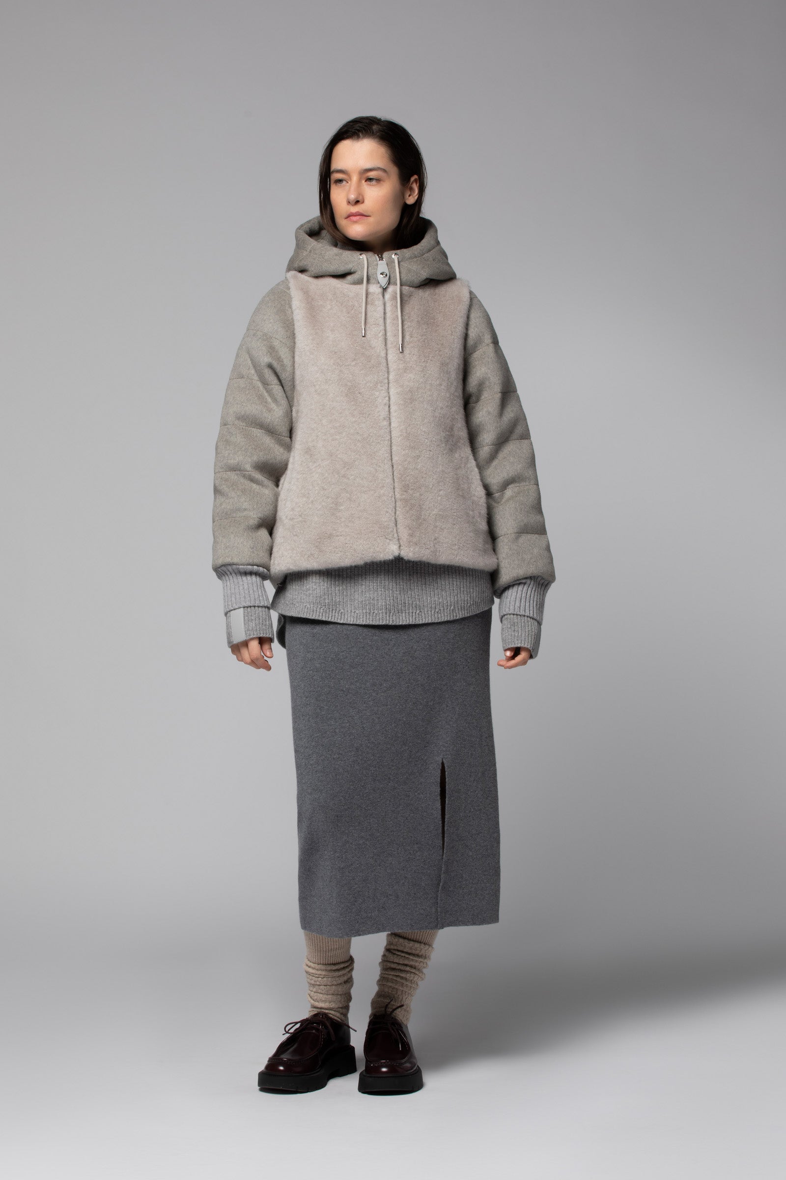 - Faux fur hood with drawstrings