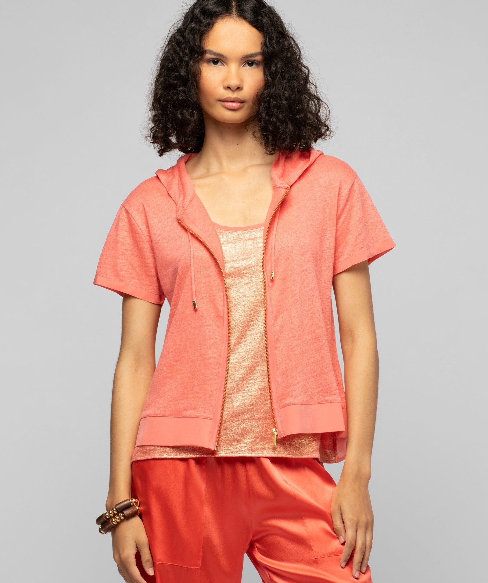 The MAX&MOI women's linen capsule collection reinvents summer wardrobe essentials with style and modernity. Linen shirts, linen T-shirts, sleeveless tops, and cardigans—our linen and linen-silk pieces come in seasonal shades ranging from white and beige to blue, pink, and vibrant coral, available in understated tones or with a subtle iridescent finish.