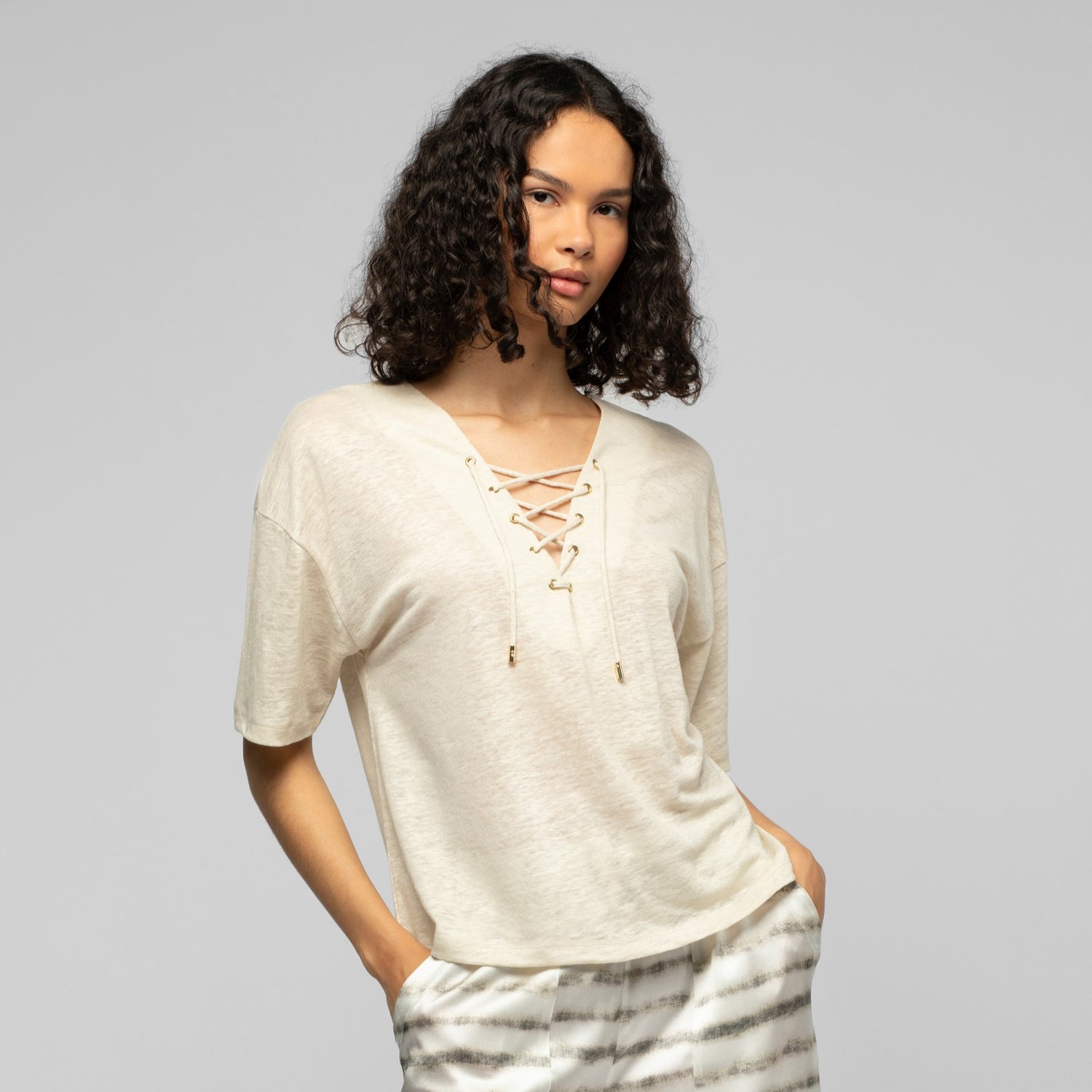 Designed to embody effortless chic, our collection offers a wide variety of cuts and styles. Easy to mix and match, these linen T-shirts and tops transition seamlessly from weekdays at work to relaxed weekend wear. True wardrobe staples for spring and summer, they pair beautifully with everything—from skirts and shorts to fluid silk pants and suede leggings.