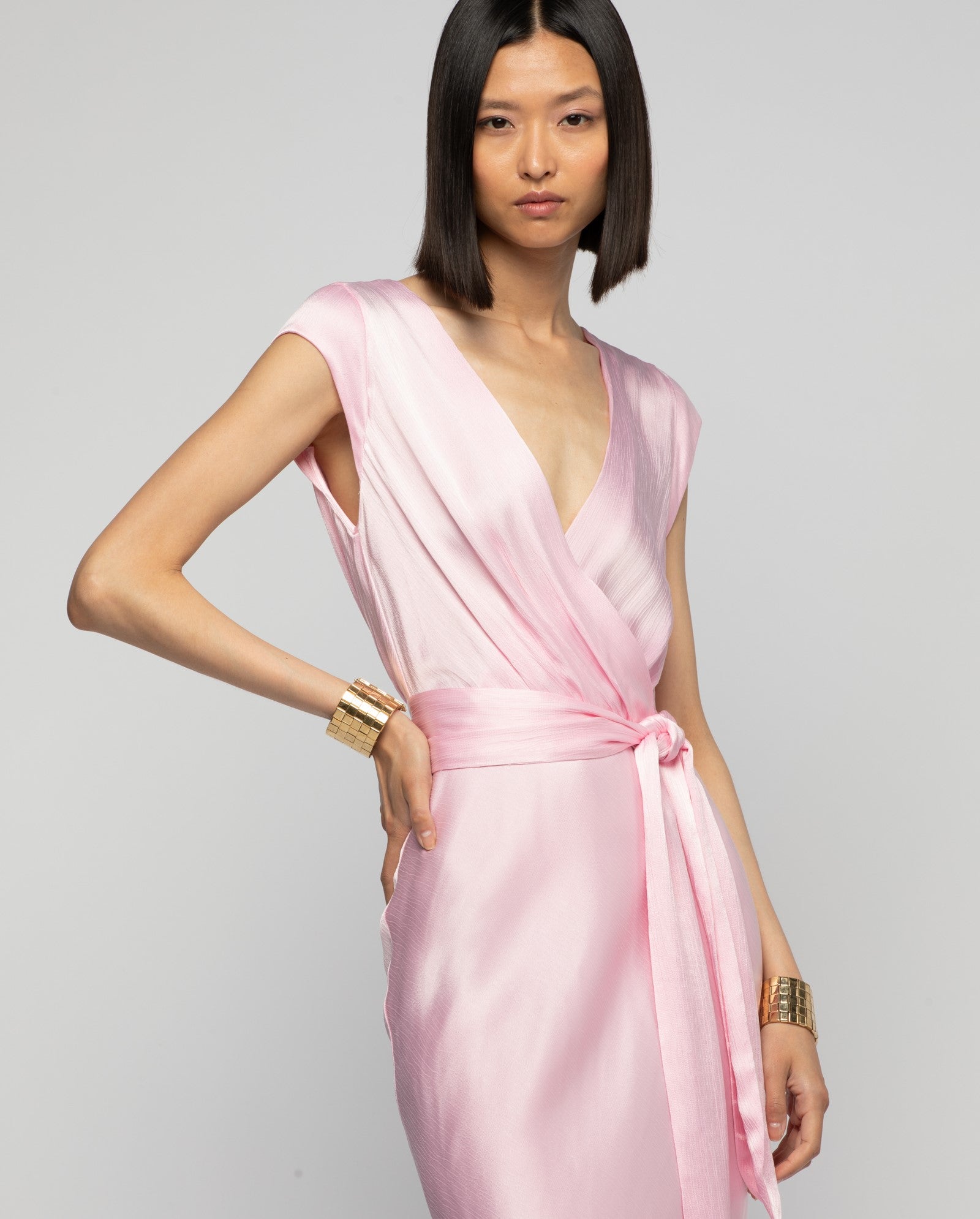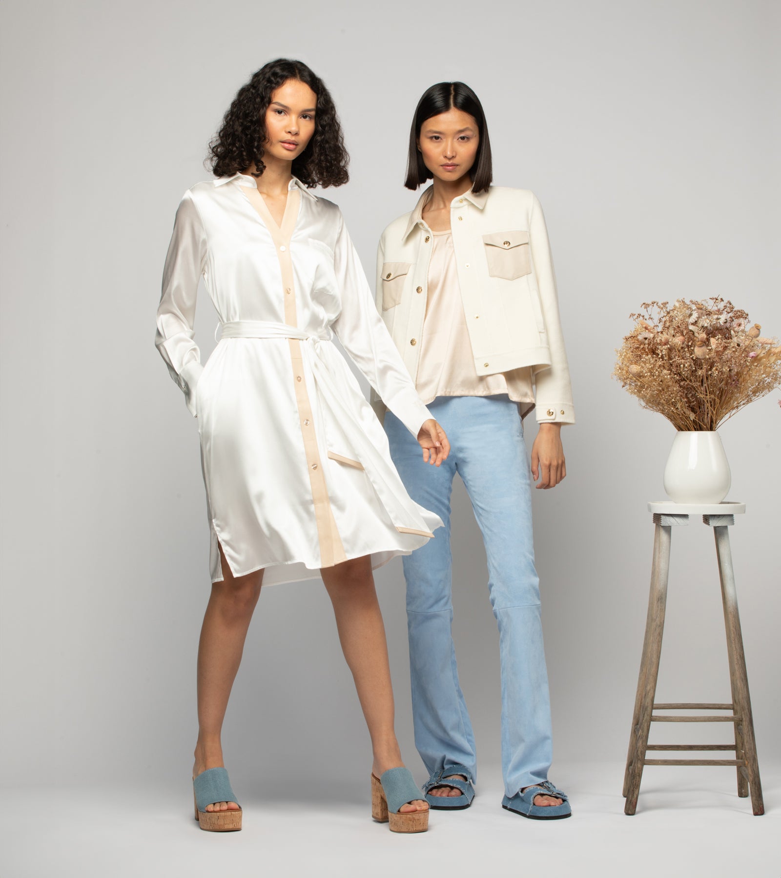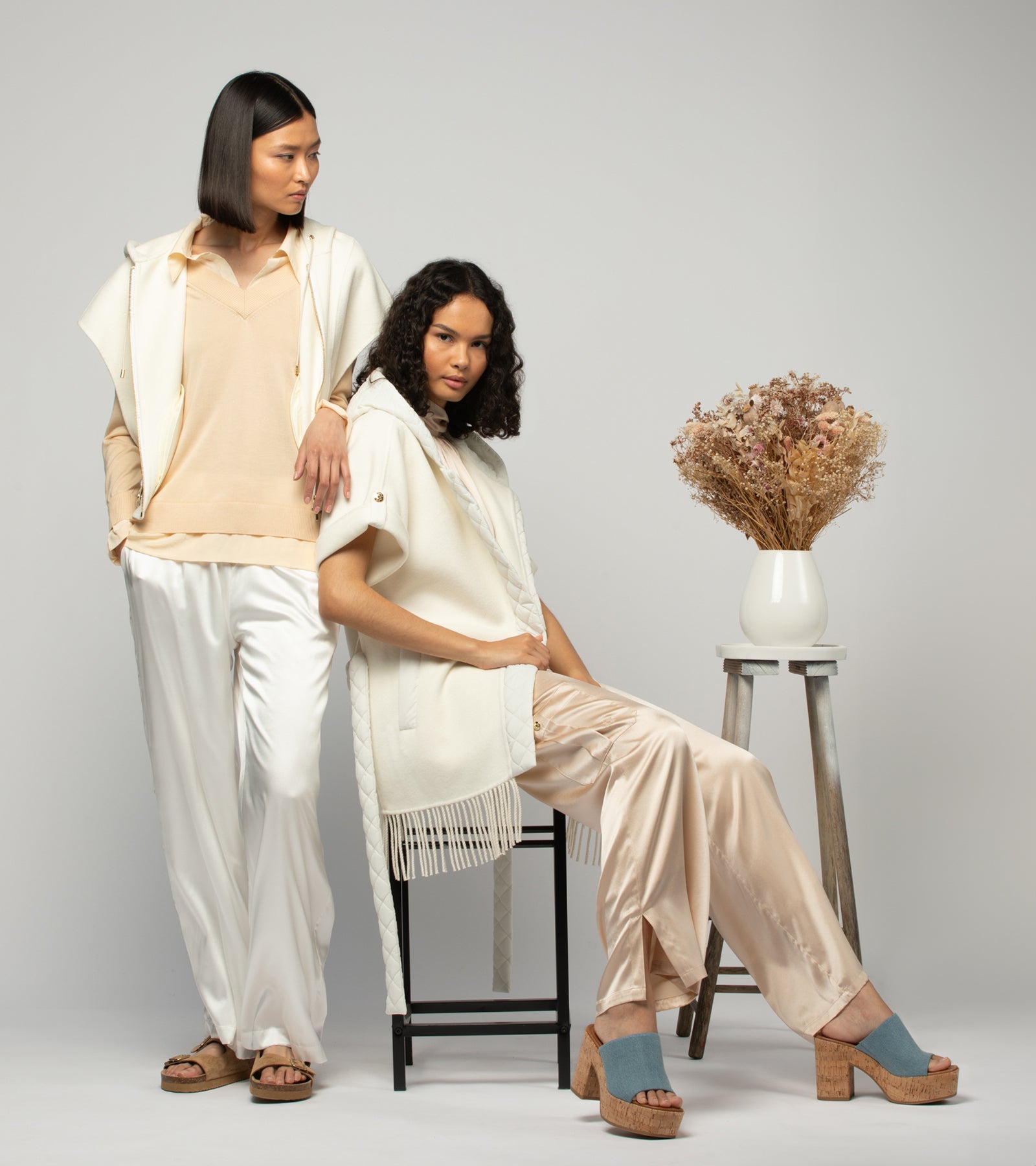 Subtle hues, fluid silhouettes, and delicate fabrics—leather, cashmere, silk, and linen—celebrate this timeless moment, between morning freshness and emerging radiance, redefining luxury and modern femininity.