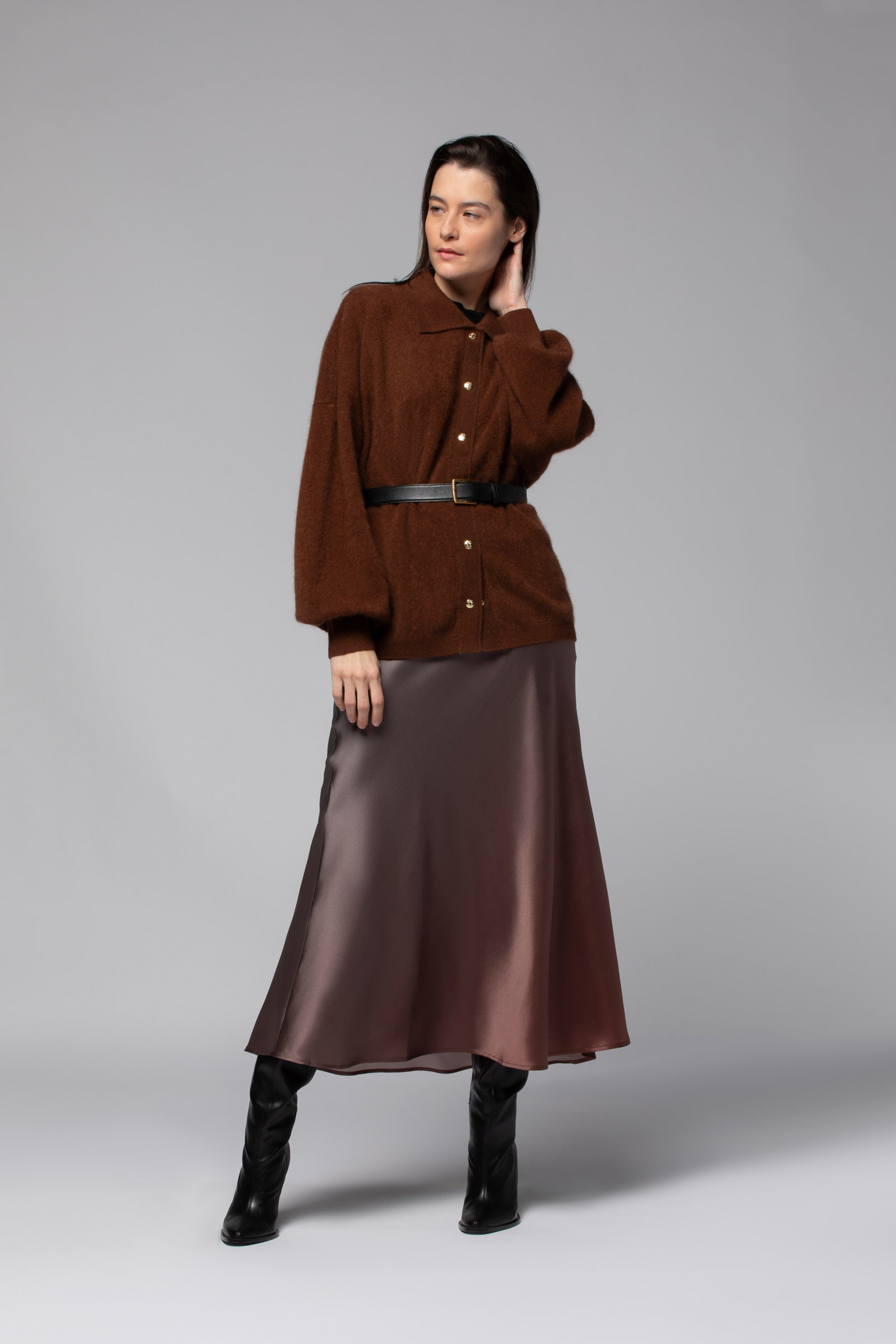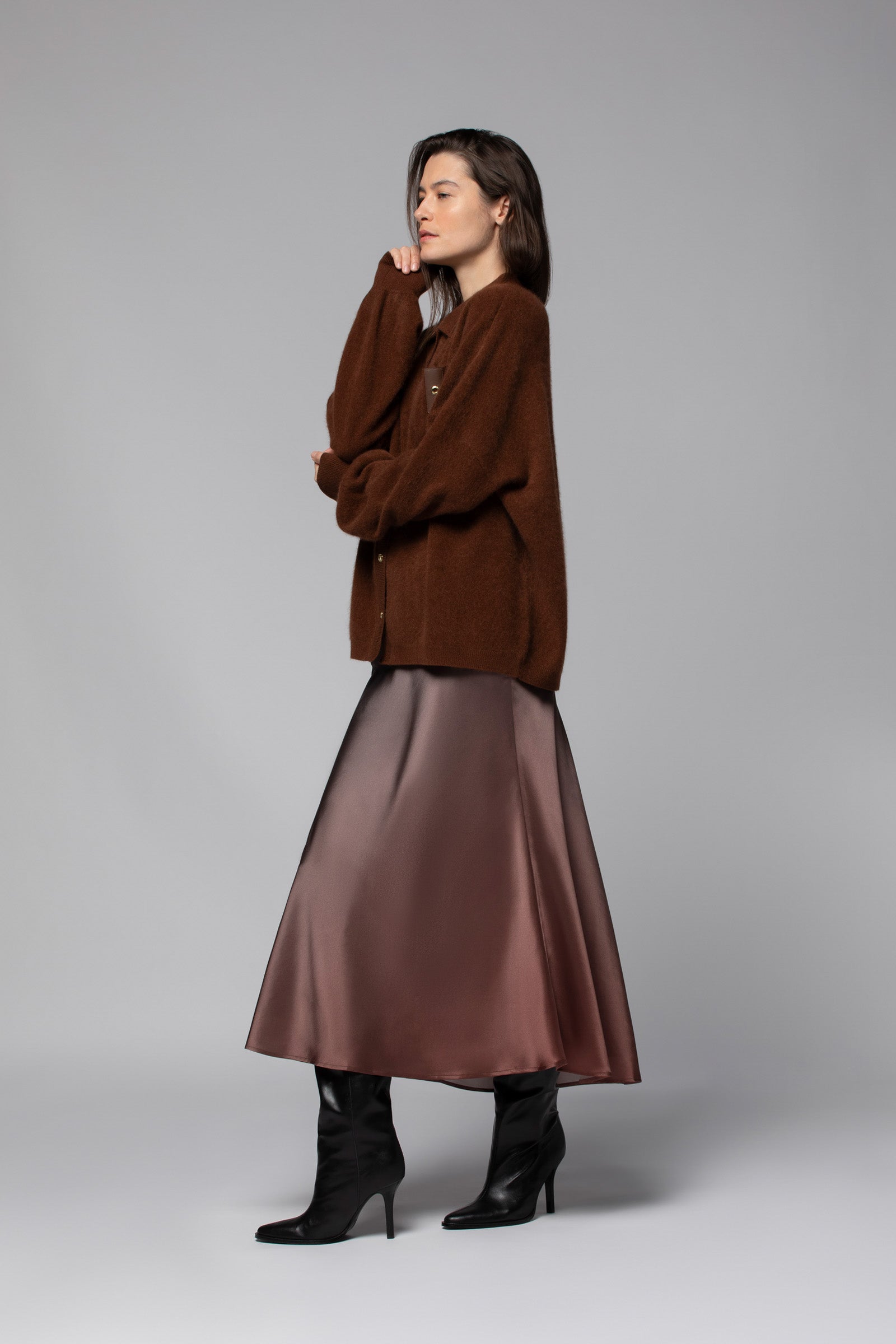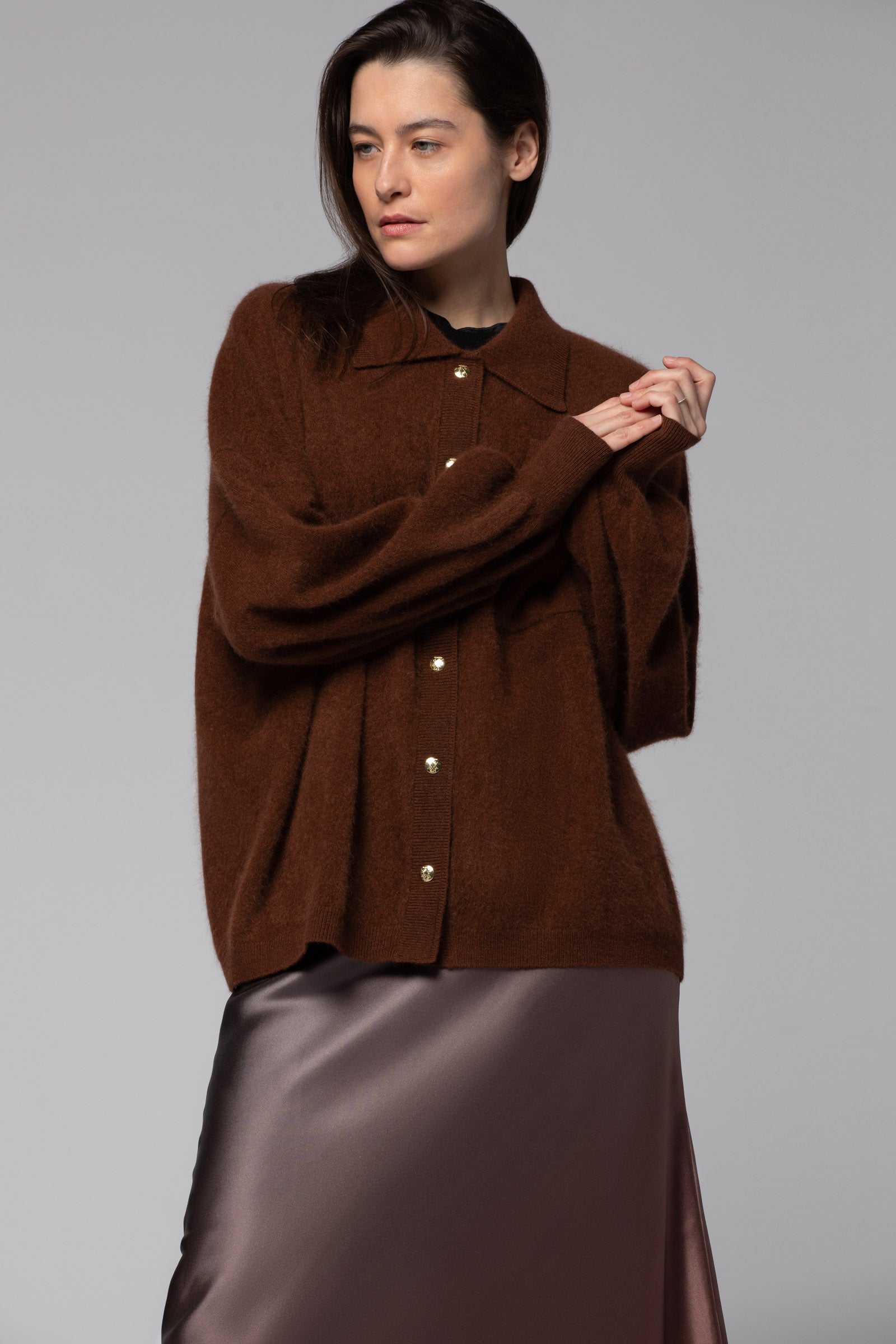 This women’s knit shirt is ideal for layering over a silk camisole, ultra-light knitwear, or our TWIGGY cashmere tank top.