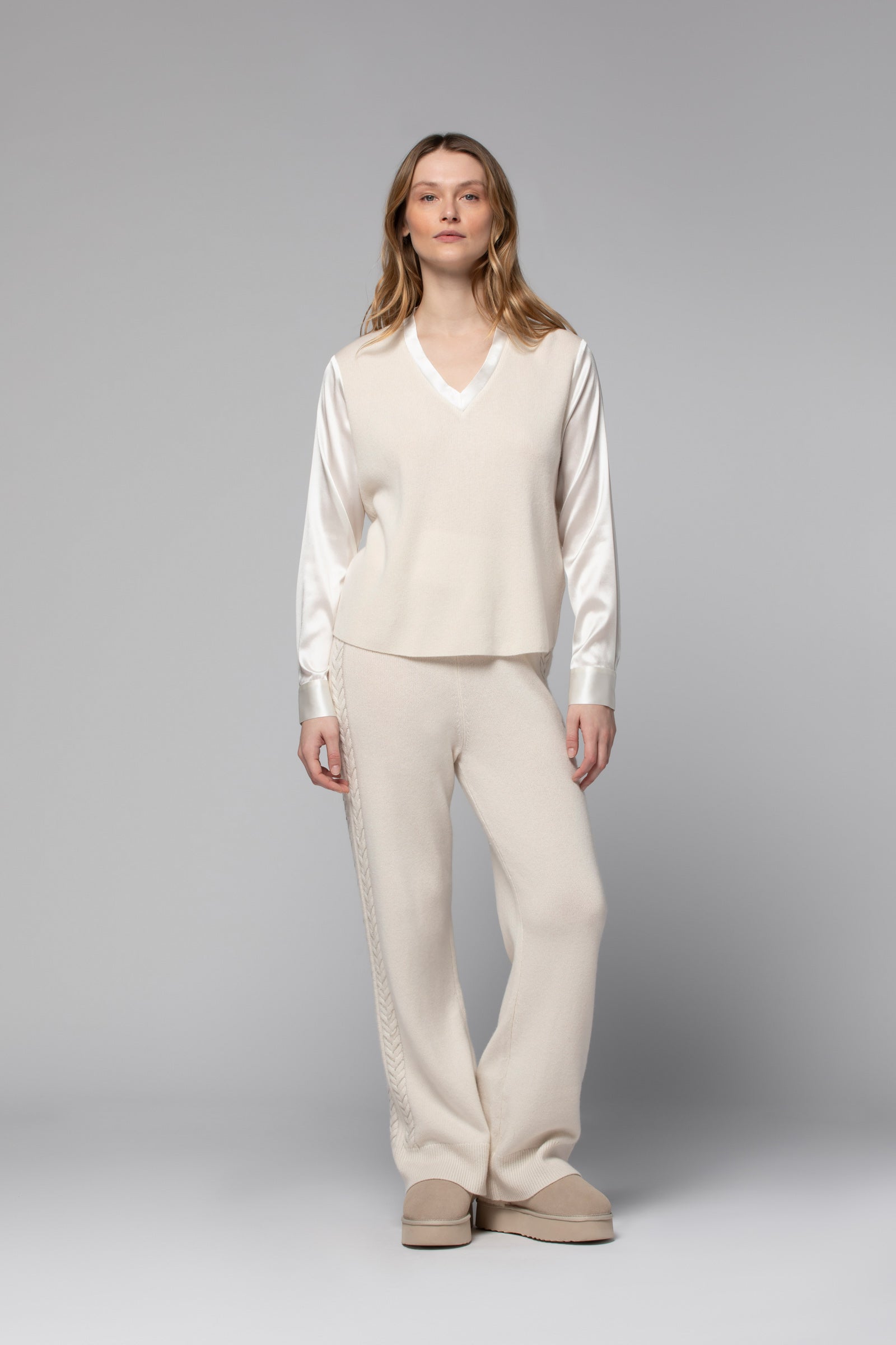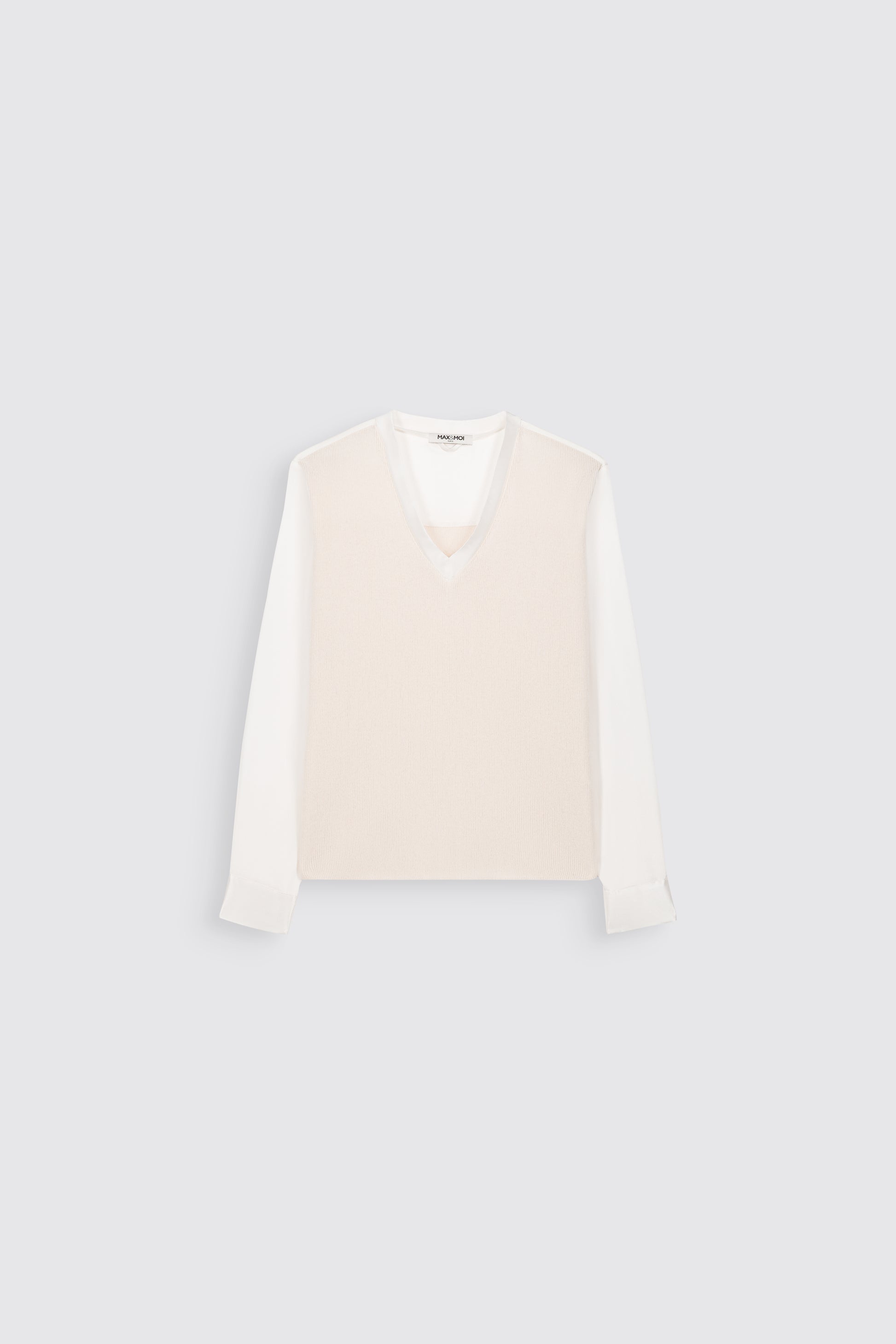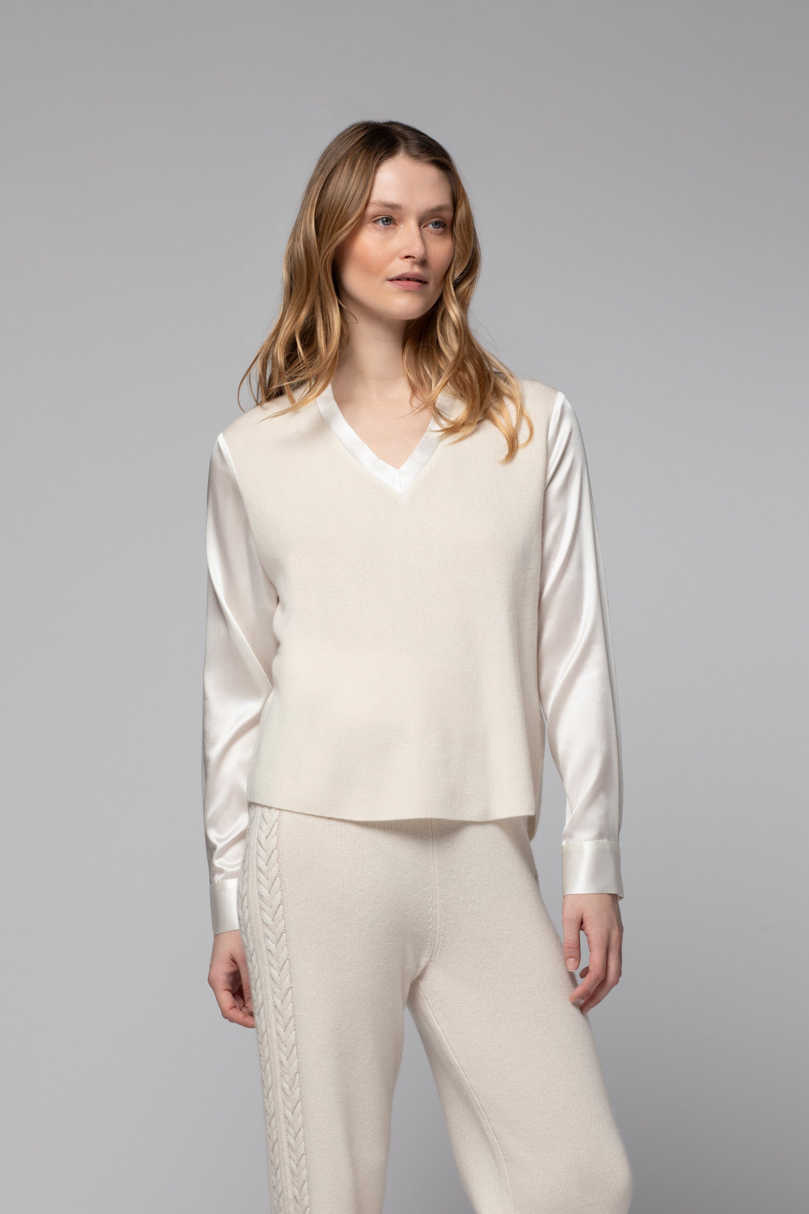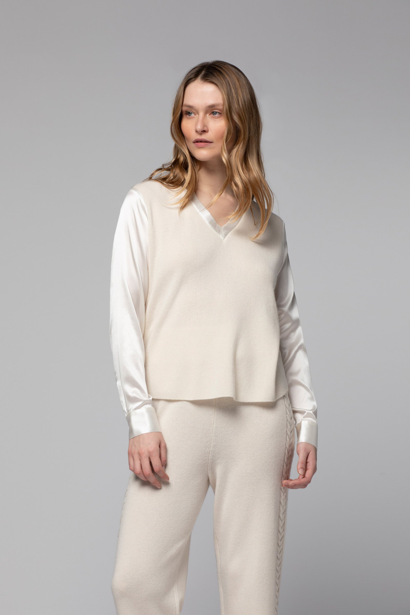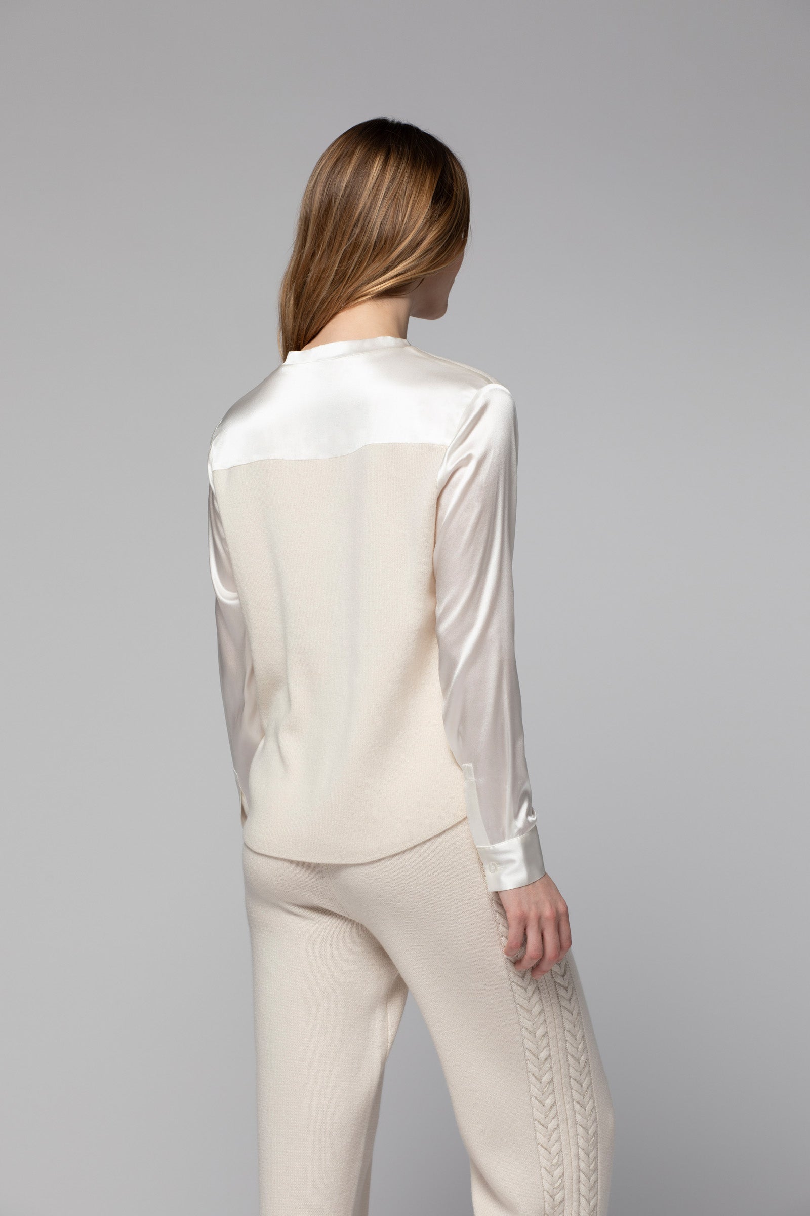 - Two-fabric blouse in wool, cashmere, and stretch silk