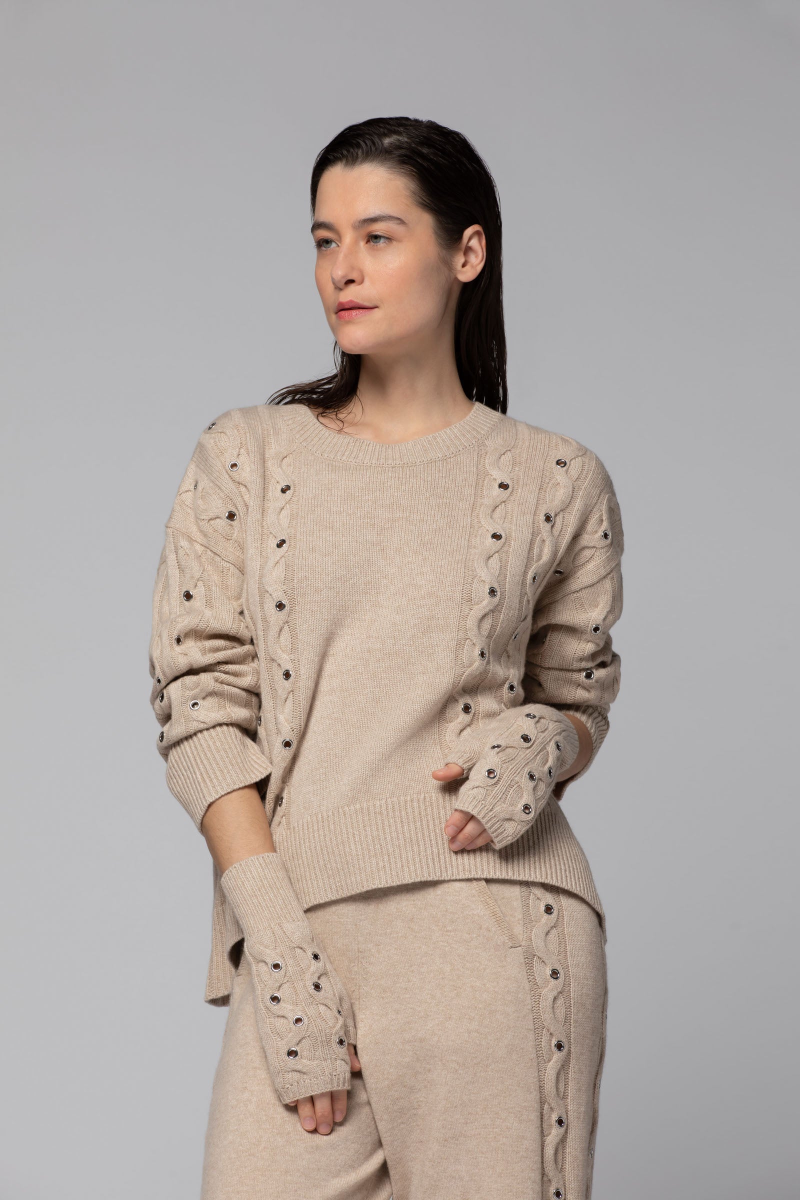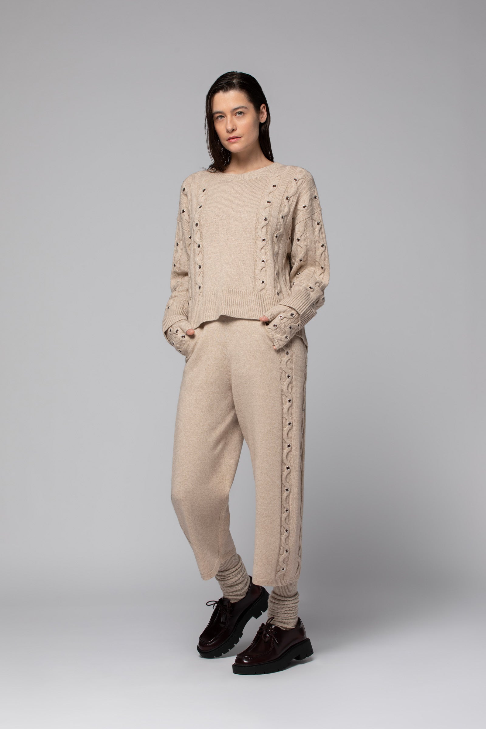 This long-sleeved women’s sweater is simply irresistible paired with our matching BLONDIE cashmere pants. It also styles effortlessly with denim or our iconic lamb leather leggings.