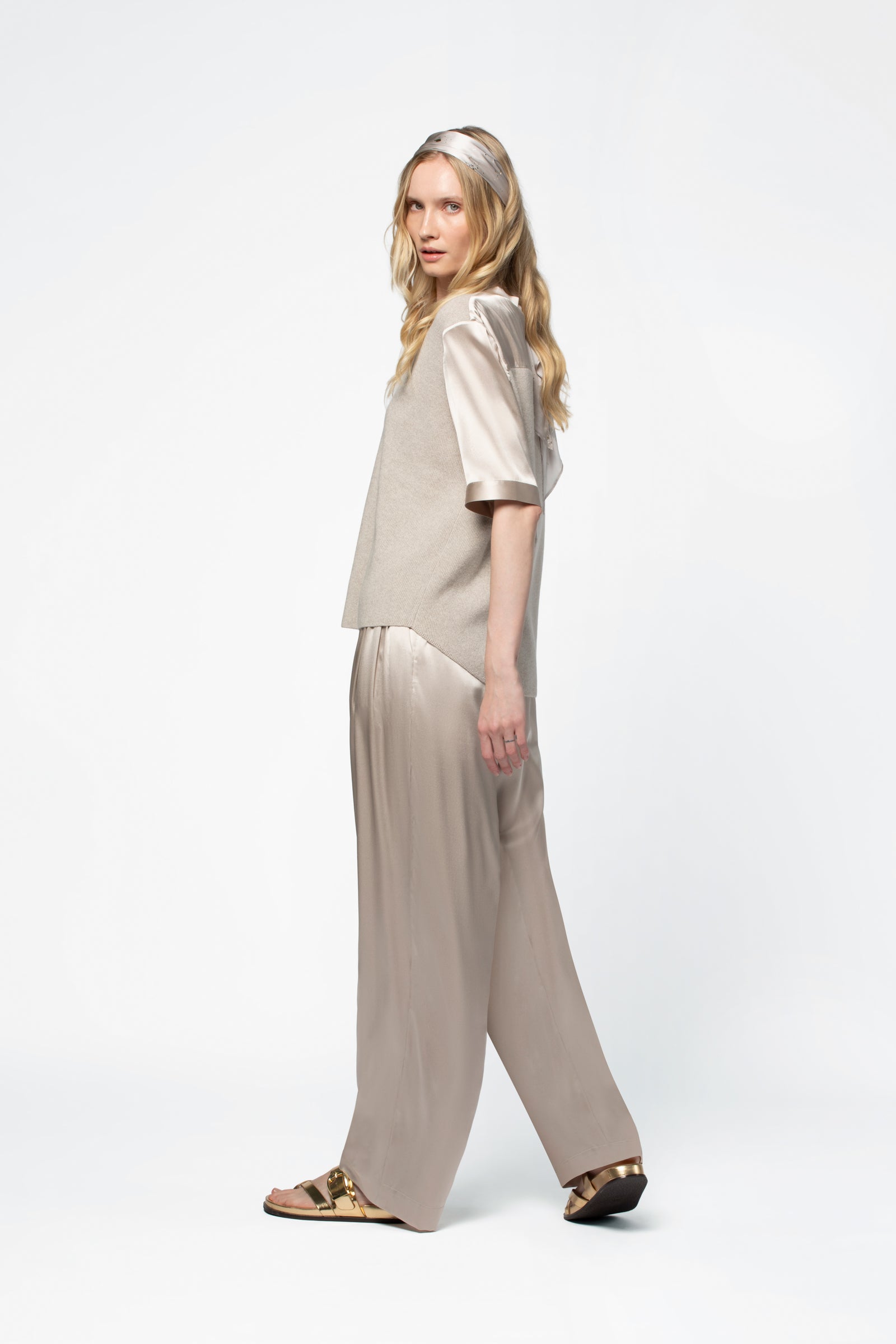 70% Wool, 30% Cashmere; Details: 95% Silk, 5% Elastane
