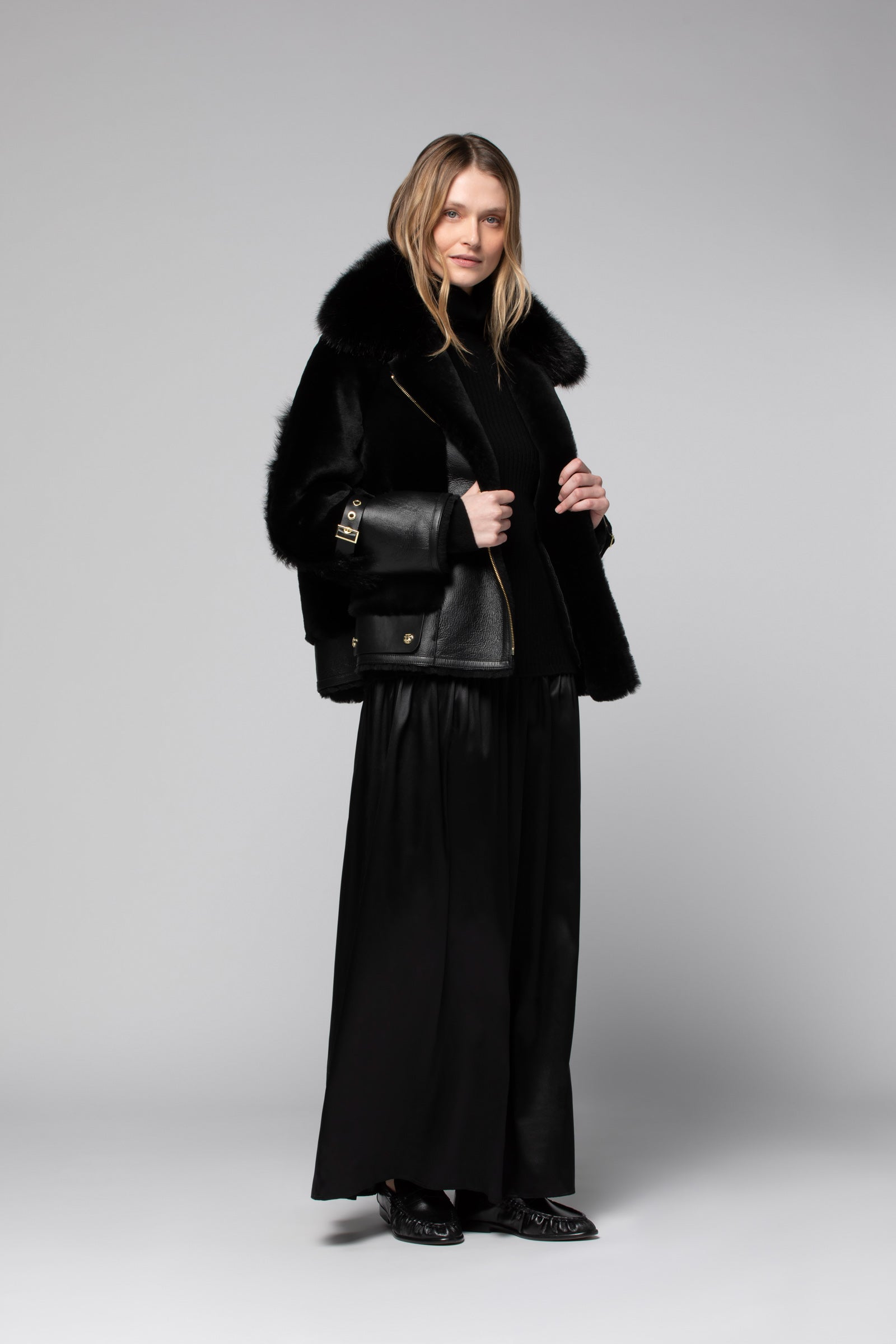 For a sophisticated and modern silhouette, pair it with our iconic lambskin leather leggings or a silk skirt. For a more relaxed look, opt for cashmere pants.