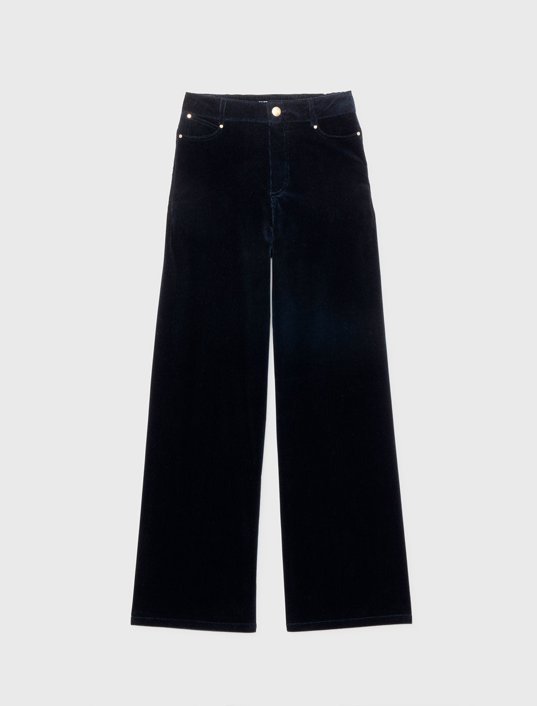 In between meetings, she takes a well-deserved break, wrapped up in an essential double-faced short wool coat, which she wears over her Grandpa PATCH jumper and BASILIA corduroy trousers.