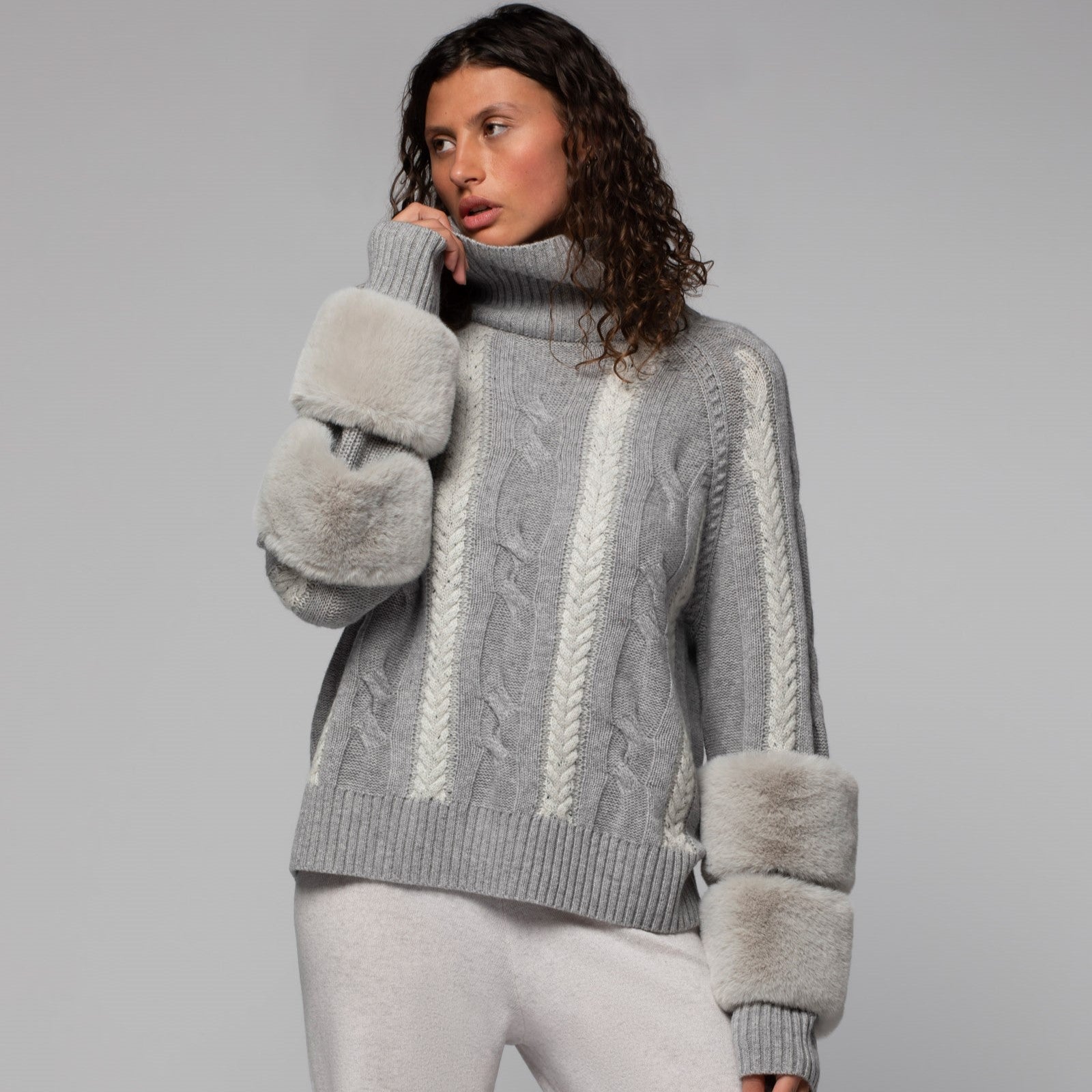 Creative knits, dear to Emma Lederer, express this stylistic exploration through patterns and volumes. Twisted, jacquard, or two-tone, they reveal the full richness of grey shades and bring relief and movement to the silhouettes. As for the Signature knit, it combines the warmth of cashmere with the lightness of silk — or the modernity of leather — in a perfect balance between comfort and sophistication.