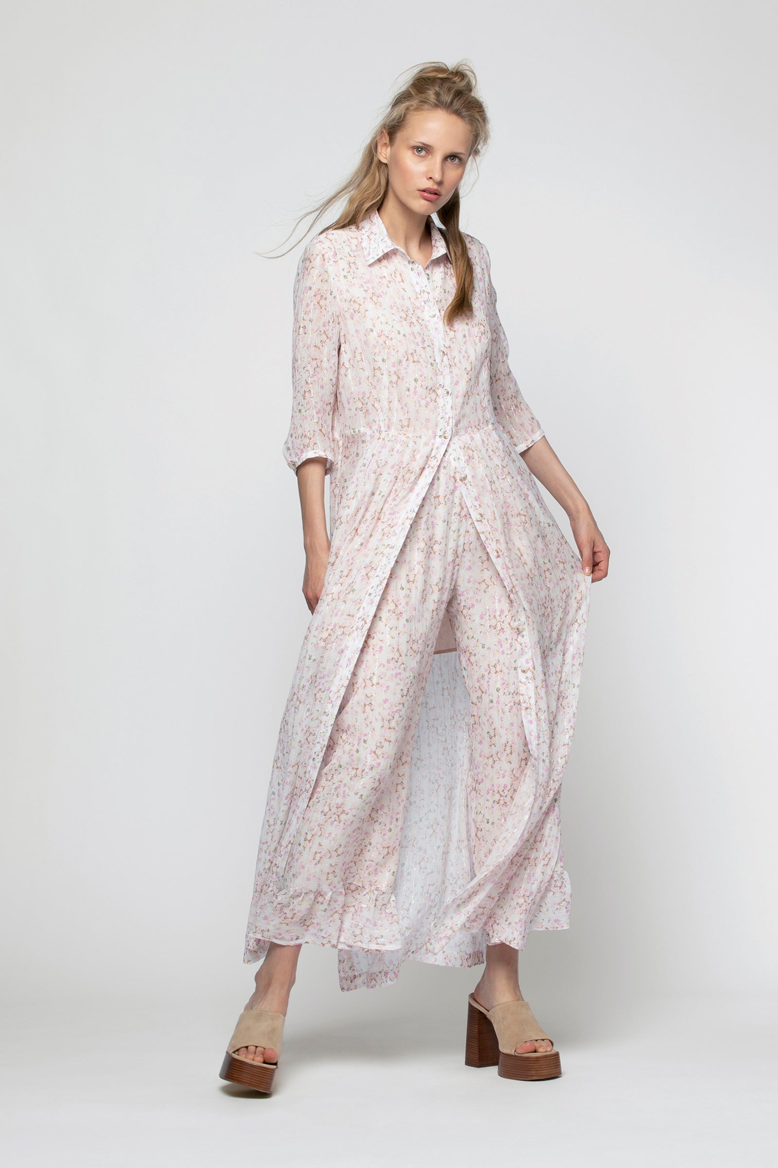 From the choice of japanese fabric to the cut, embellished with side slits and figure-enhancing gathers at the waist, this long dress dress dresses you for your most special occasions and pays homage to your femininity. Perfect for daytime summer wear or evening dining on one of the capital's most beautiful rooftops, it's sure to become a summer wardrobe essential.