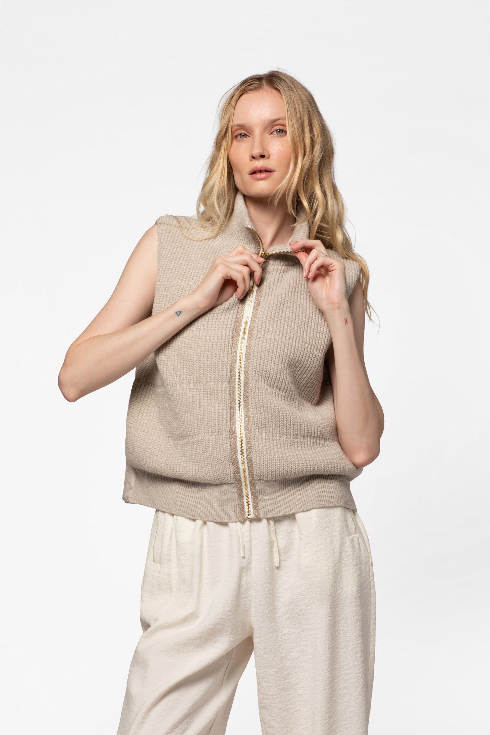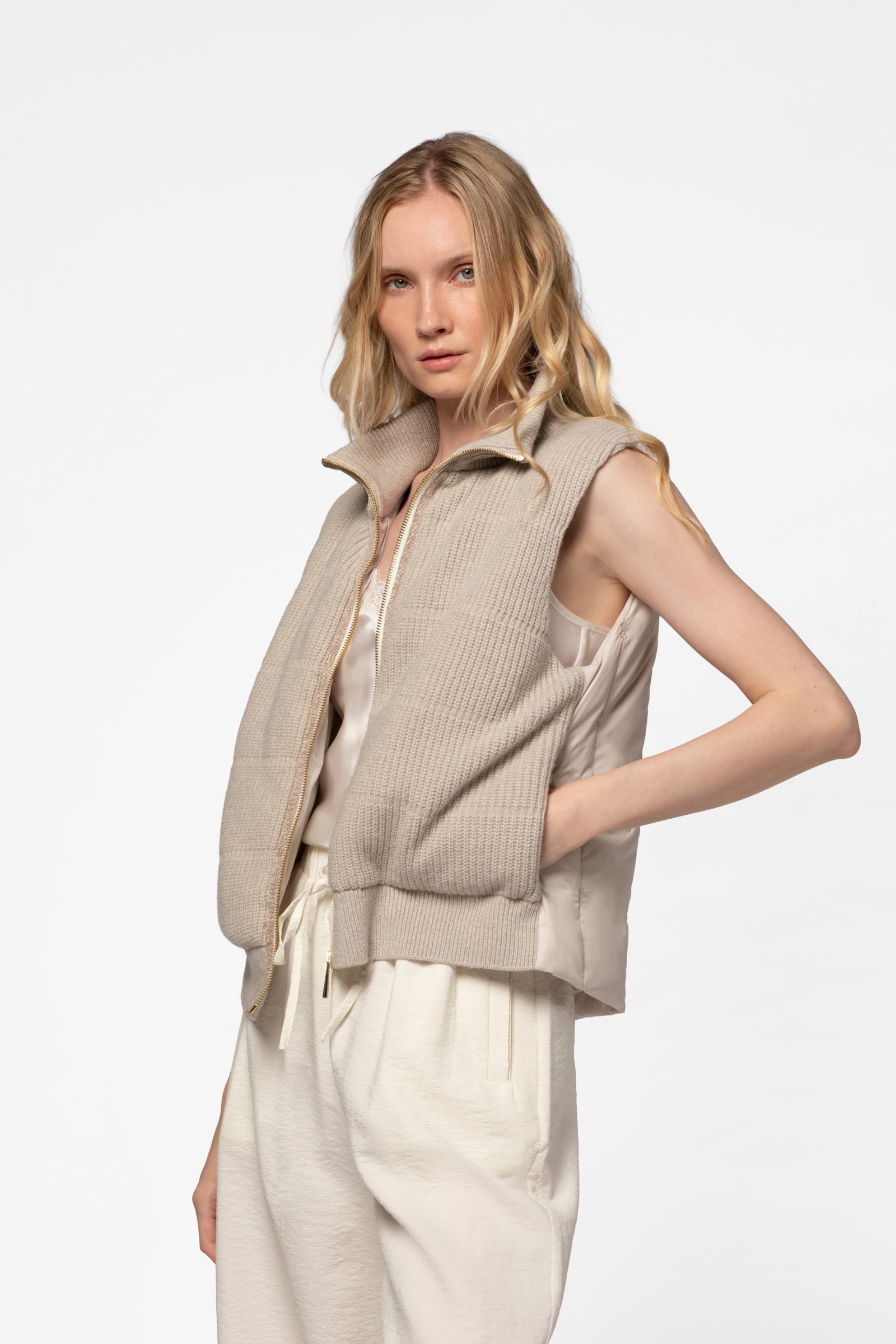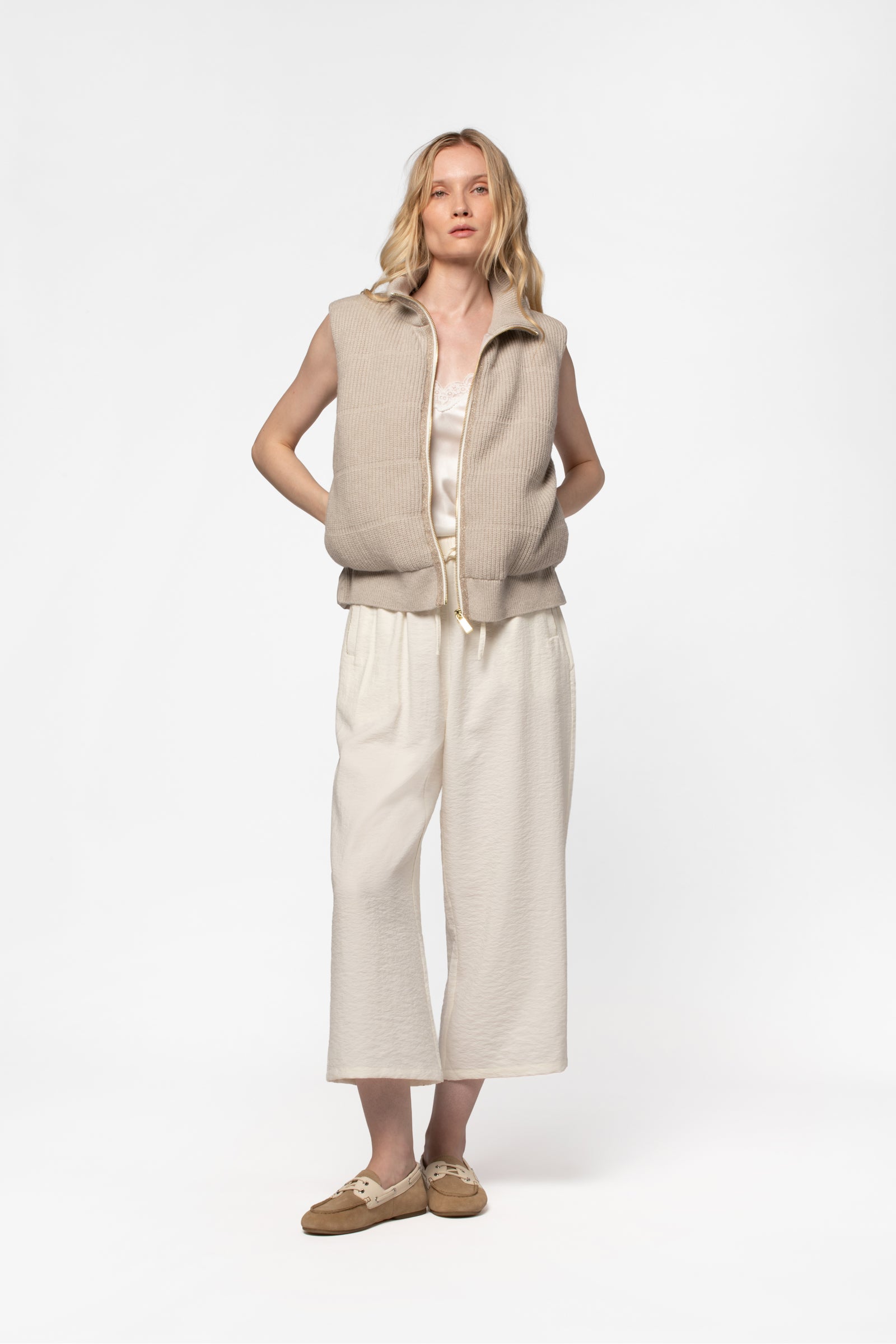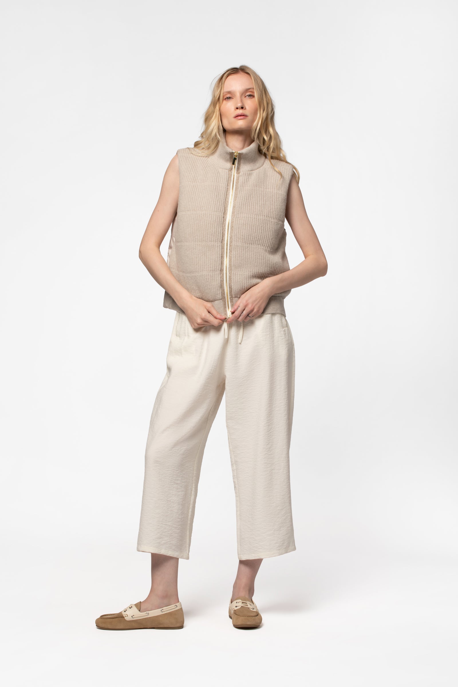- Ribbed knit front