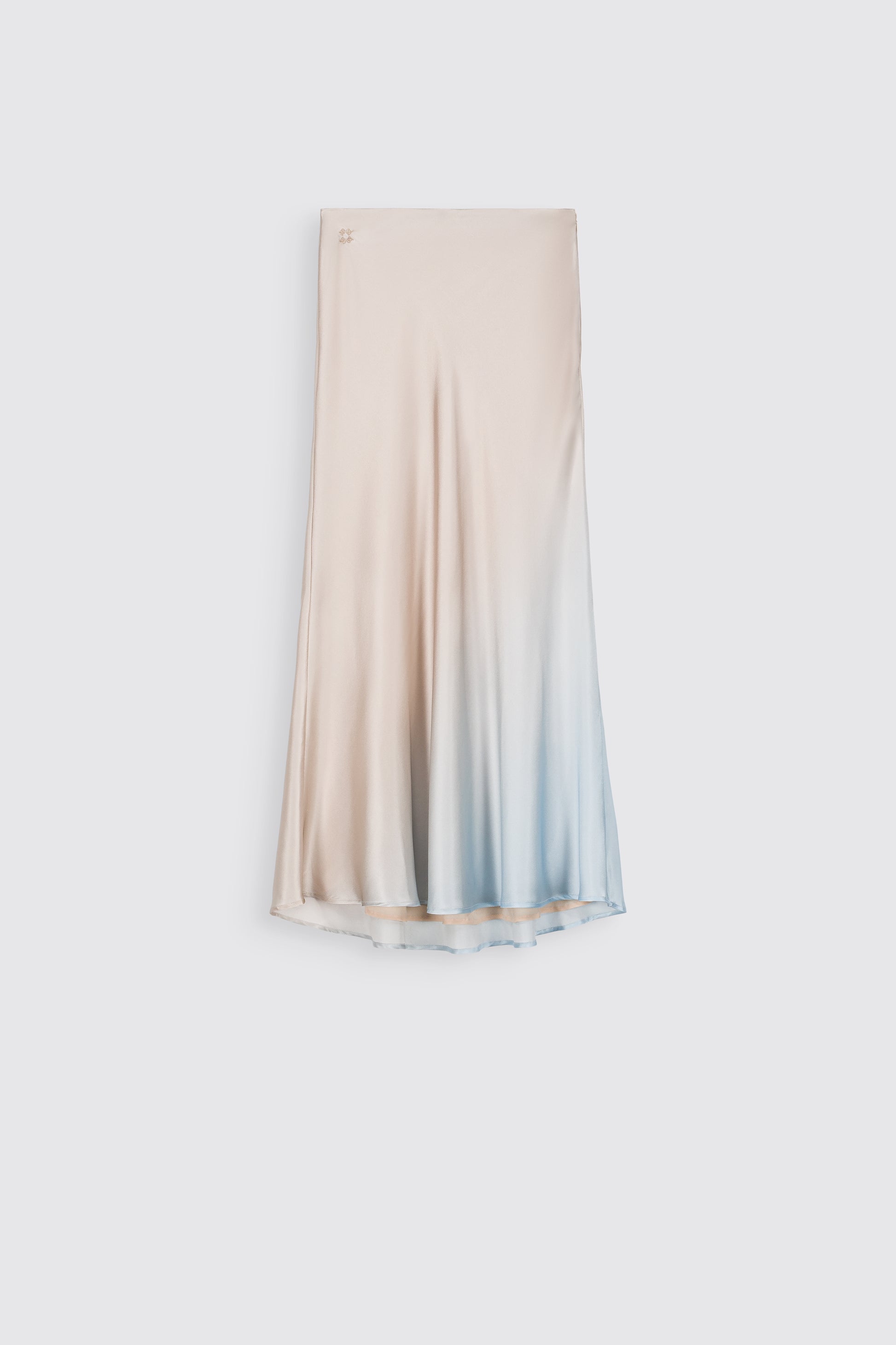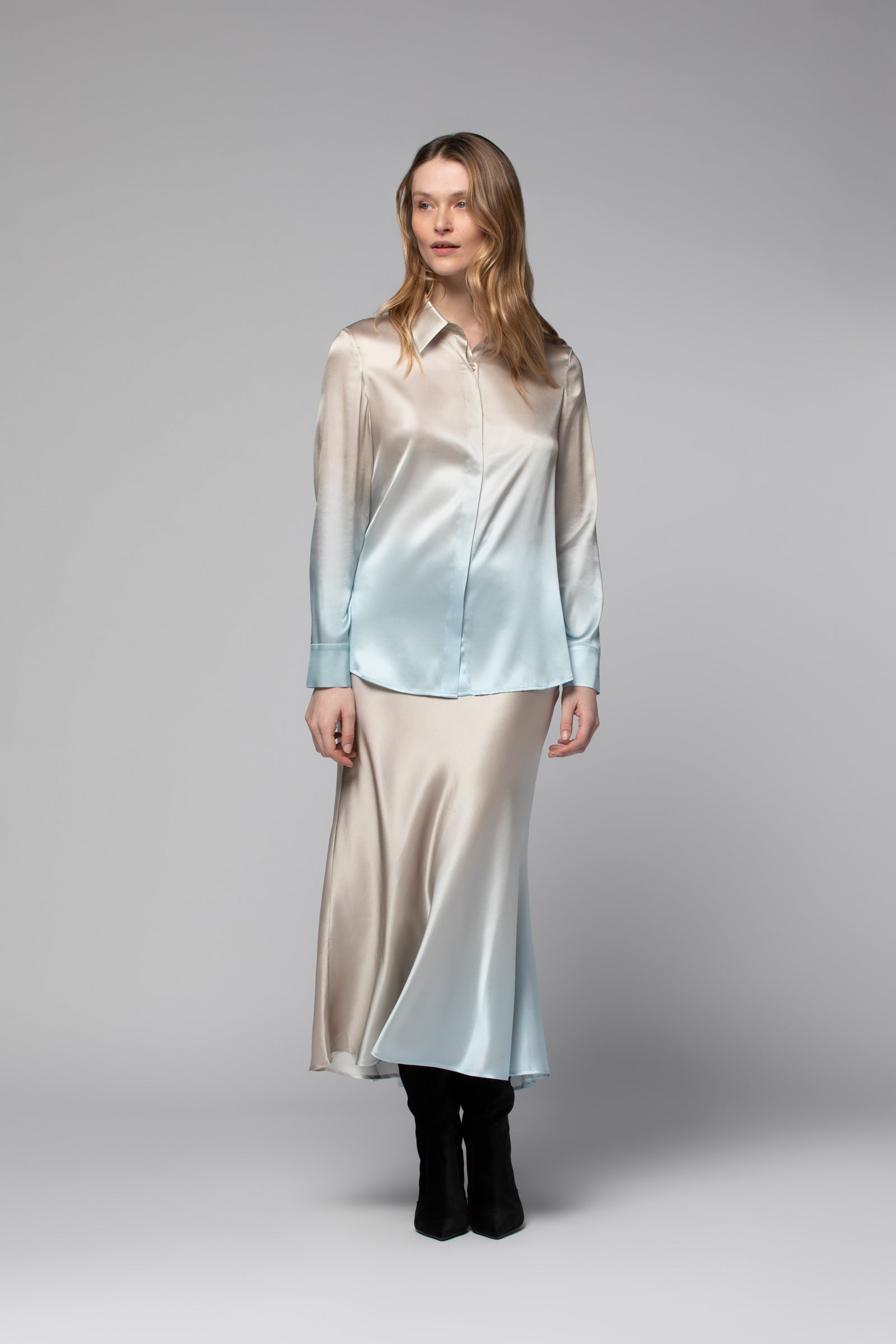 Available in a stunning chocolate or sky-blue gradient, as well as solid shades of pink and sand, this women’s silk skirt suits every mood and style.