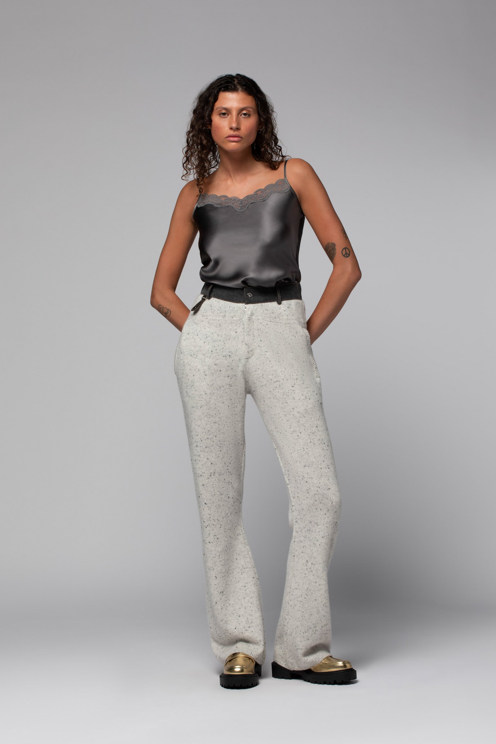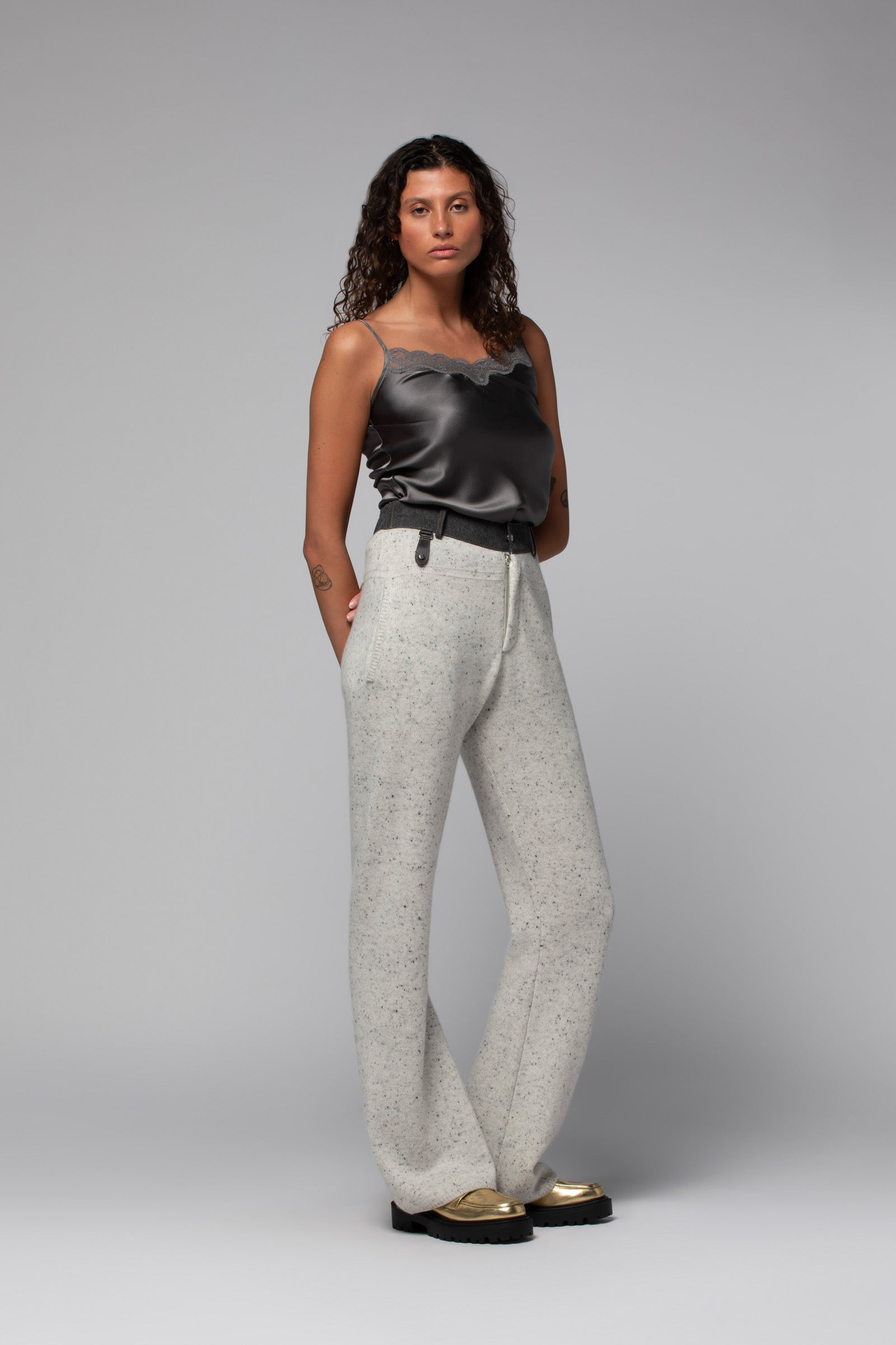 Timeless and versatile, these knit-and-denim pants for women are an easy addition to your everyday wardrobe. Wear them with a silk camisole, a cashmere sweater, or an oversized shirt. For a confidently urban silhouette, pair them with our matching knit-and-denim jackets, VIXY or VALENCIA.