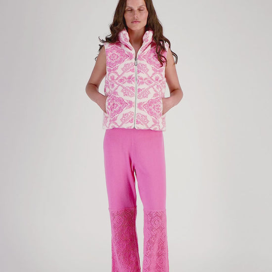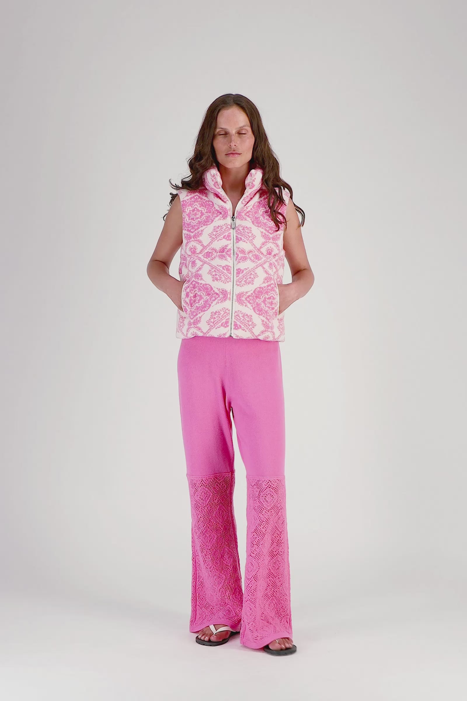 - Crochet-effect knit at the hem