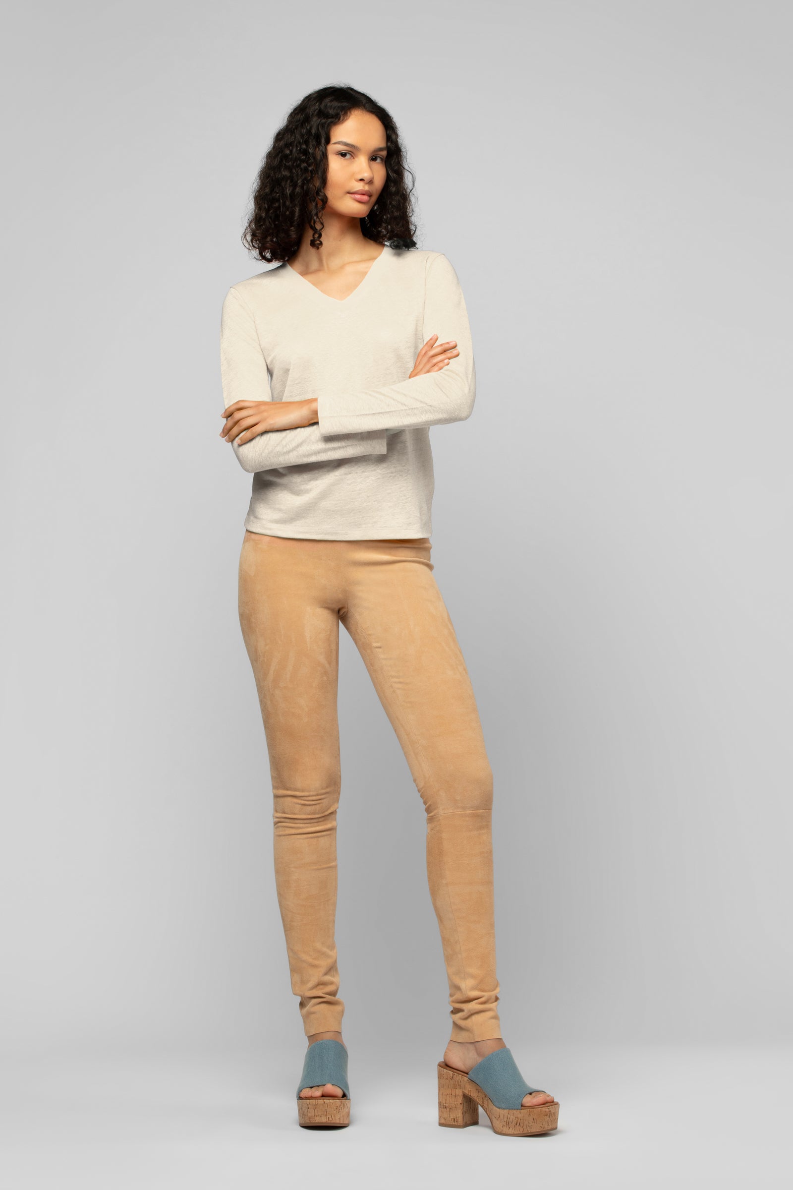 Versatile and timeless, these suede leggings can be styled to suit any mood. Pair them with a luxurious silk shirt for a sophisticated officewear-inspired look. For a more laid-back feel, wear them with a lightweight cashmere knit or a breezy linen top.