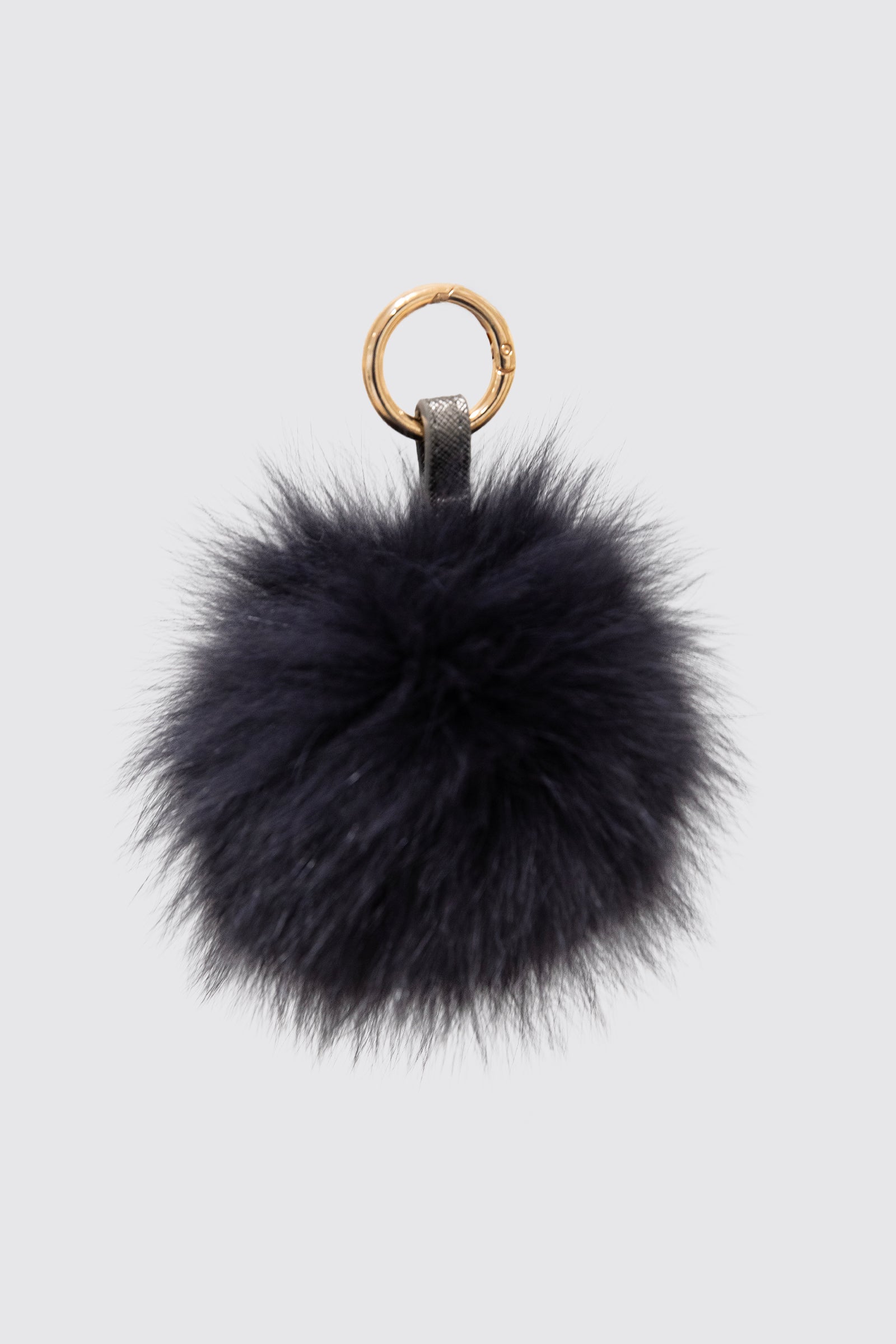 This bag charm fur pom-pom is available in five timeless shades – brown, light grey, off-white, beige, and midnight blue – each harmonizing effortlessly with your wardrobe.