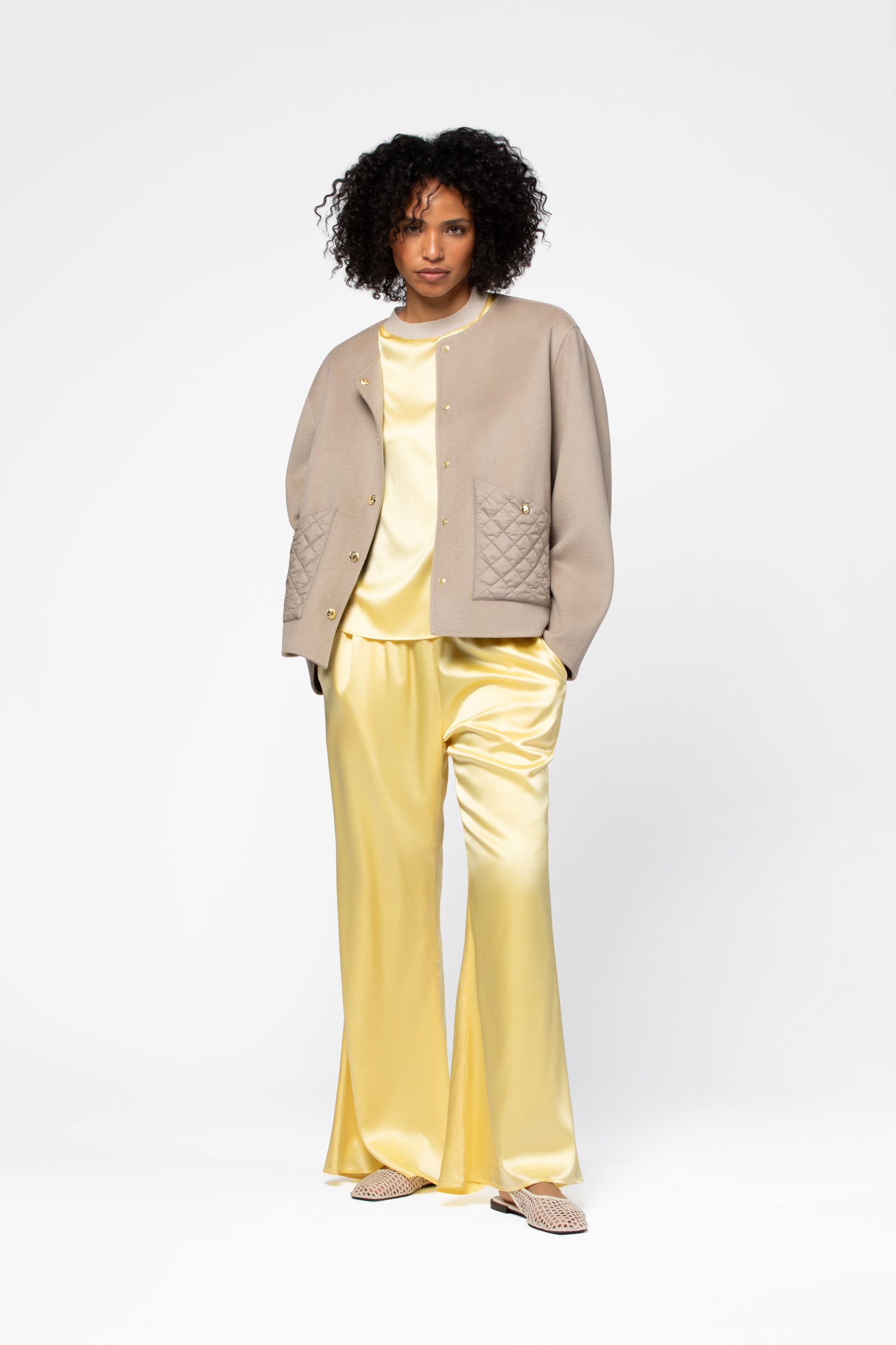 Day or night, this lightweight long-sleeve jacket will elevate all your seasonal outfits. It pairs effortlessly with cashmere pants, a silk skirt, MAX&MOI denim, our vintage-print BRAVA pants, or our iconic suede leggings.