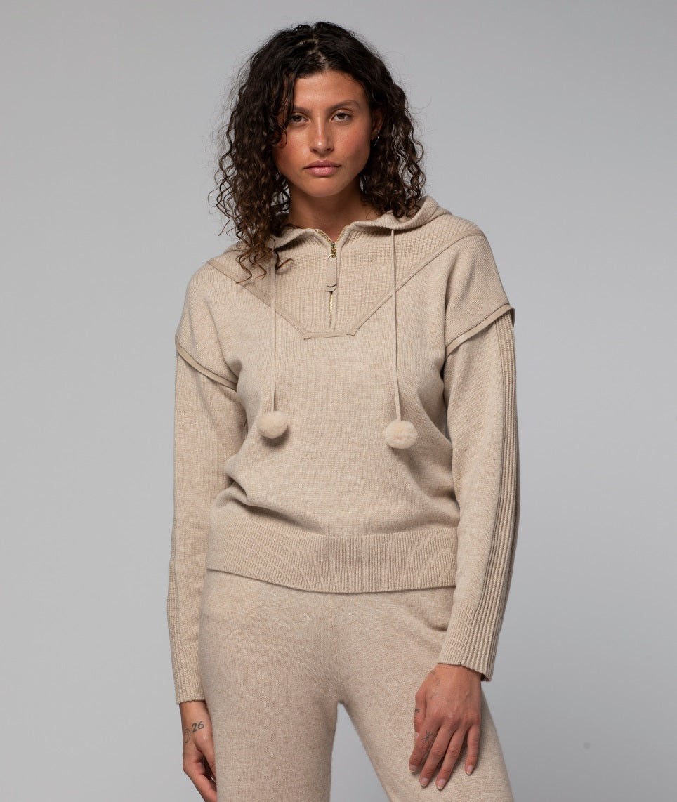 For a touch of sophistication, opt for silk tops and shirts with feather-trimmed sleeves, cashmere sweaters enhanced with leather details, and creative knits sprinkled with lurex threads and sequins. Beautiful lace-ups, mother-of-pearl buttons on a silk top, or leather inserts applied on cashmere sweaters, ponchos, hoodies, and vests are signature details that add sophistication and chic to an outfit. Accessories such as a ring, an elegant watch, earrings, or a handbag can also complete the look, adding a personal and luxurious touch.