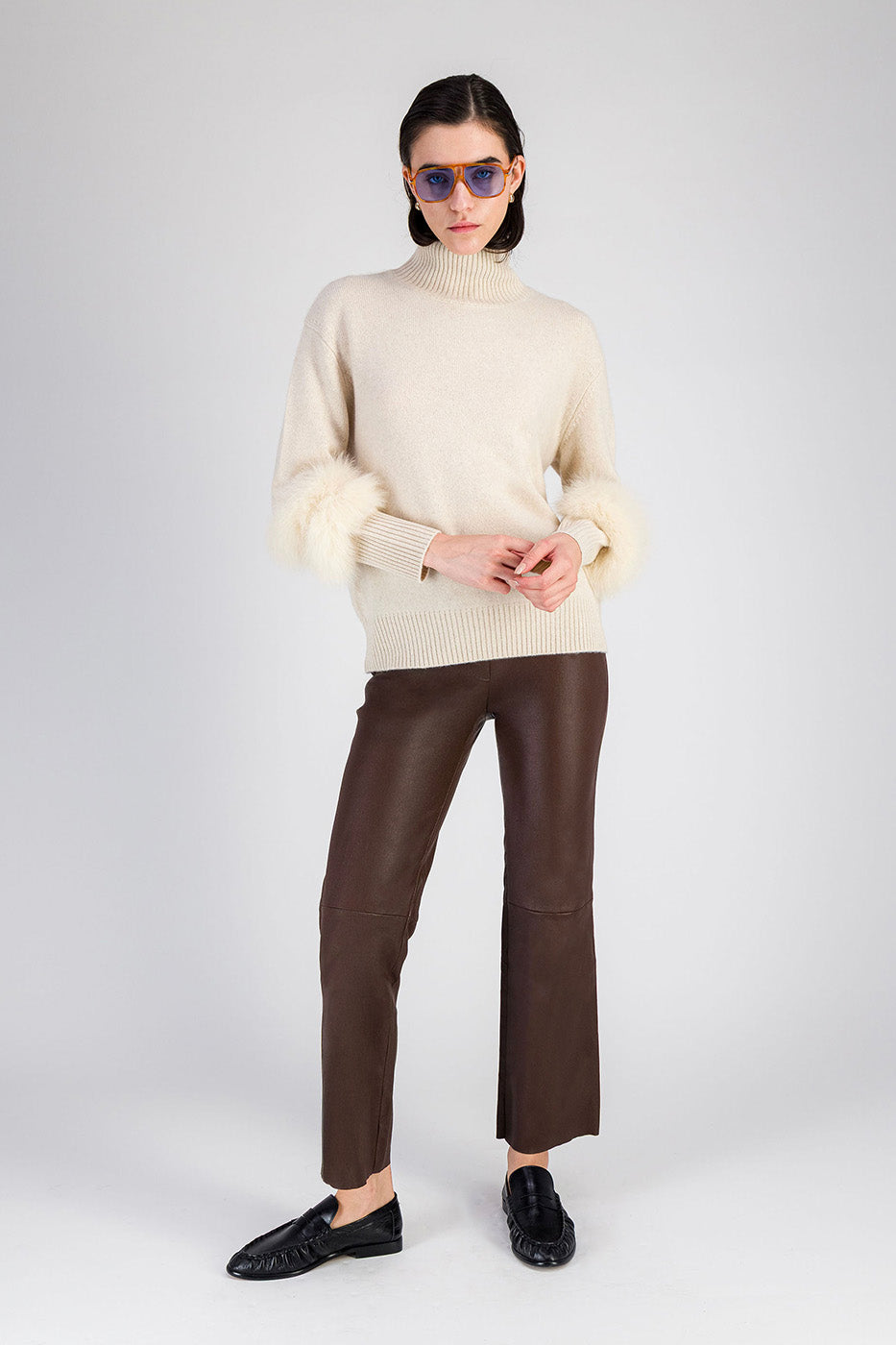 You loved it, and now it’s back. Our GARY cashmere sweater, a creation from "M&M," the second line of Maison MAX&MOI, embodies pure elegance more than ever. This autumn, it is reinvented with a high funnel neck that warms the silhouette with style. Featuring a relaxed fit, ribbed finishes, and long sleeves enhanced with luxurious removable fox fur cuffs, this wardrobe essential delivers an upgraded casual-chic look.
