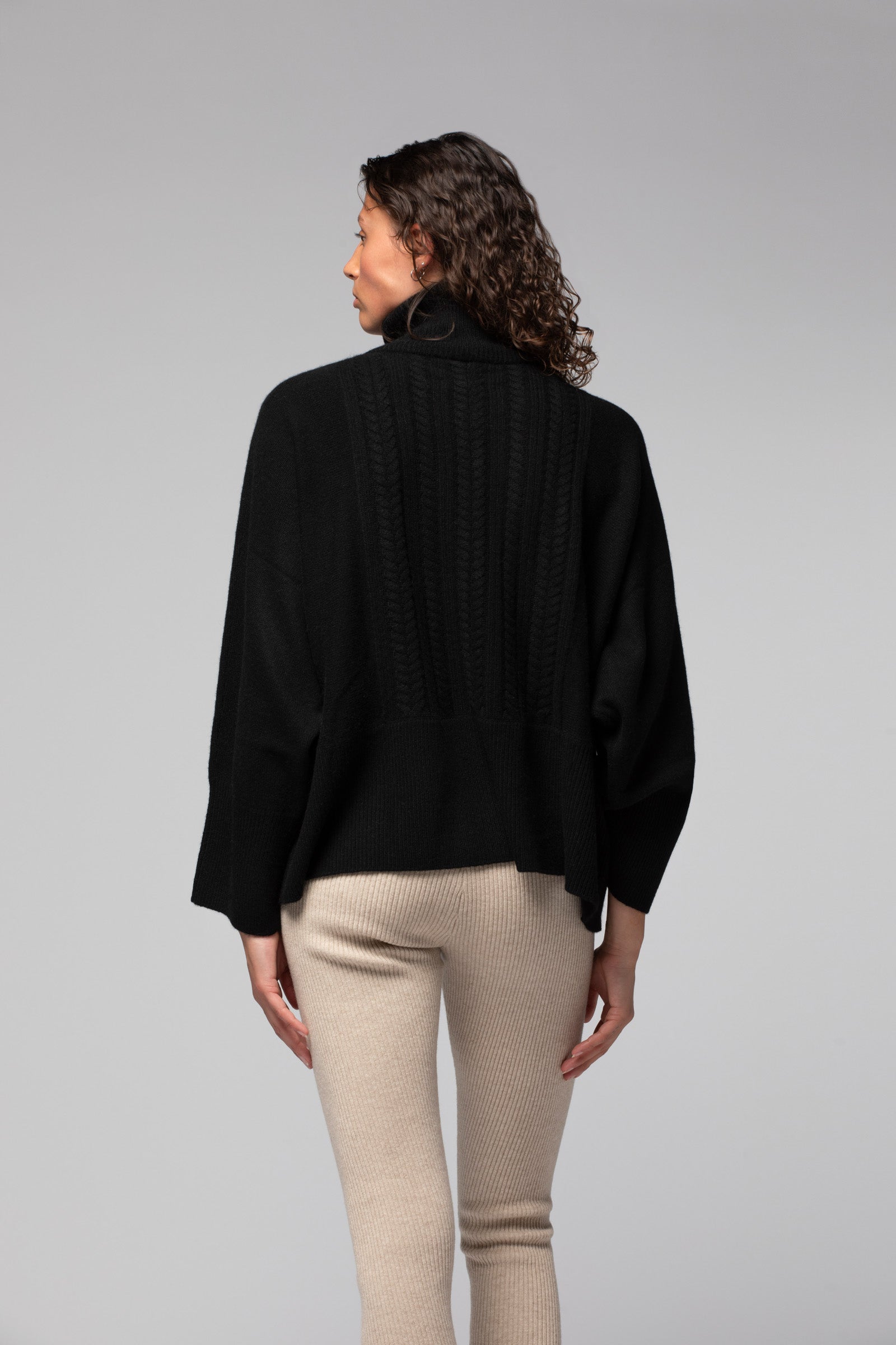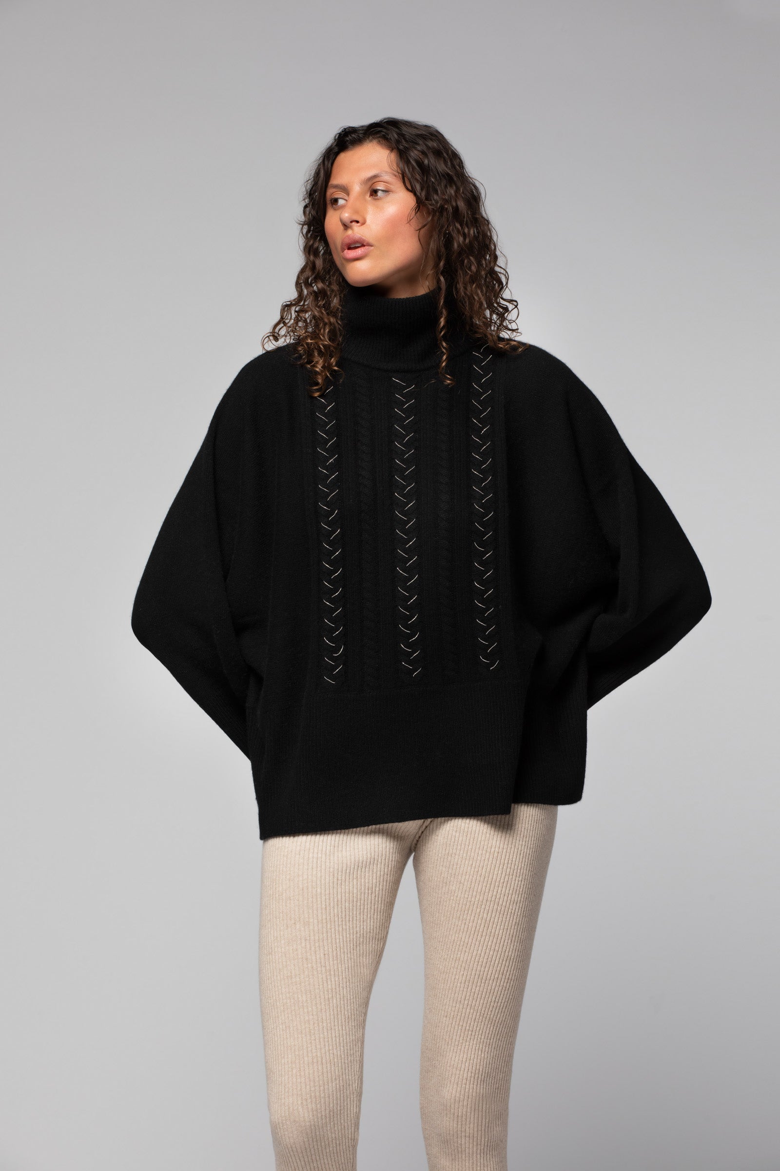 Available in deep black or luminous white, this turtleneck sweater is sure to become a wardrobe essential.