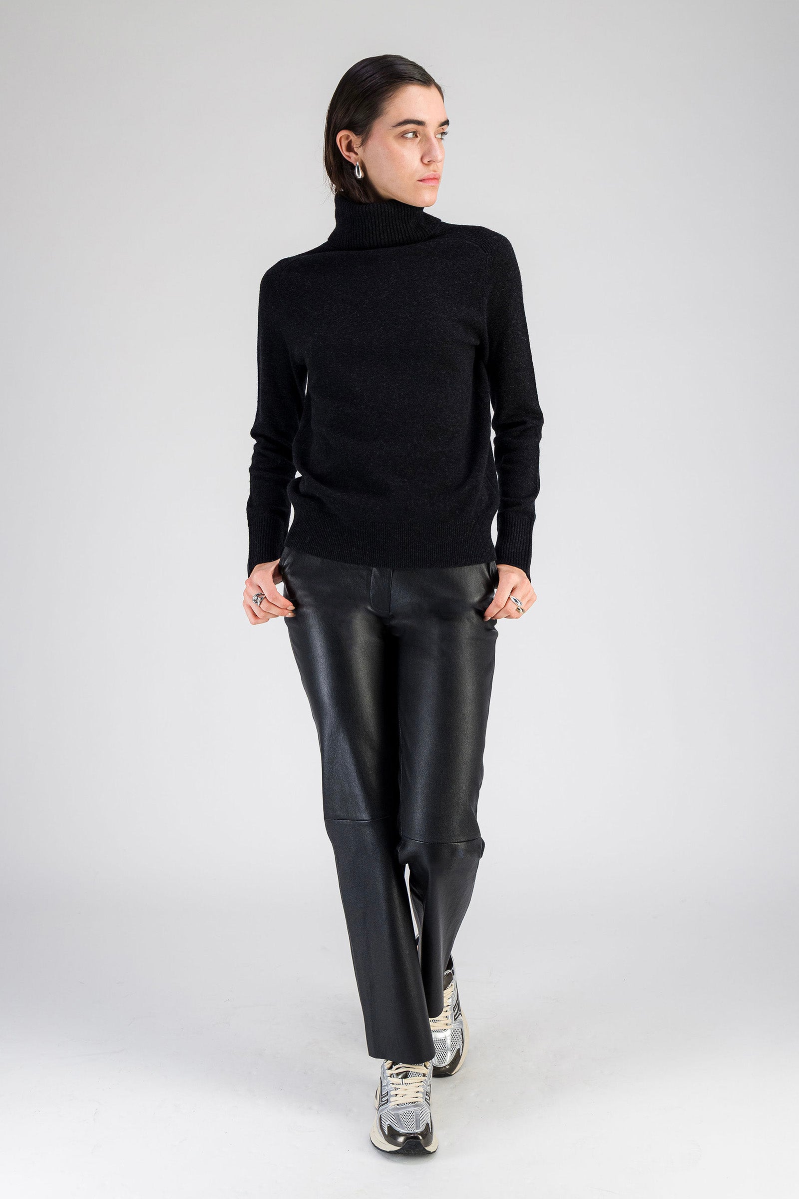 Easy to wear, this cashmere sweater pairs effortlessly with cashmere pants, a knitted midi skirt, denim jeans, or our iconic lambskin leather leggings.