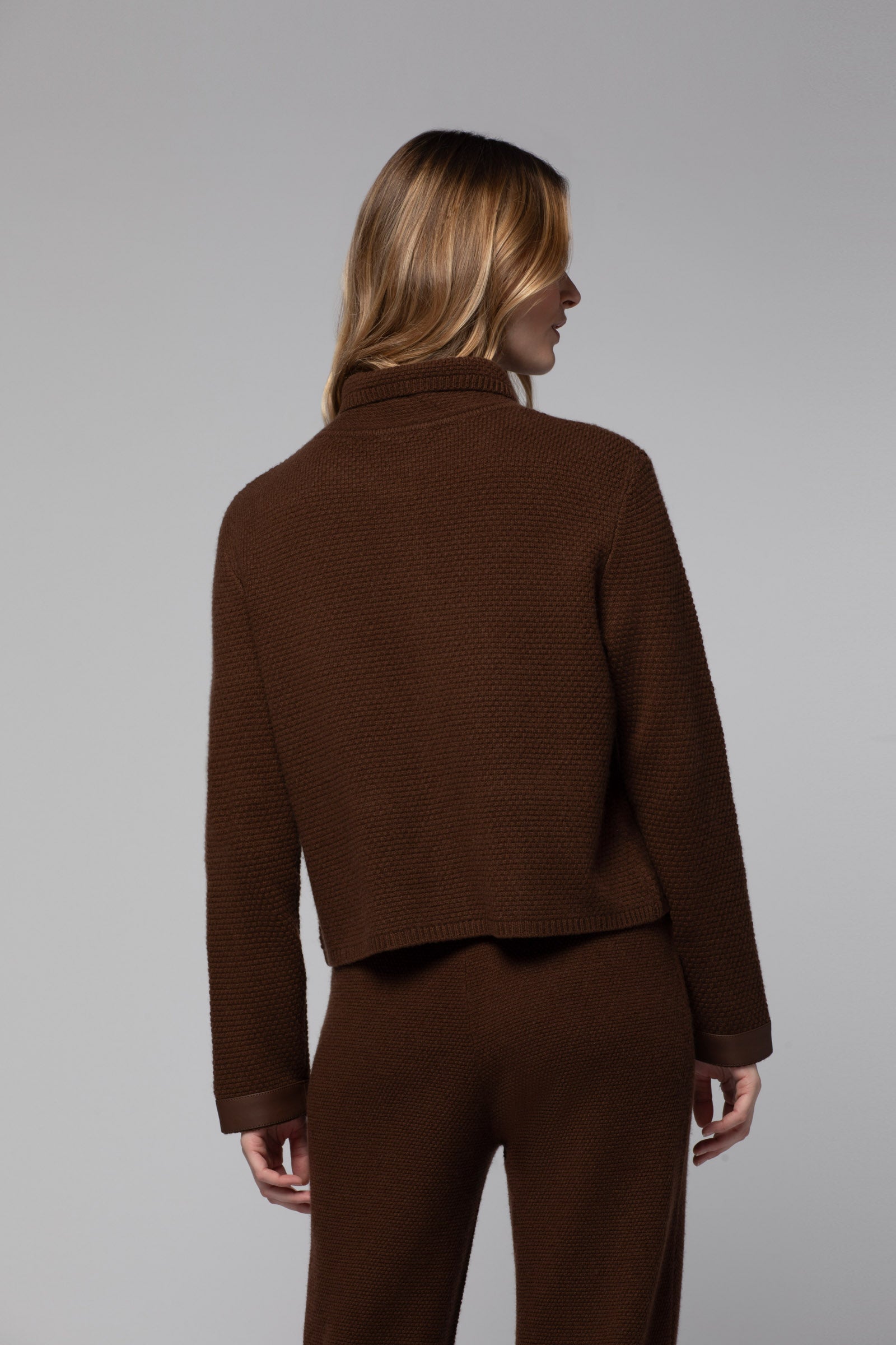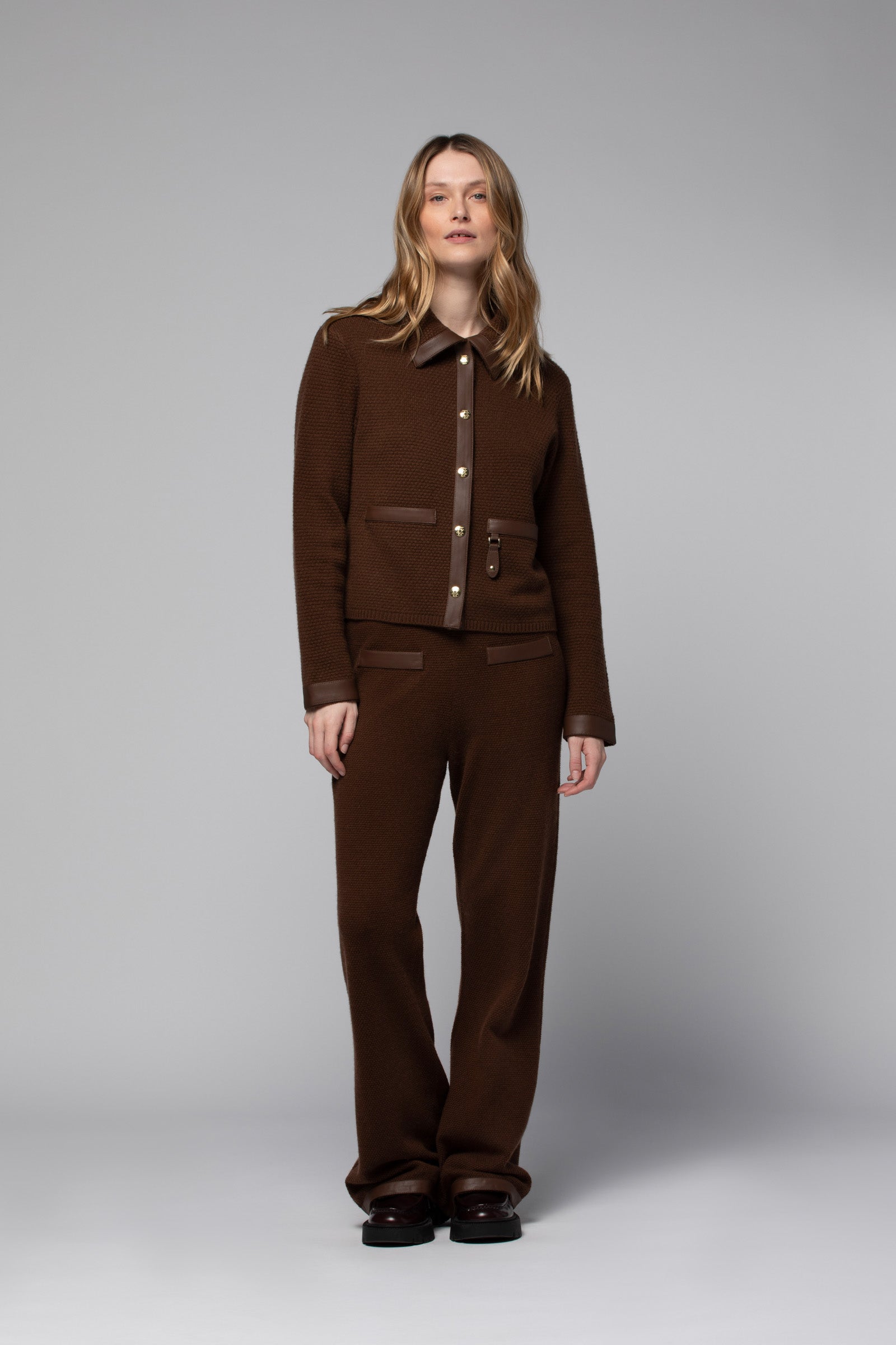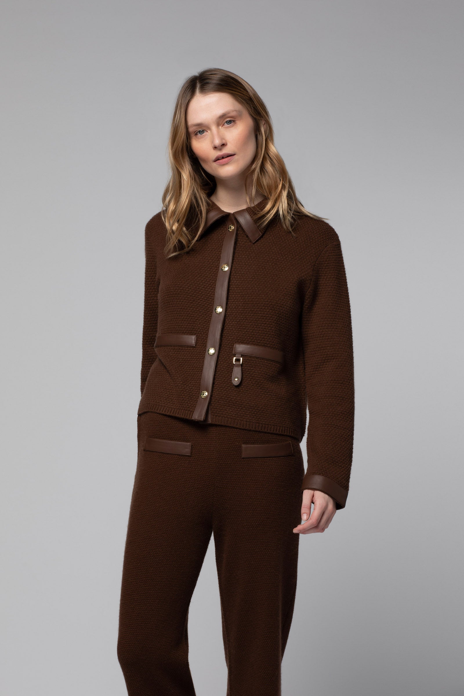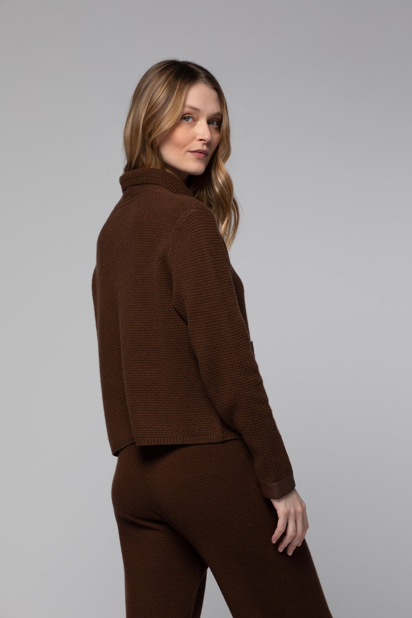 A standout piece in any wardrobe, this honeycomb-knit jacket easily adapts to dressier occasions—layered over a silk dress, pencil skirt, or a monochrome cashmere ensemble. For a more urban take, pair it with our iconic lambskin leather leggings or raw denim jeans. Worn as a full look with our BOSTON knit pants, it’s simply irresistible.
