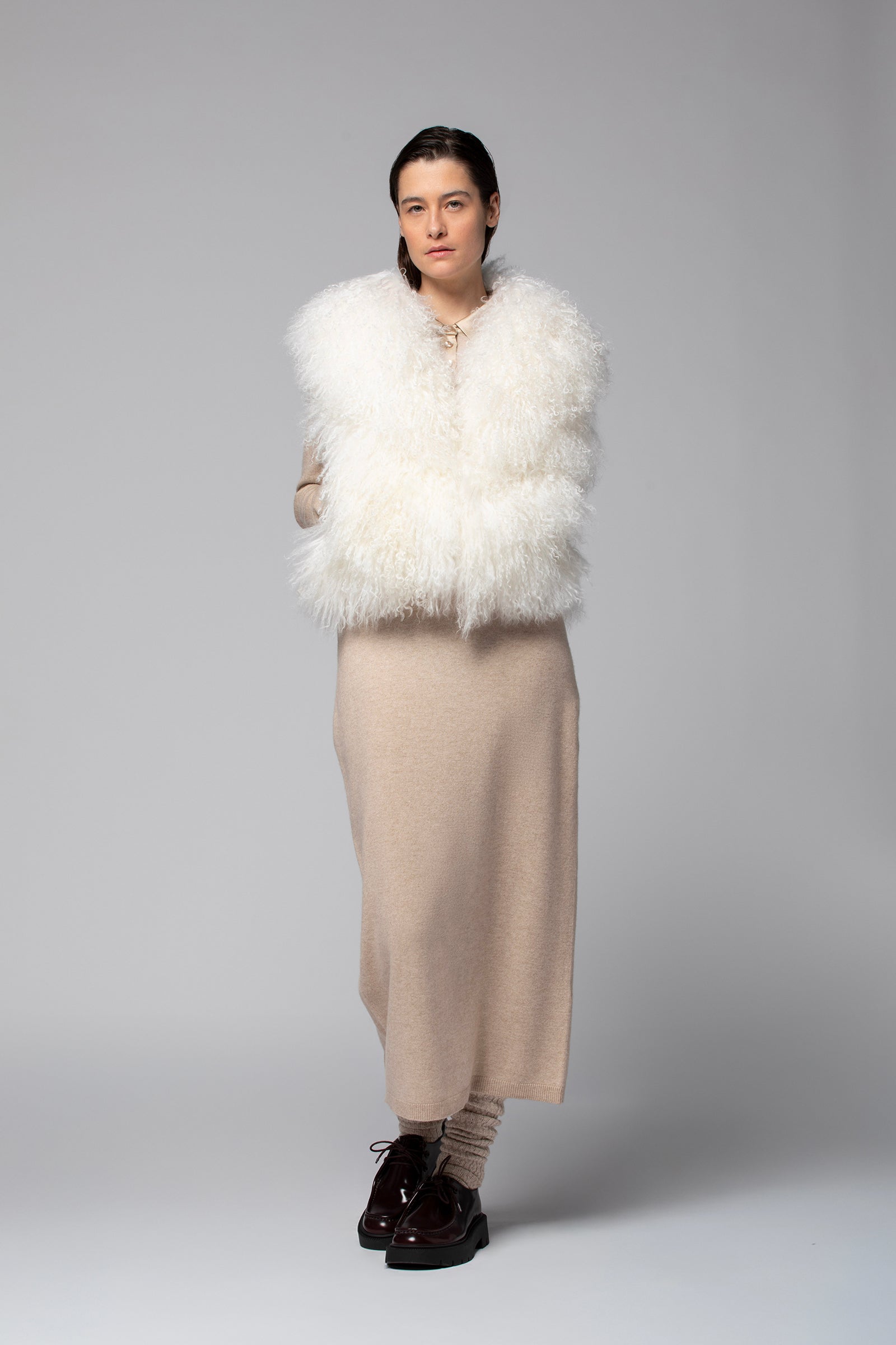 This women’s fur jacket enhances any outfit effortlessly. Wear it open over a knit dress for a sophisticated look, or layered over a cashmere sweater - or a silk shirt from the MAX&MOI collection - for a more urban spirit.