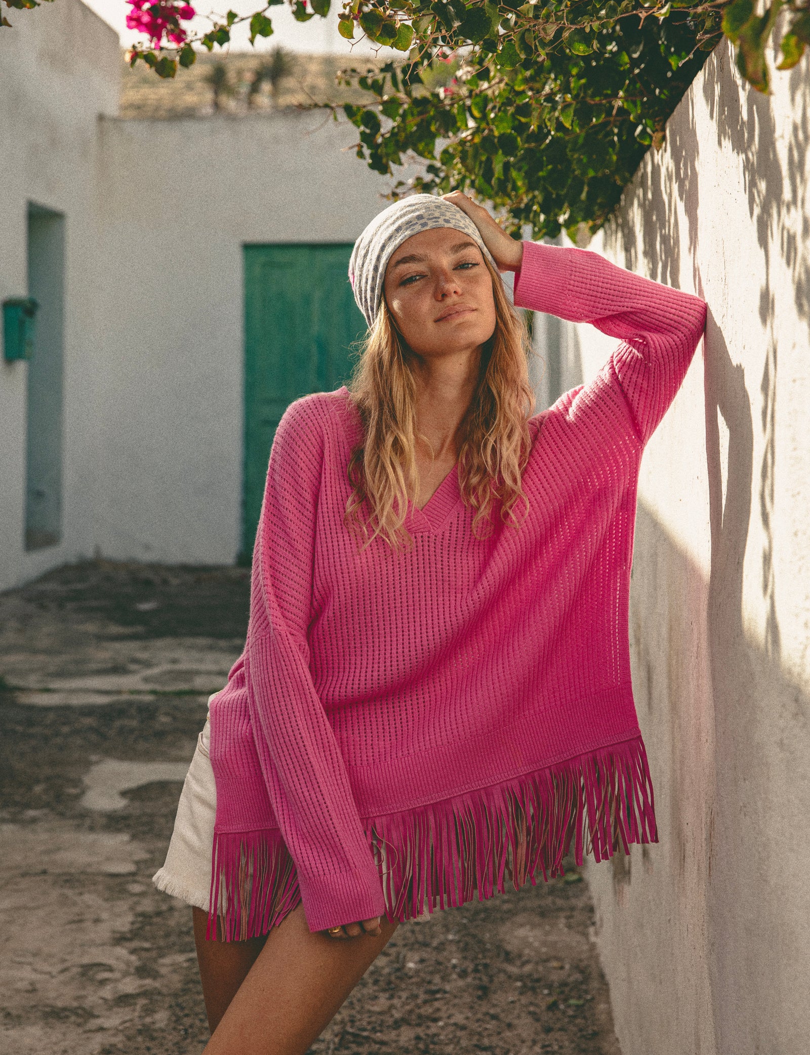 Les mailles ajourées et légères, sublimées de franges en daim ou de crochet, composent des silhouettes estivales décontractées qui accompagnent le mouvement, dans un vestiaire pensé pour la liberté.