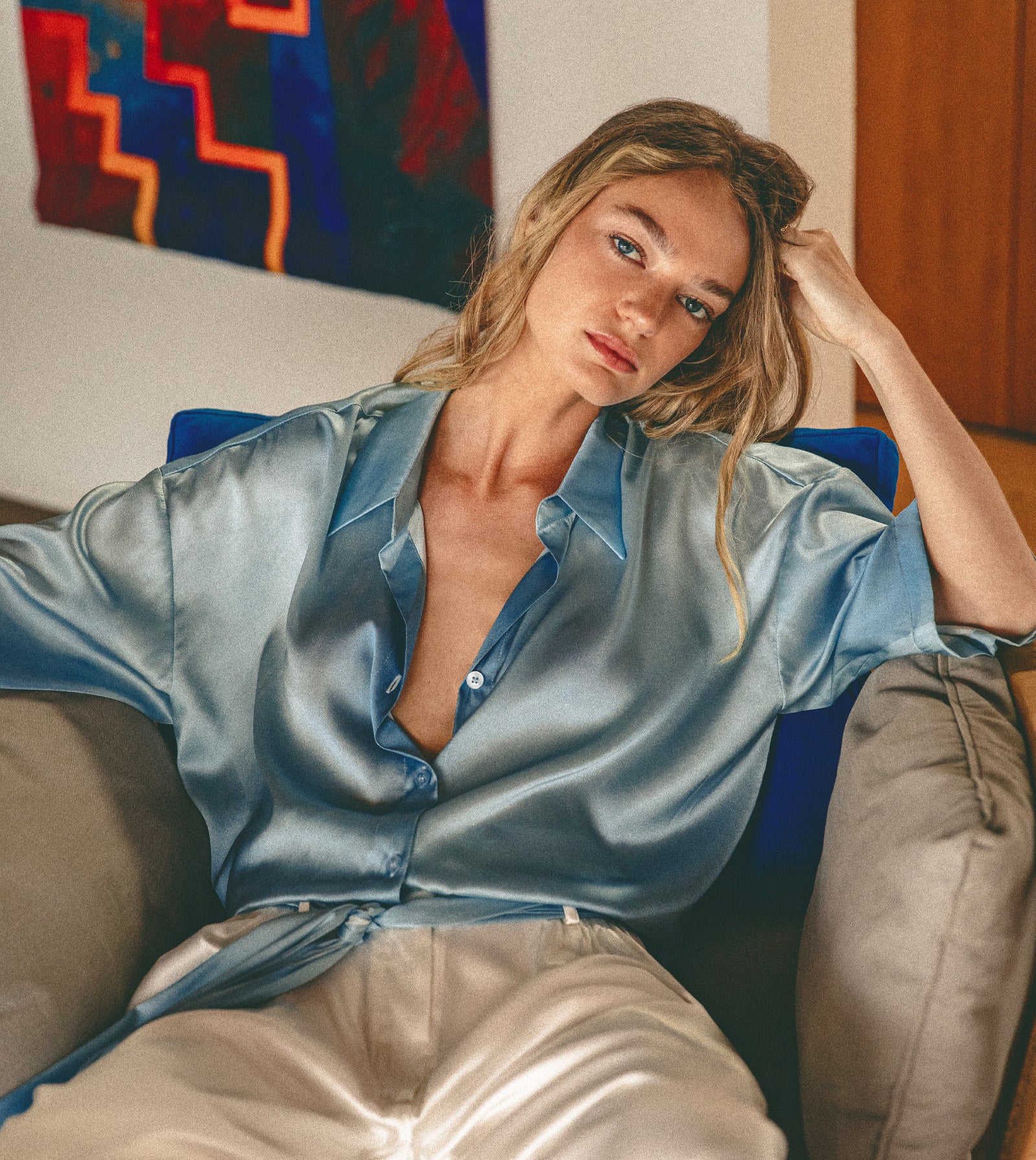 Des ensembles fluides, des pantalons larges, des chemises en soie — un vestiaire à la fois effortless et sophistiqué.