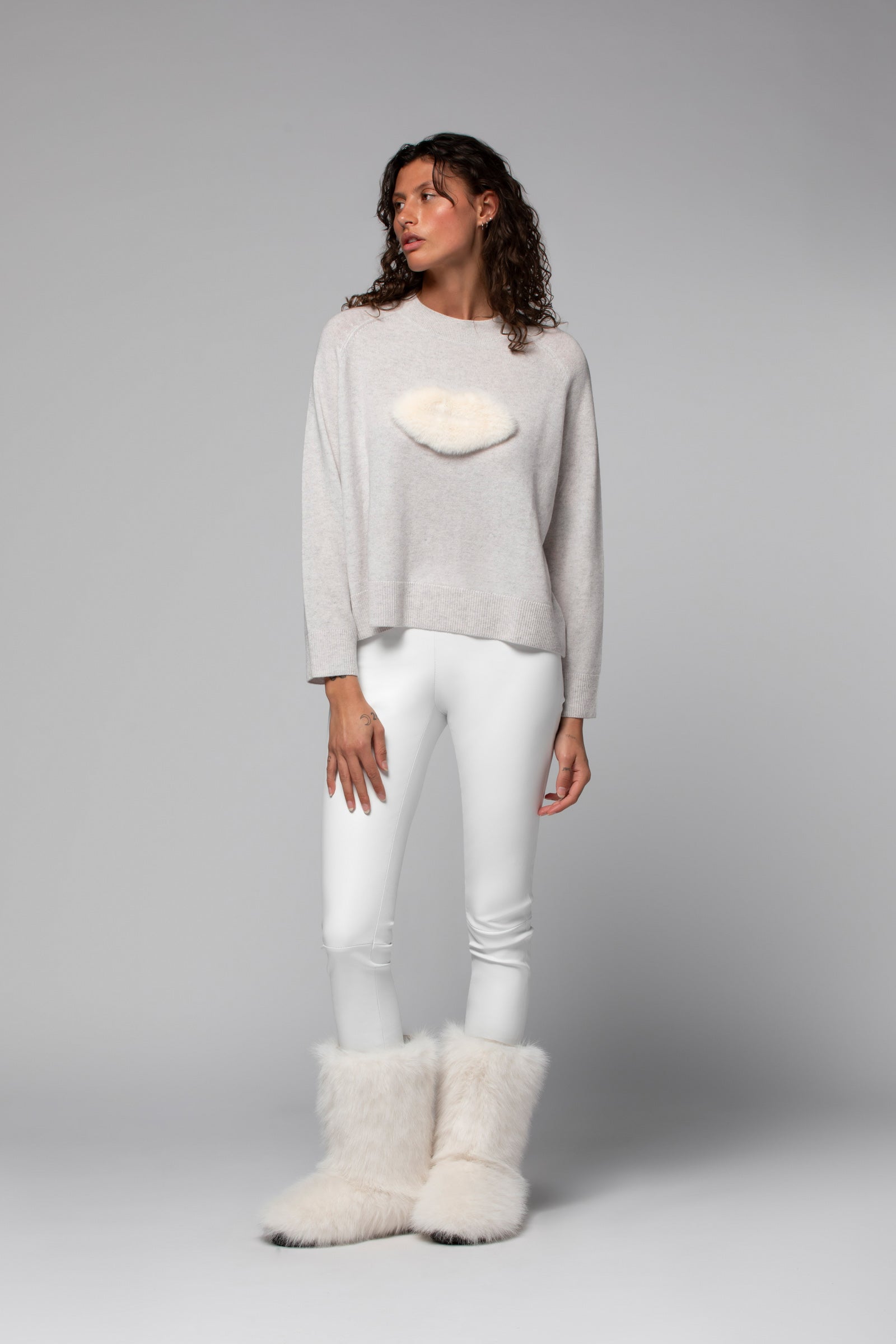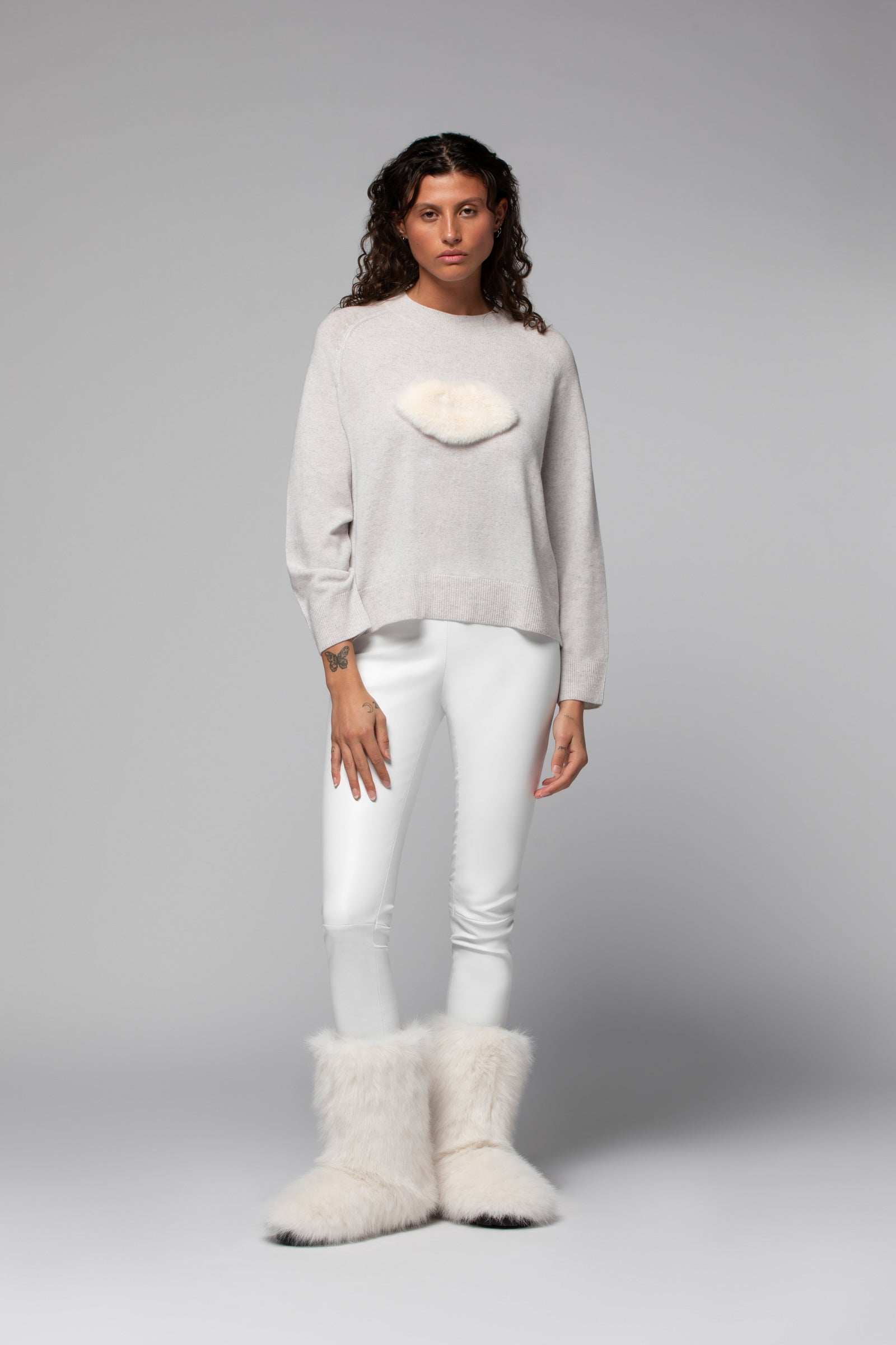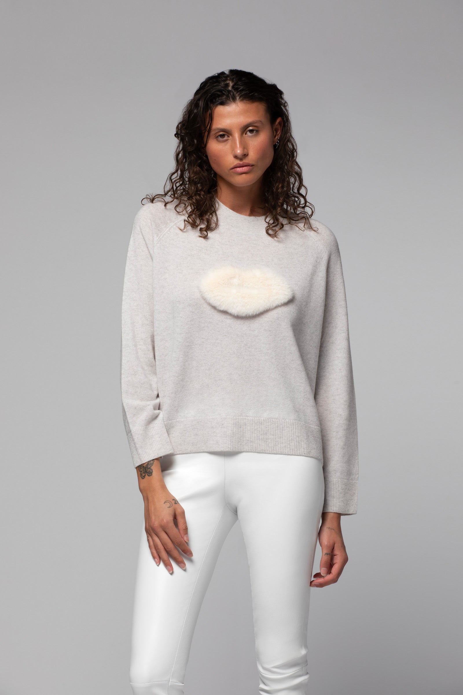 Pull en laine et cachemire avec bouche en fausse fourrure