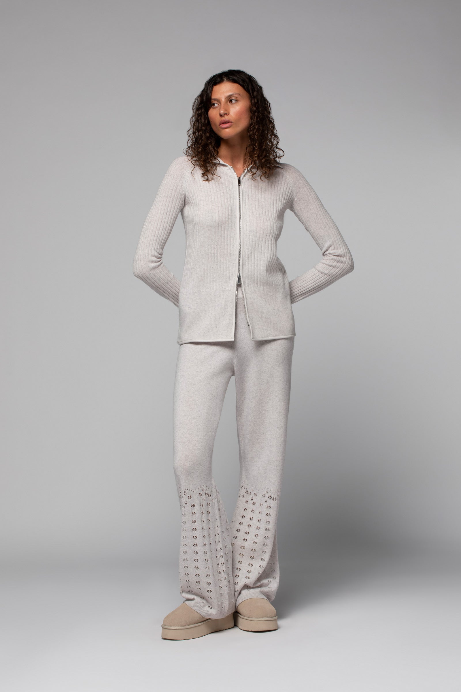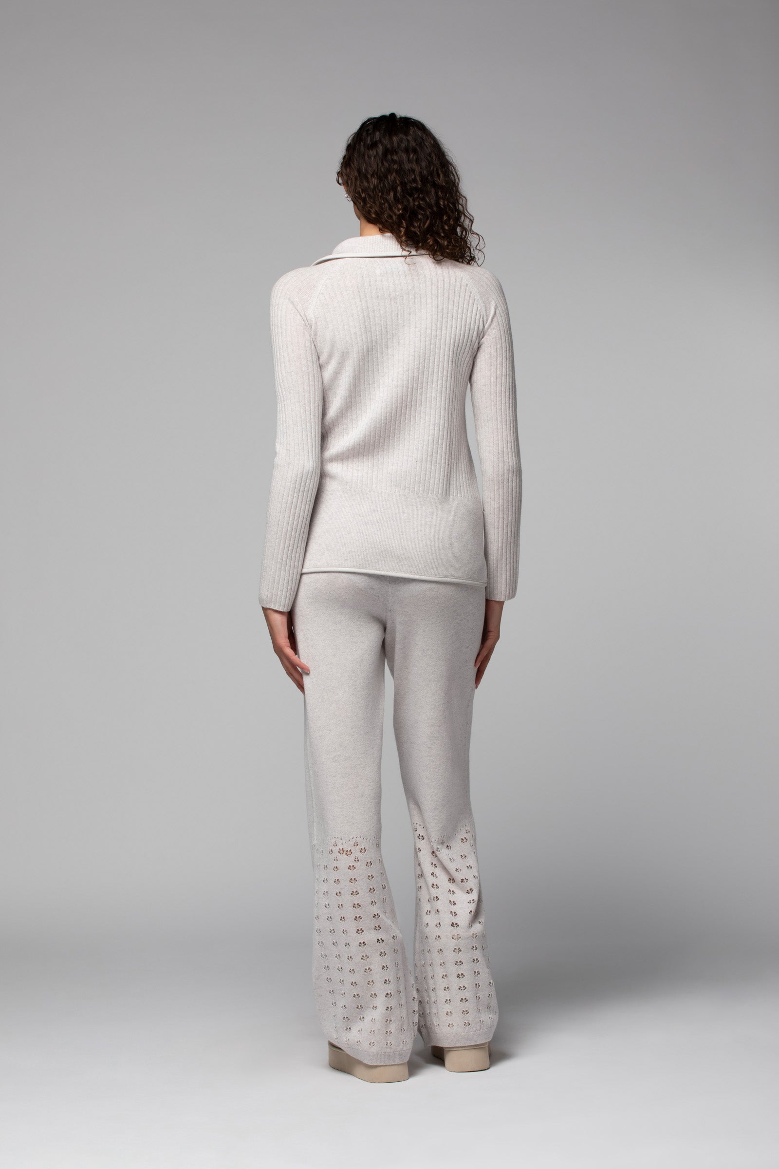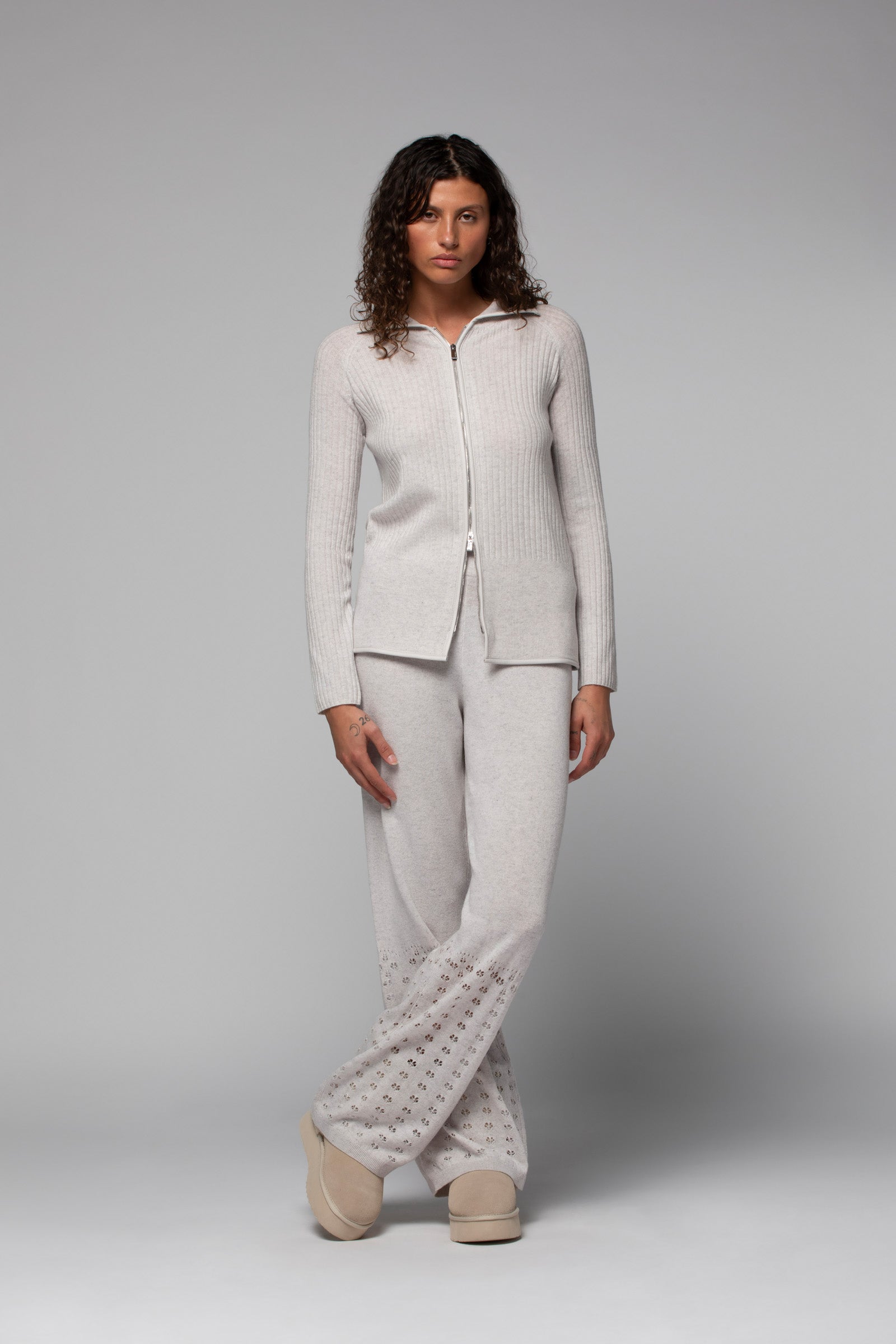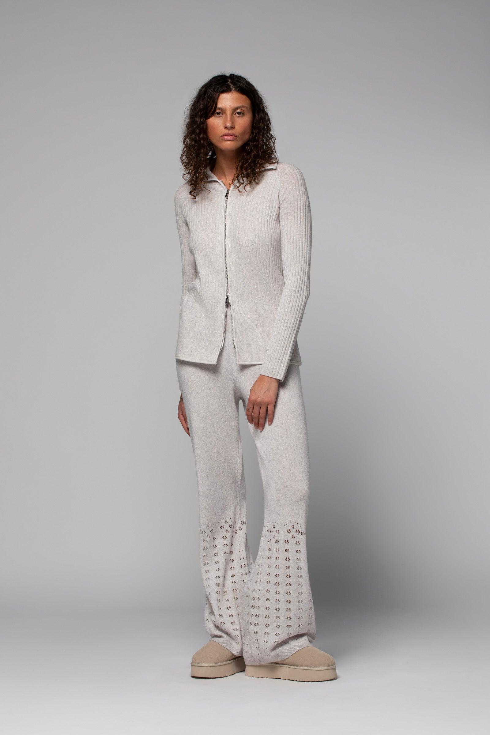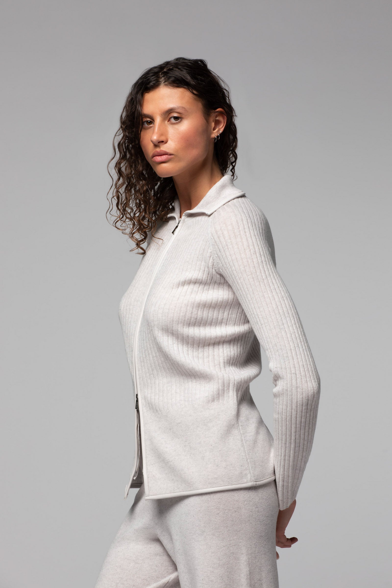 Avec son col structuré et sa fermeture zippée bordée de finitions en cuir, notre pull POESIE revisite les codes du pull pour femme dans une version résolument contemporaine. Il se distingue par sa maille côtelée en laine et cachemire, qui épouse les courbes avec douceur et dessine une silhouette féminine. Pensé pour s’adapter à toutes vos envies grâce à son zip à double curseur, il se joue des styles avec élégance et se porte aussi bien entrouvert, intégralement fermé ou à la manière d'un gilet. Une allure tantôt sophistiquée, tantôt décontractée, toujours parfaitement maîtrisée.