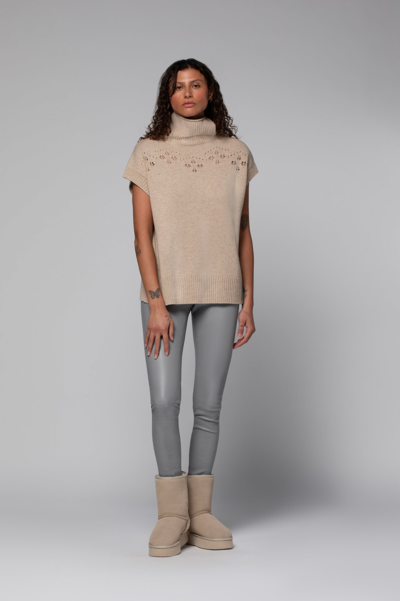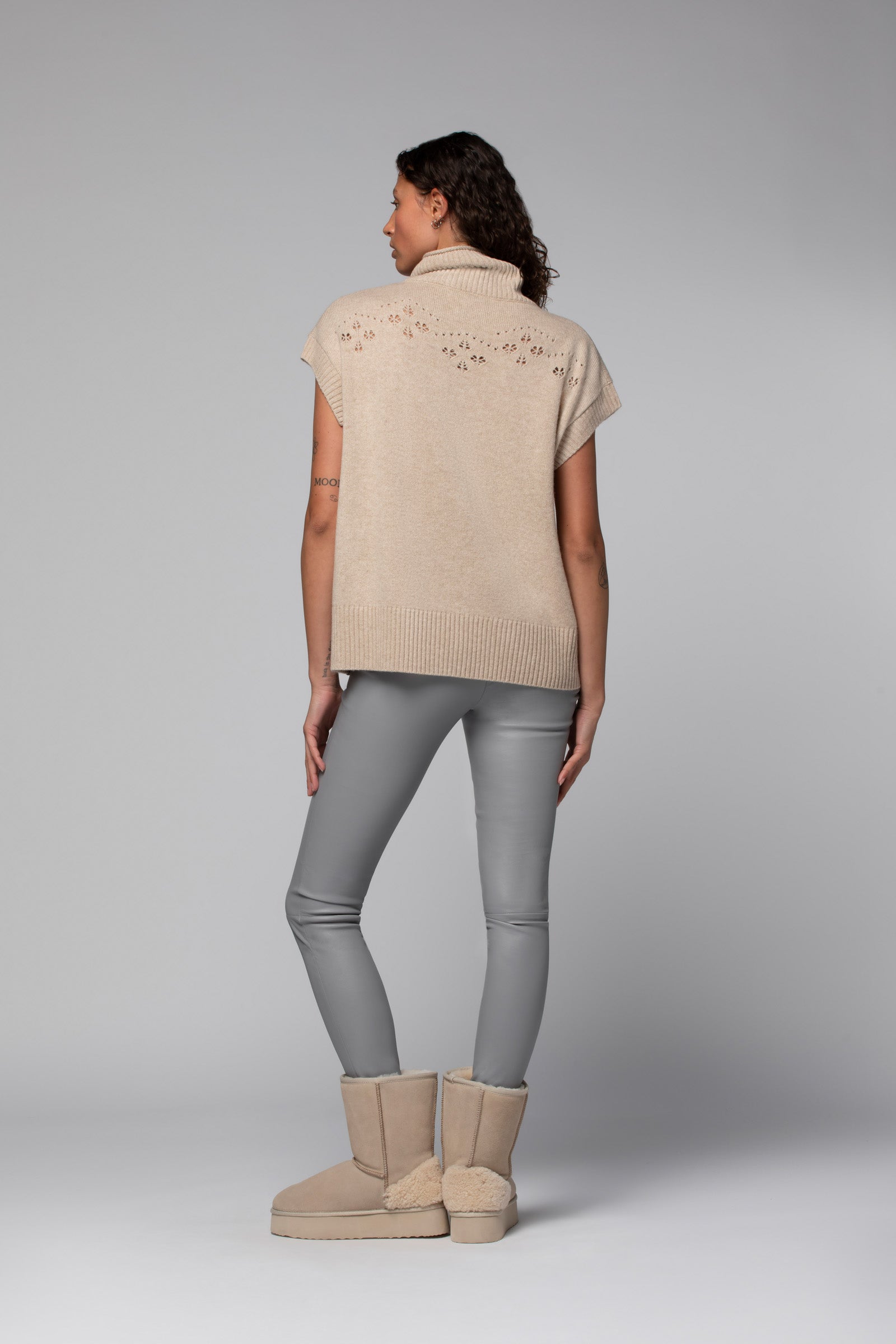 Ce pull sans manches pour femme se porte aussi bien à même la peau qu’en superposition, sur une maille ultra-fine ou une chemise en soie. Associez-le à un pantalon en cachemire ou à notre iconique legging en cuir d’agneau pour un look plus citadin.