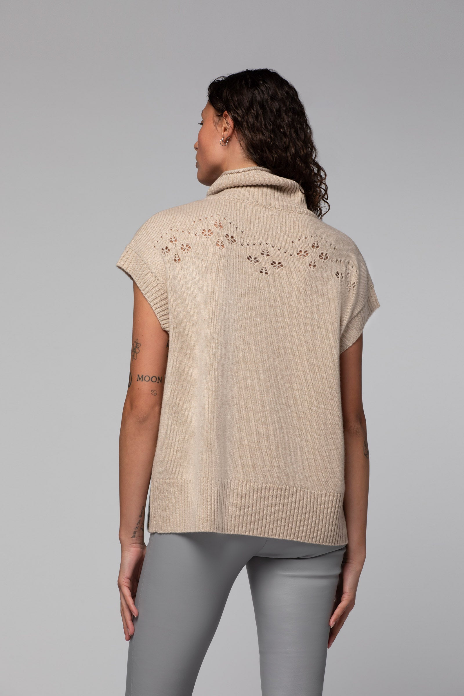 - Pull sans manches en laine et cachemire