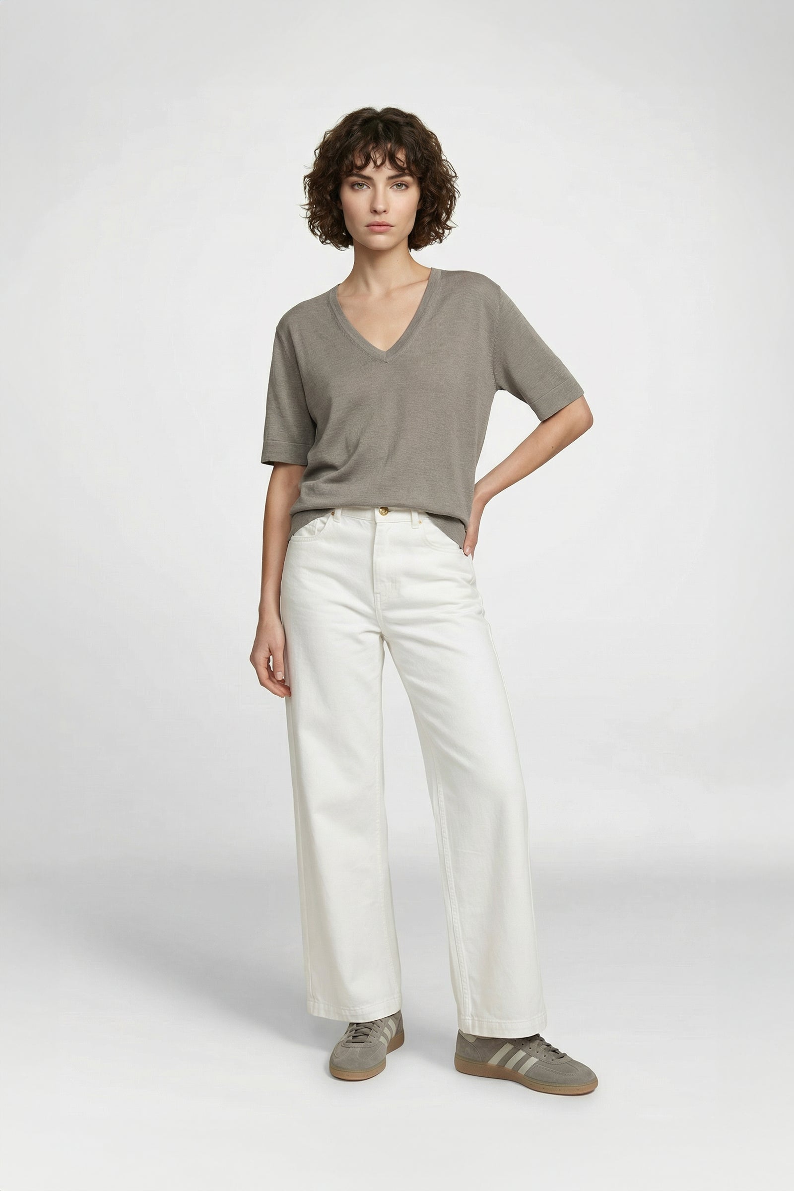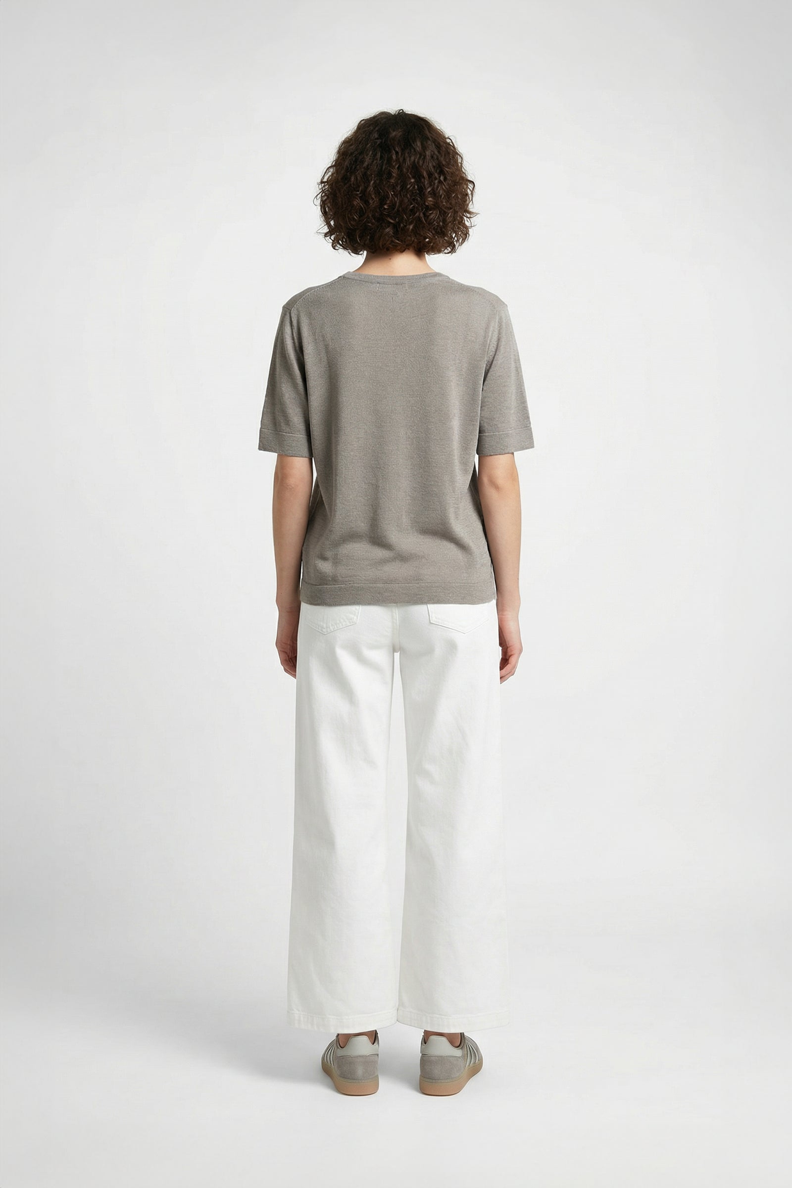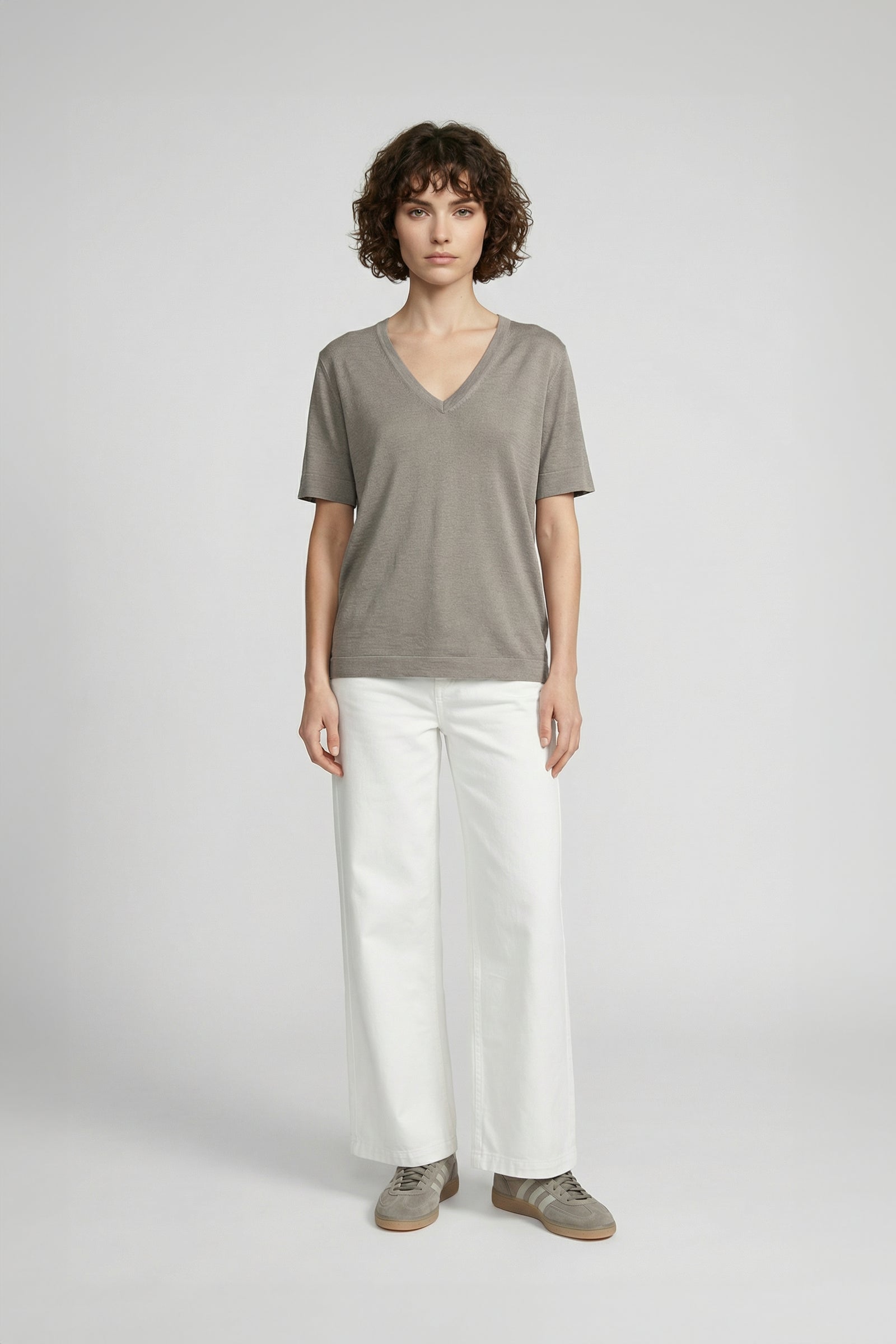 Notre t-shirt COMO est une pièce intemporelle qui conjugue confort et élégance. Il séduit par sa confection en laine et soie, légère et respirante, parfaite pour les beaux jours. Il adopte une coupe droite et fluide, des manches courtes et un col V qui féminise l'allure avec justesse. Ses lignes épurées sont rehaussées par une discrète maille en bords-côtes à l’encolure, à l’ourlet et au bas des manches, qui assurent un tombé impeccable et parachèvent l’ensemble.