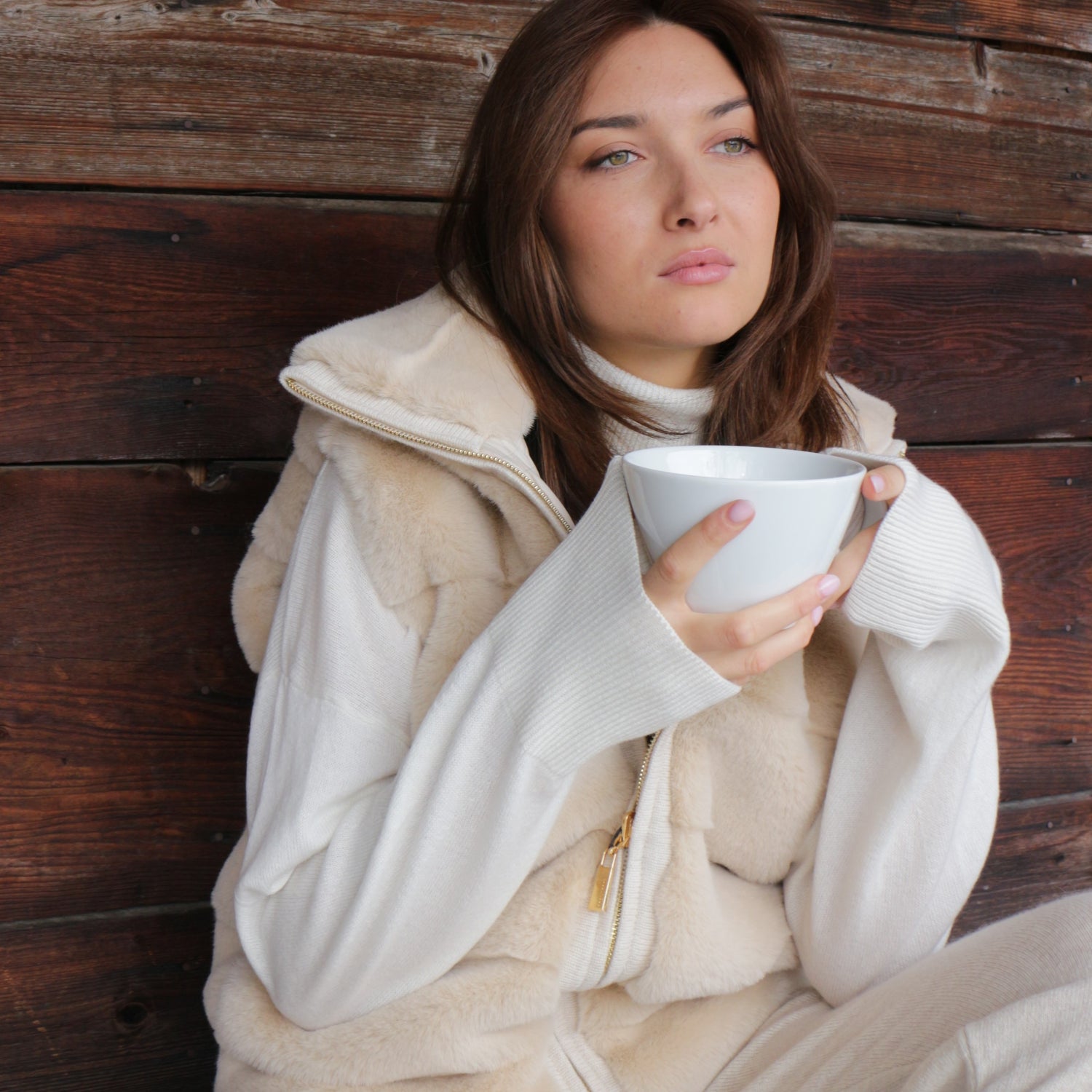 Entre les bienfaits du grand air, le doux cocon protecteur de sa doudoune en fausse fourrure et les plaisirs réconfortants d'une pause gourmande, Eva trouve dans ces moments privilégiés une source inépuisable de bien-être.