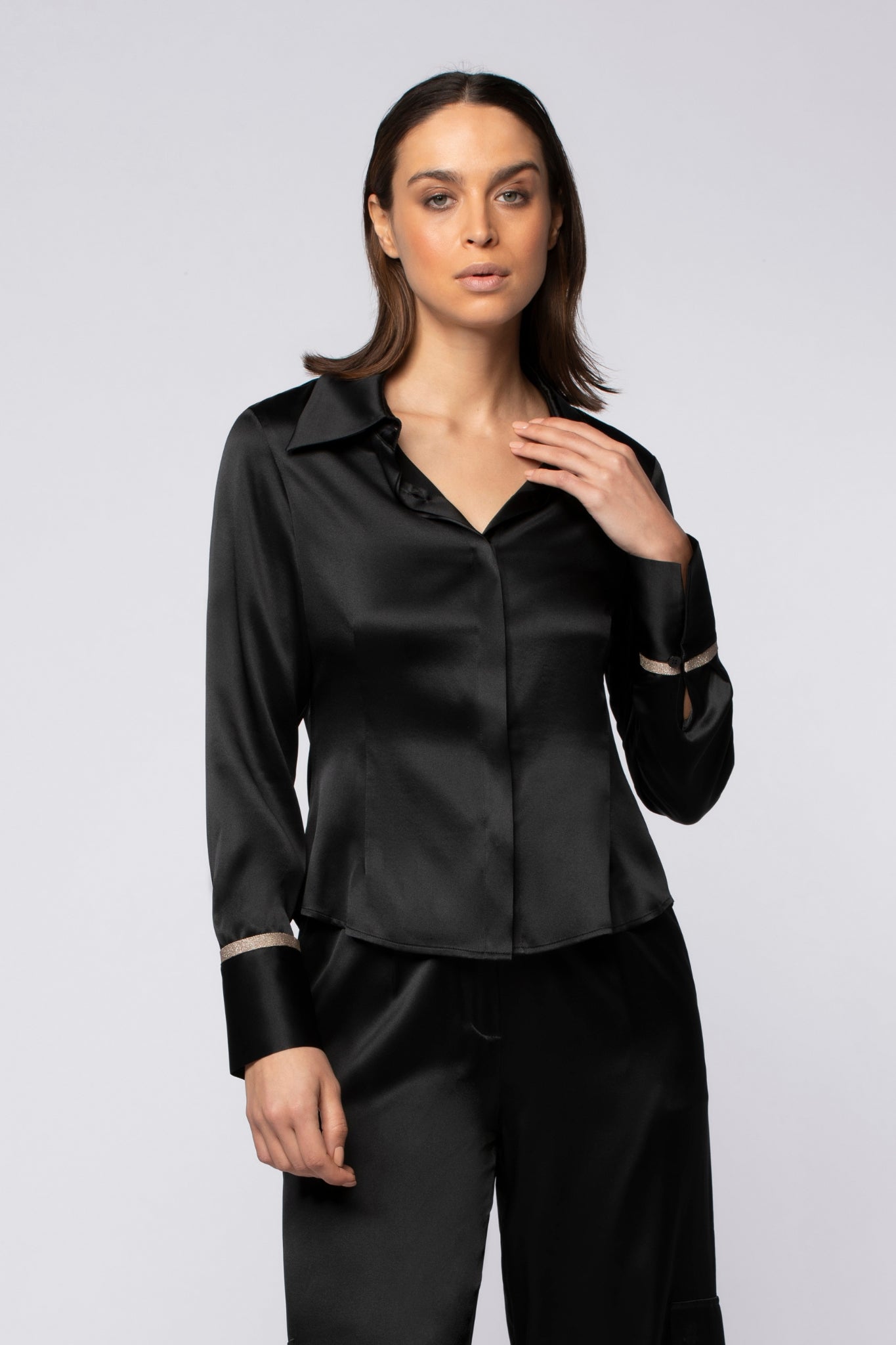 S'il y a bien un essentiel à avoir absolument dans son dressing, c'est l'ensemble chemise-pantalon coordonné en soie. En noir, cet ensemble qui allonge la silhouette et nous rend irrésistible, est un inoxydable de notre garde-robe, idéal pour faire rimer sophistication et décontraction le soir du réveillon.