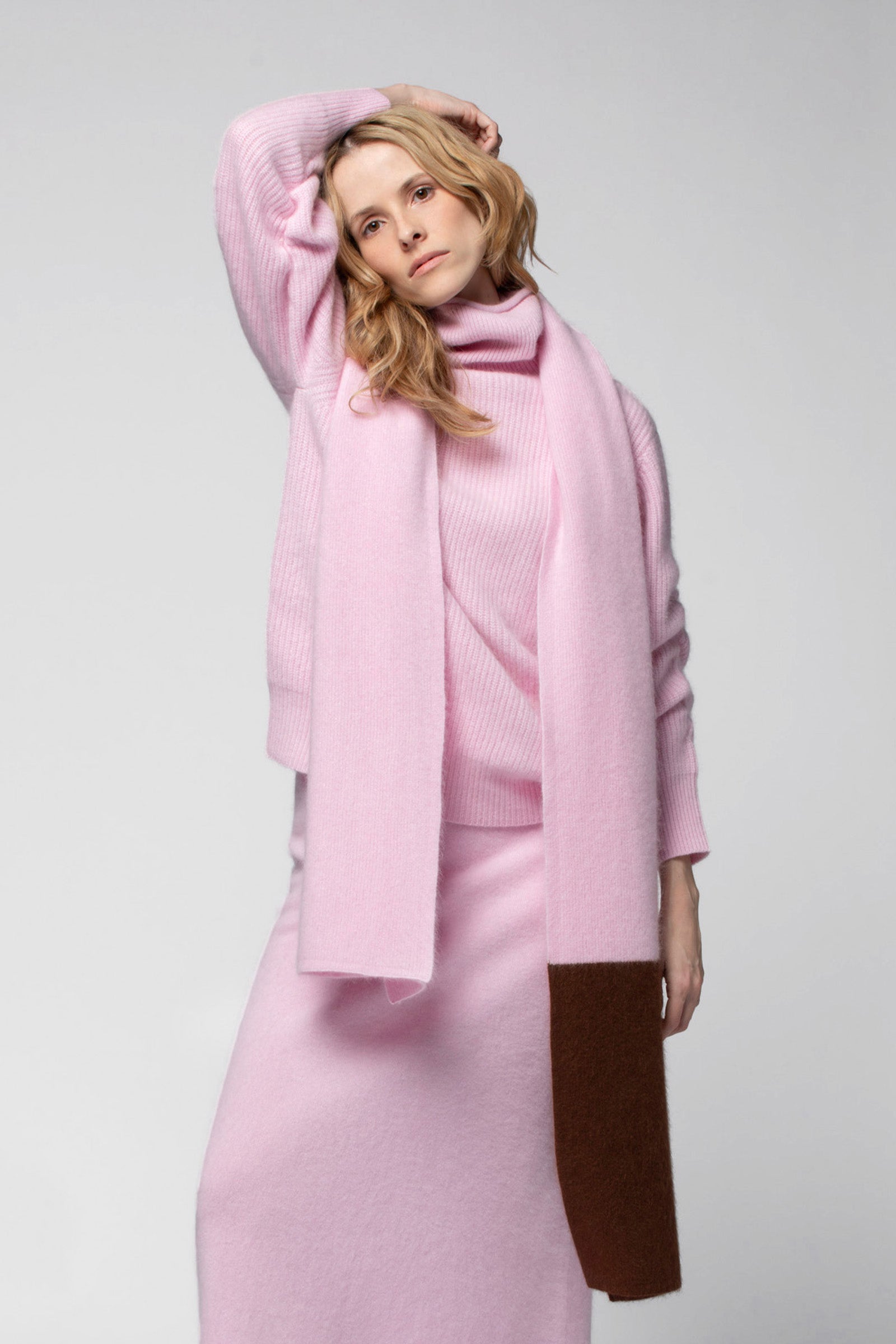 Les accessoires en cachemire rose de la collection Automne-Hiver MAX&MOI s’imposent comme les compagnons essentiels de la saison : doux, lumineux et infiniment élégants.