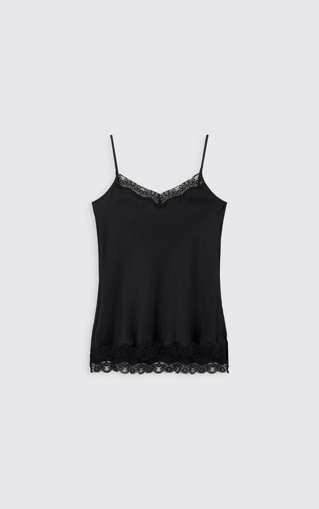 Inspiré de l'univers de la lingerie, notre caraco en soie TOP est un essentiel du vestiaire. Confectionné dans une somptueuse soie stretch, rehaussée d'une dentelle à l'encolure et à l'ourlet, il épouse la silhouette avec douceur et fait office d'écrin parfait à la féminité. De fines bretelles réglables dévoilent les épaules avec raffinement tout en assurant un maintien parfait, tandis que sa coupe asymétrique et ses fentes latérales apportent mouvement et fluidité.