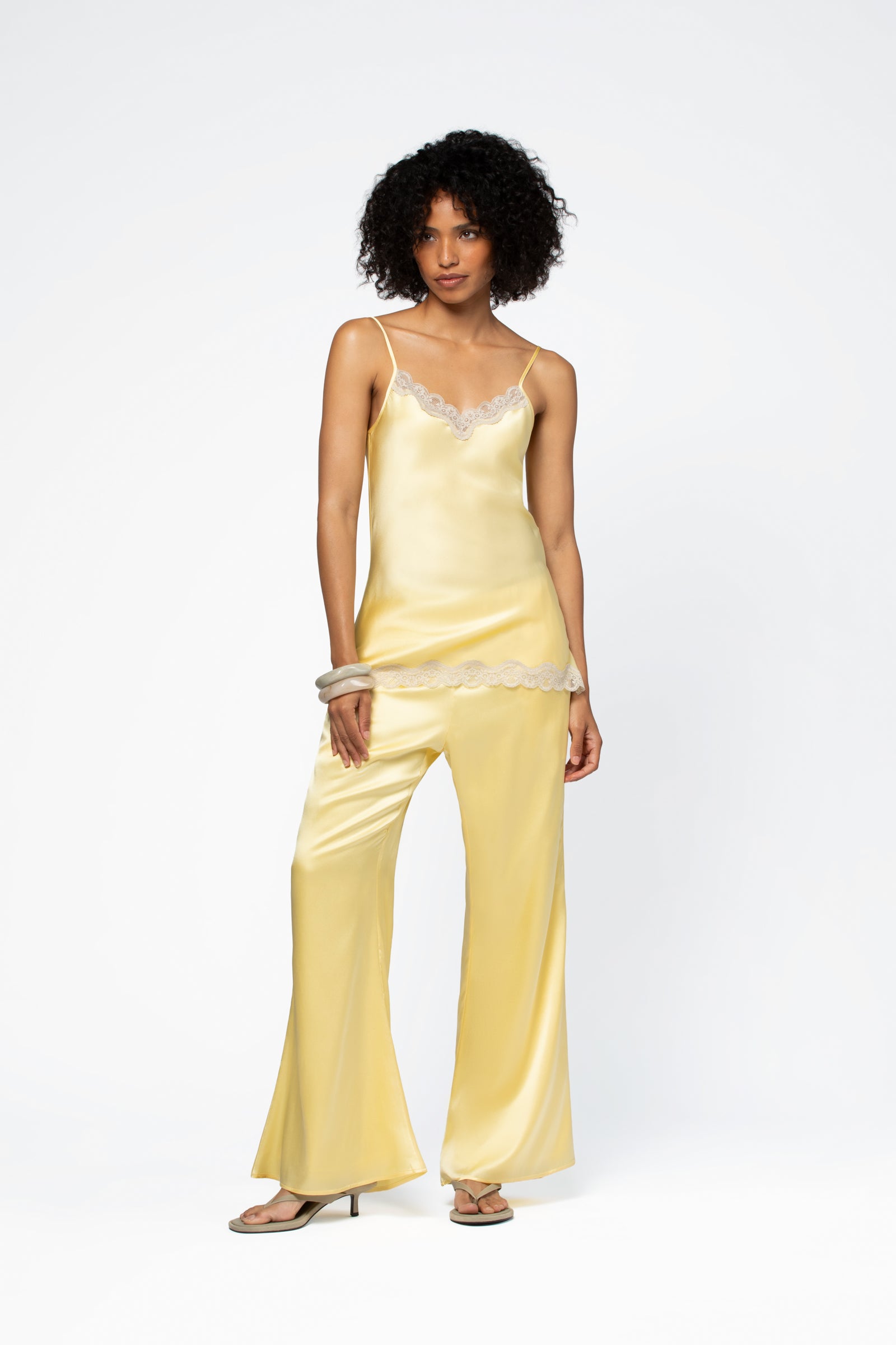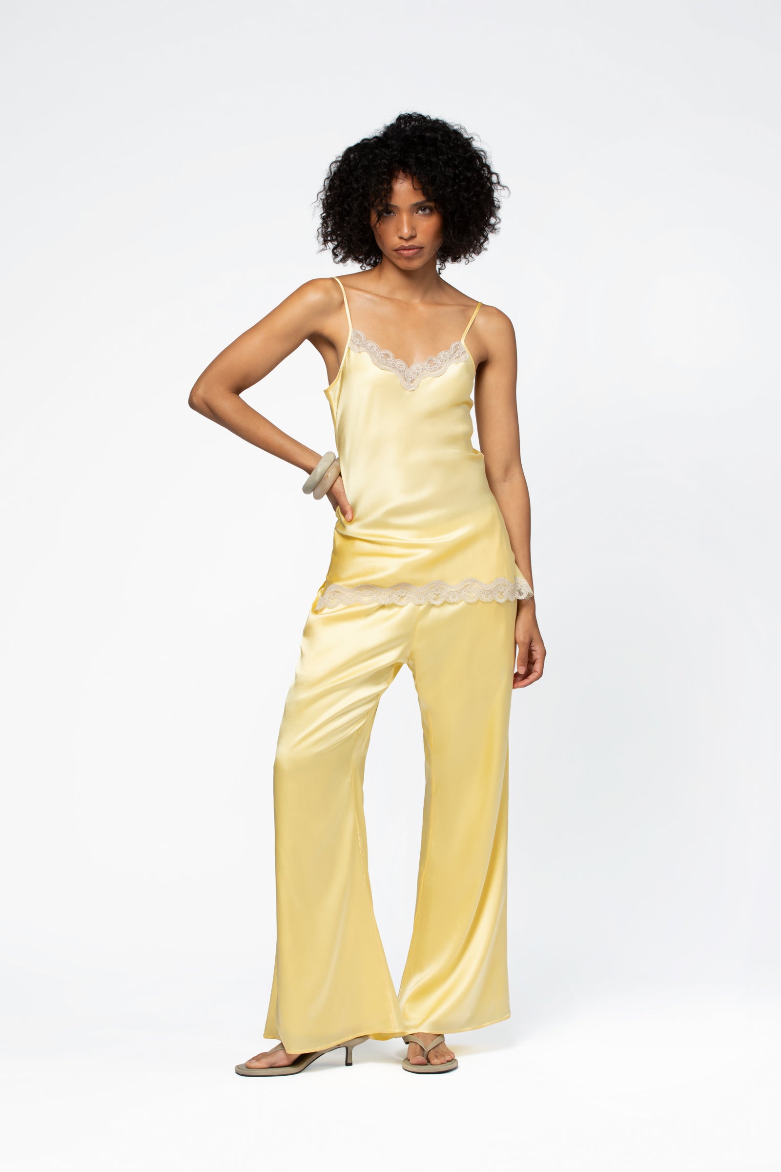 Inspiré de l'univers de la lingerie, notre caraco en soie TOP est un essentiel du vestiaire. Confectionné dans une somptueuse soie stretch, rehaussée d'une dentelle à l'encolure et à l'ourlet, il épouse la silhouette avec douceur et fait office d'écrin parfait à la féminité. De fines bretelles réglables dévoilent les épaules avec raffinement tout en assurant un maintien parfait, tandis que sa coupe asymétrique et ses fentes latérales apportent mouvement et fluidité.