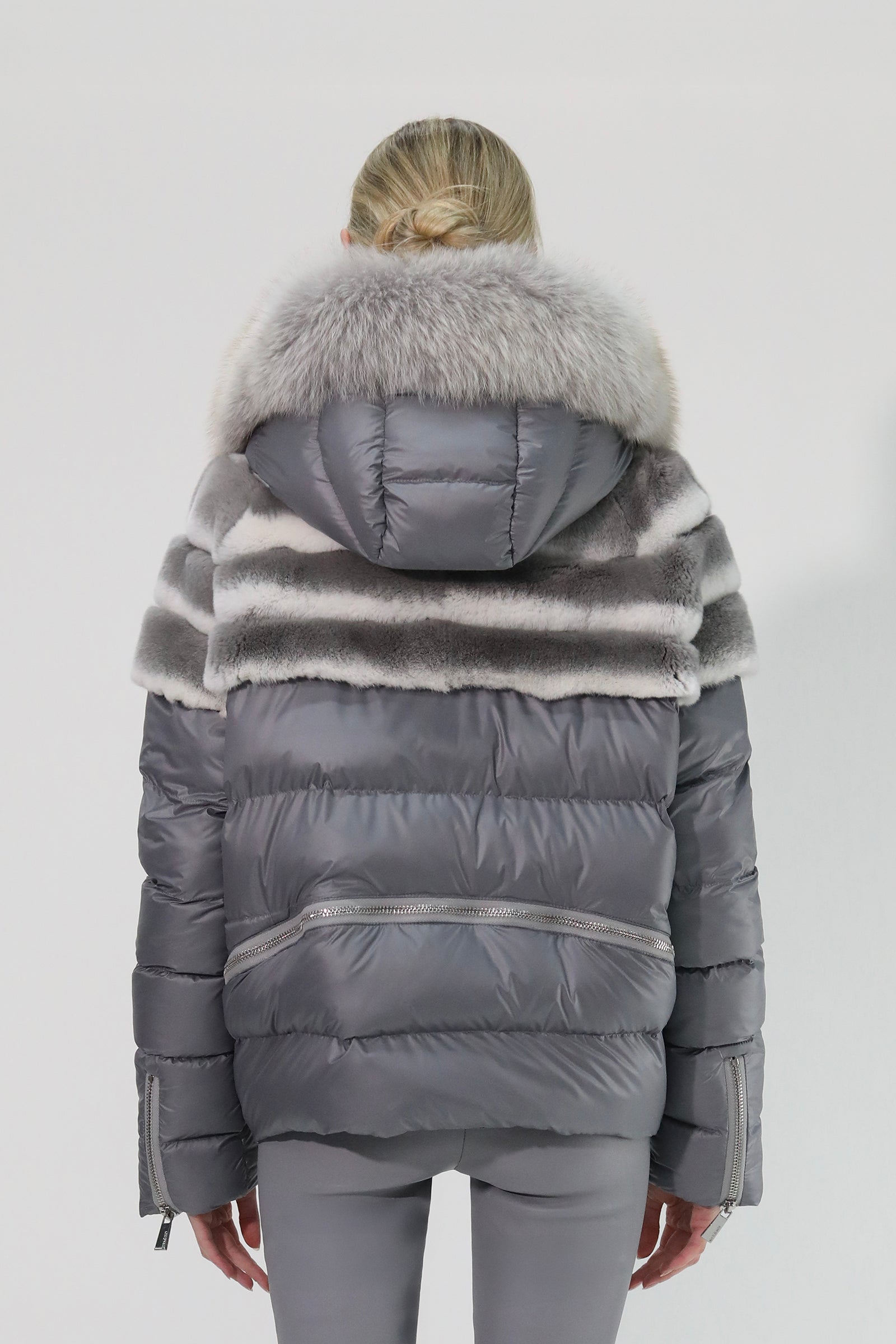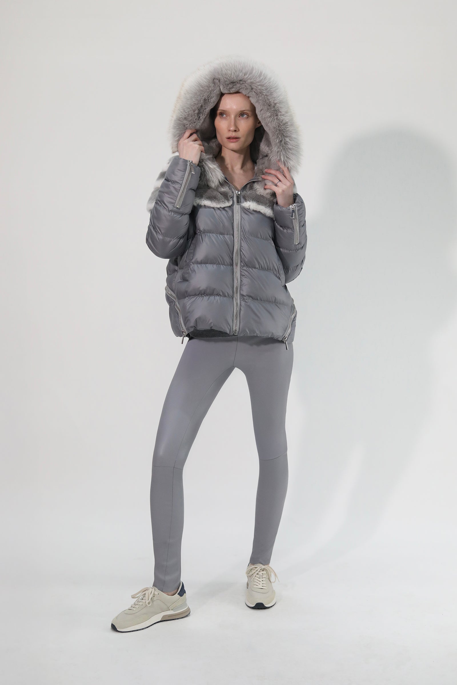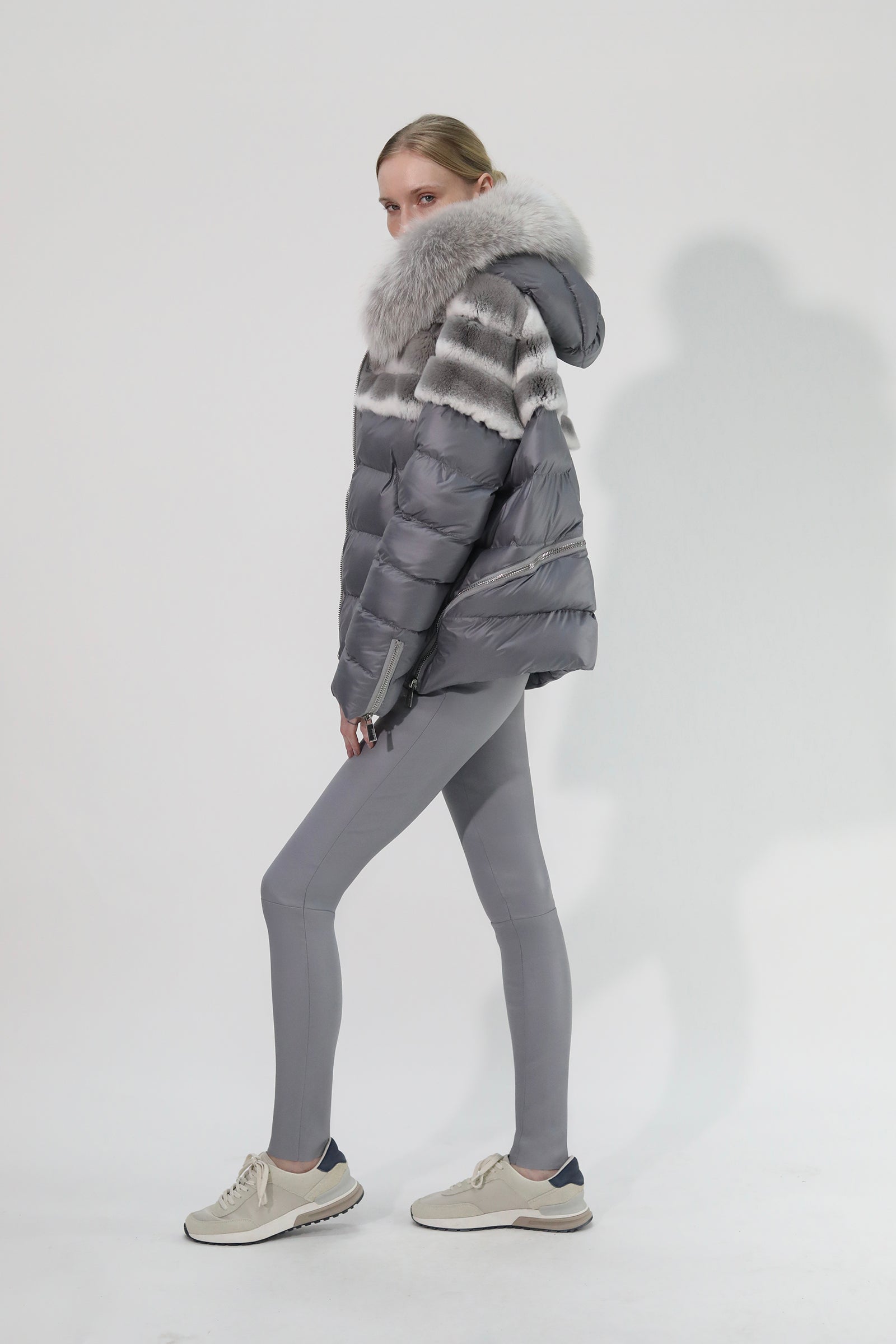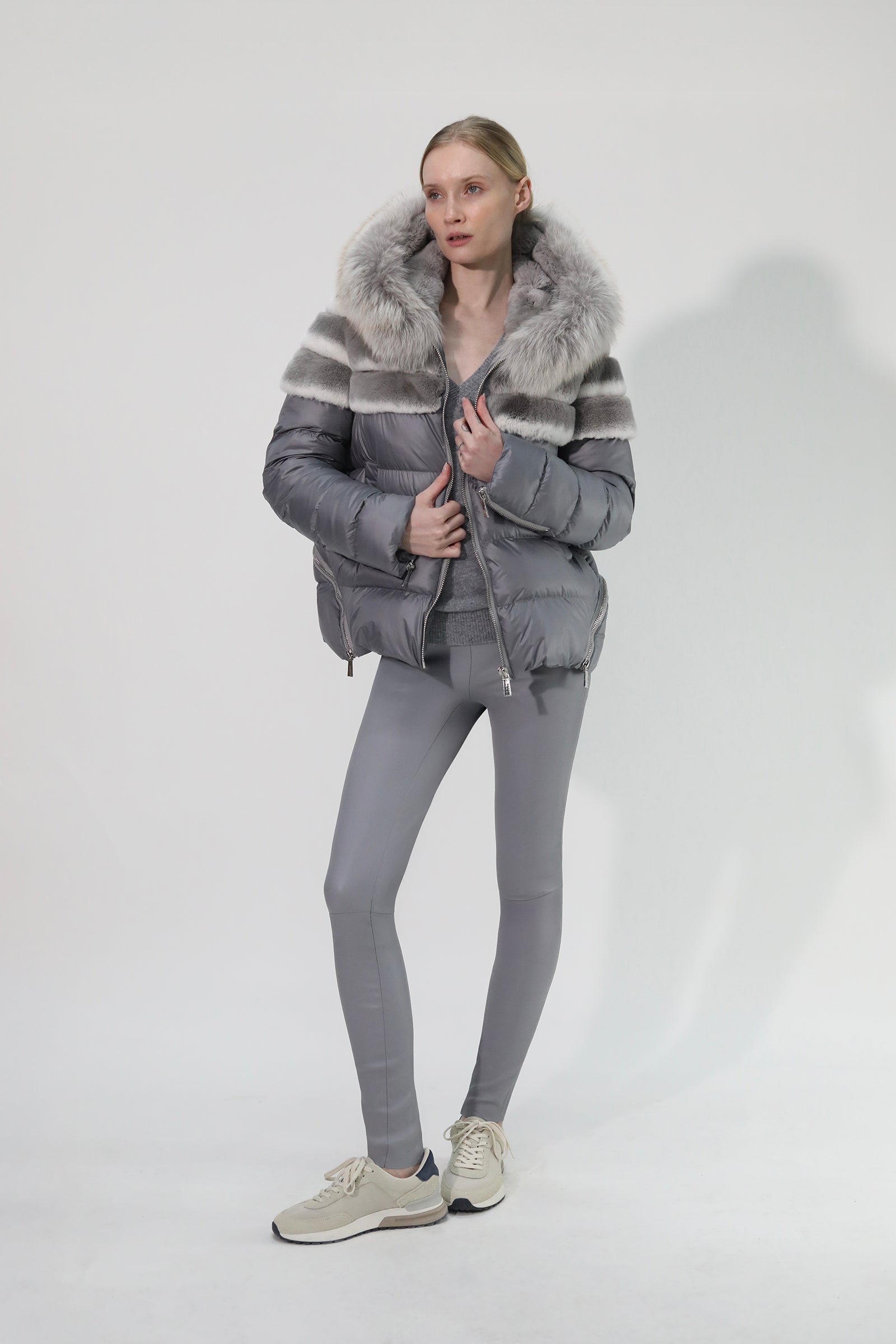 Notre doudoune DIEGO est un essentiel du vestiaire hivernal. Elle revisite les codes de l’outerwear avec sa confection bi-matière, sublimée par une luxueuse fourrure de lapin qui apporte une touche d’élégance irrésistible. Fonctionnelle et raffinée, elle est dotée de grandes poches pensées pour garder vos indispensables à portée de main, ainsi que d’une capuche généreuse bordée d'une fourrure de renard, qui enveloppe la silhouette d’un charme résolument chic. Véritable bijou de savoir-faire, elle s’adapte à toutes vos envies grâce à un ingénieux système de zips aux poignets et dans le dos, révélant une doudoune courte.