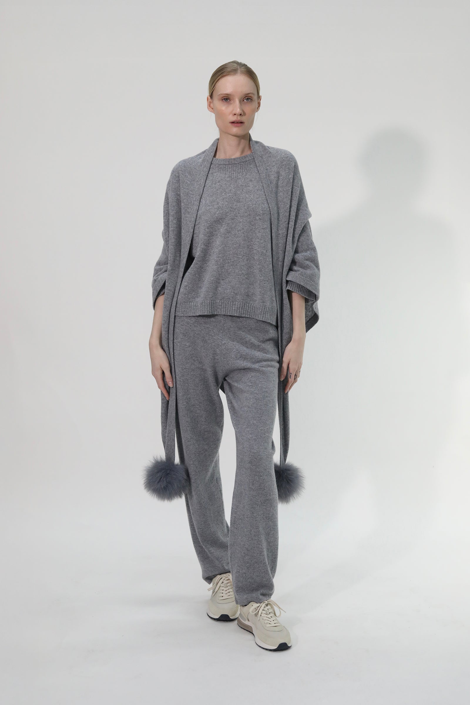 Étole en cachemire avec pompons en fourrure M&M By MAX&MOI